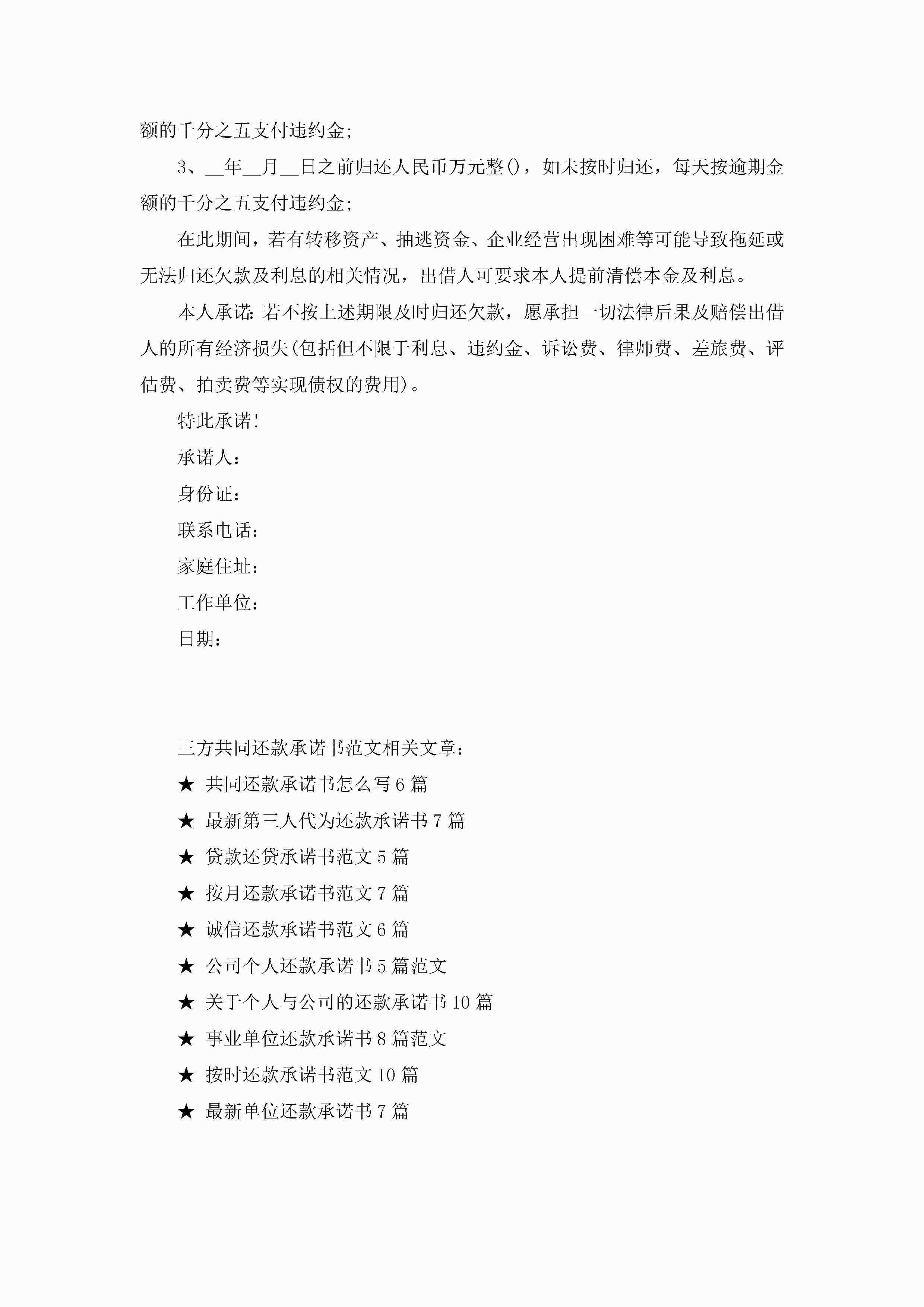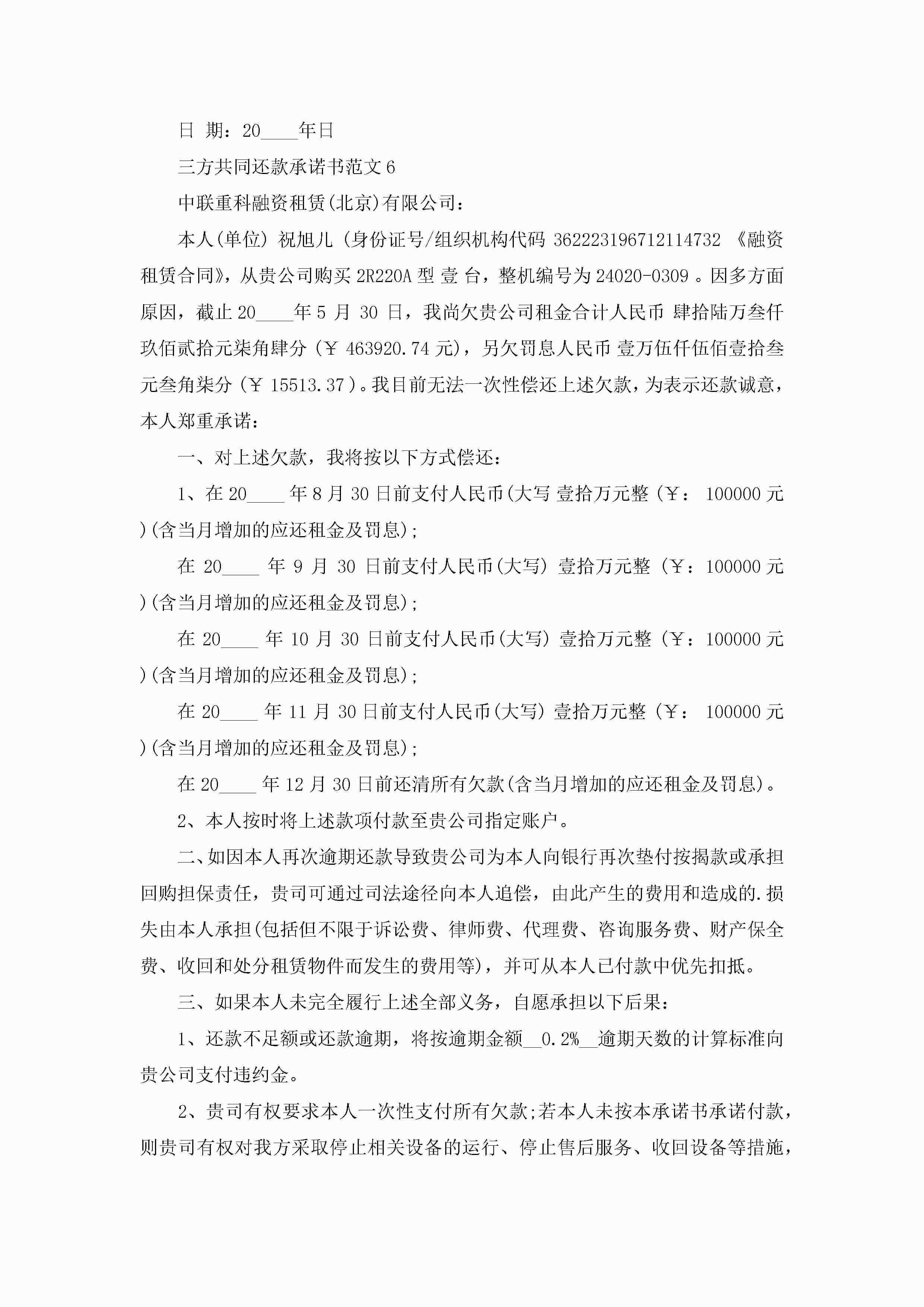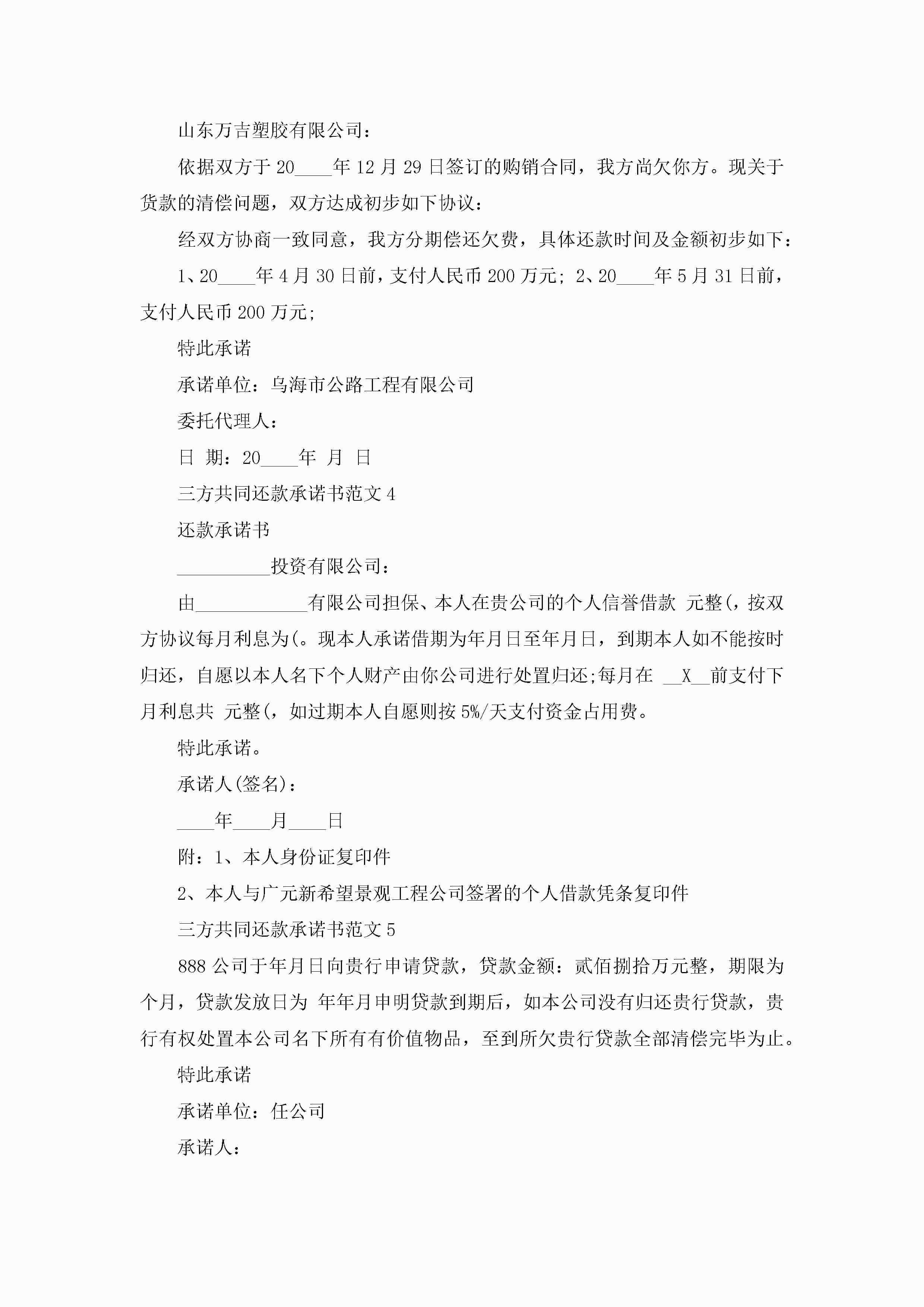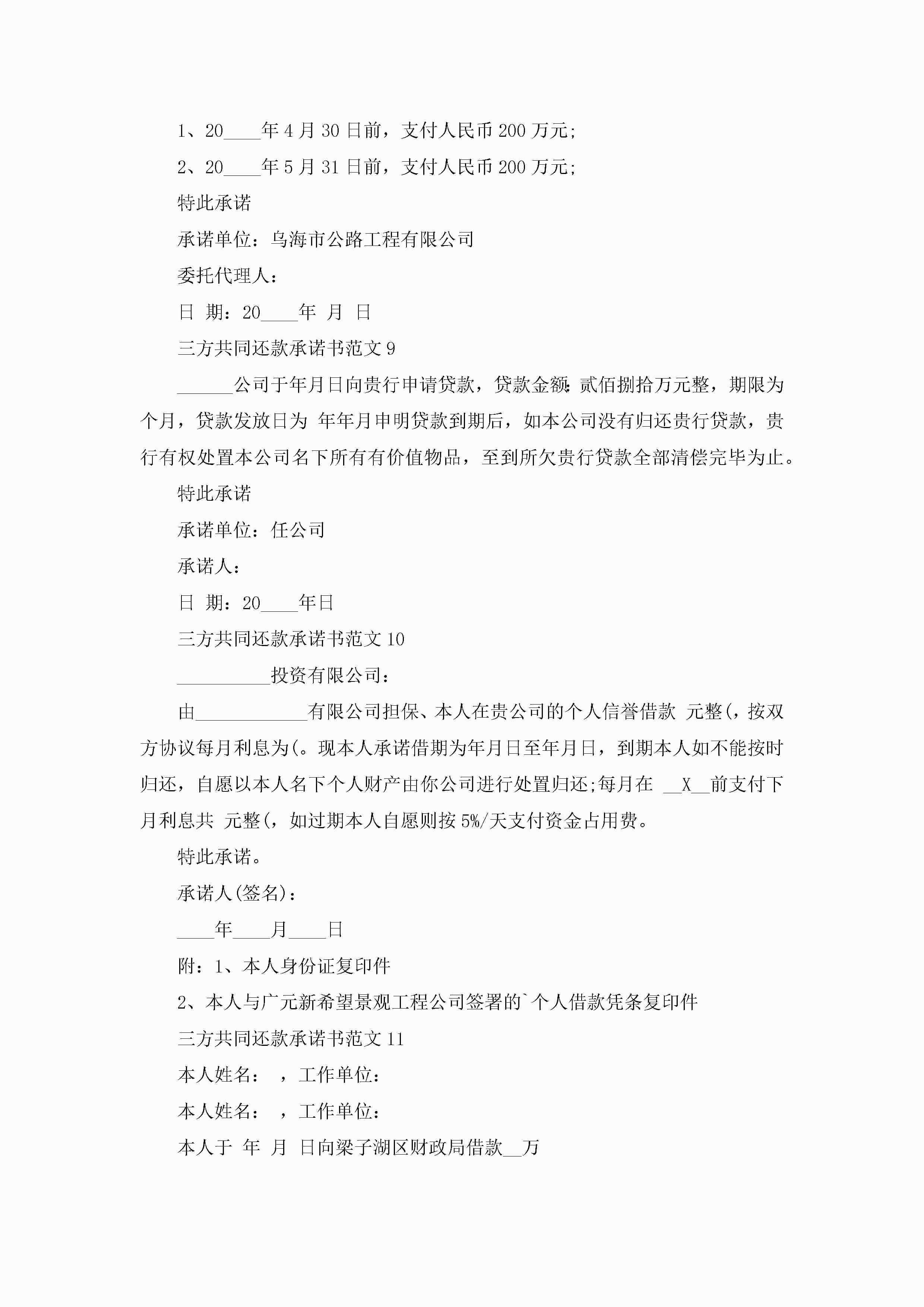 三方共同还款承诺书范文12篇jugei3月22日 16:22发布关注195 三方共同还款承诺书范文12篇此内容为付费资源,请付费后查看¥10.9 单篇文档限时特惠¥15个人会员开通企业会员开通立即下载无需登陆!可直接快捷下载单个模板付费资源© 版权声明THE ENDWord模板# 实用文档# 实用模板# 信函模板# 承诺书 如有问题,可点击最底部“联系我们”联系客服 分享QQ空间微博QQ好友海报分享复制链接收藏