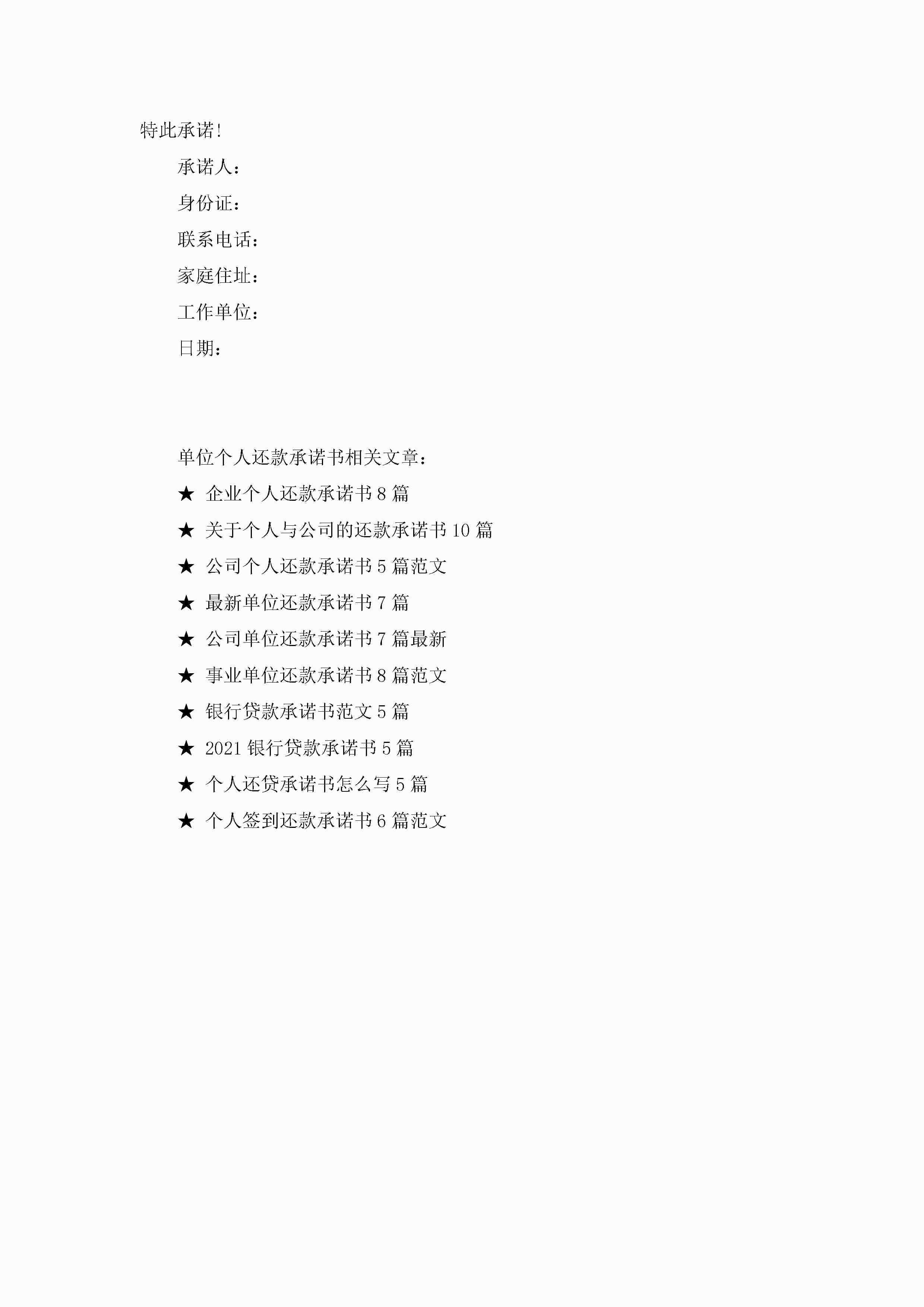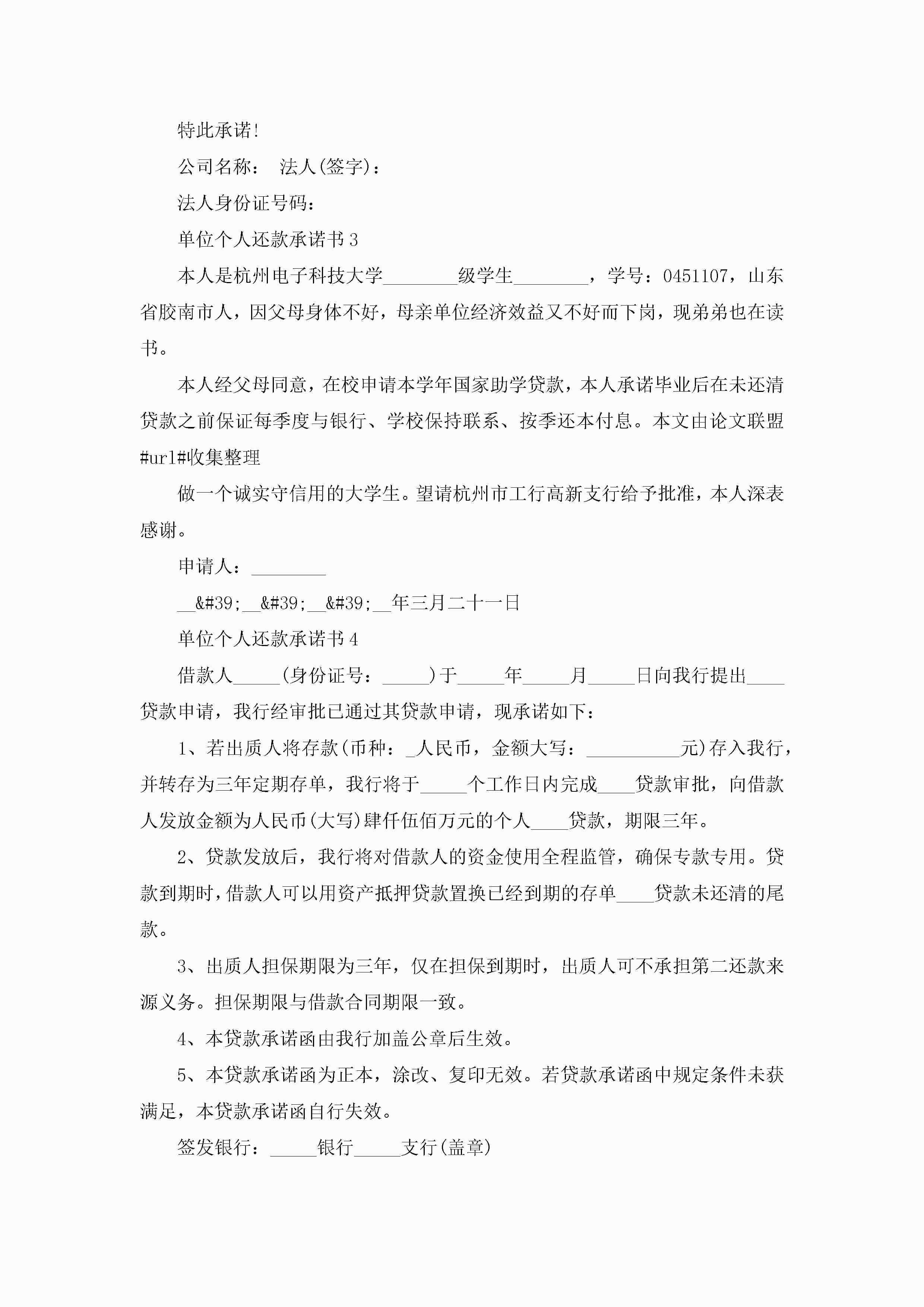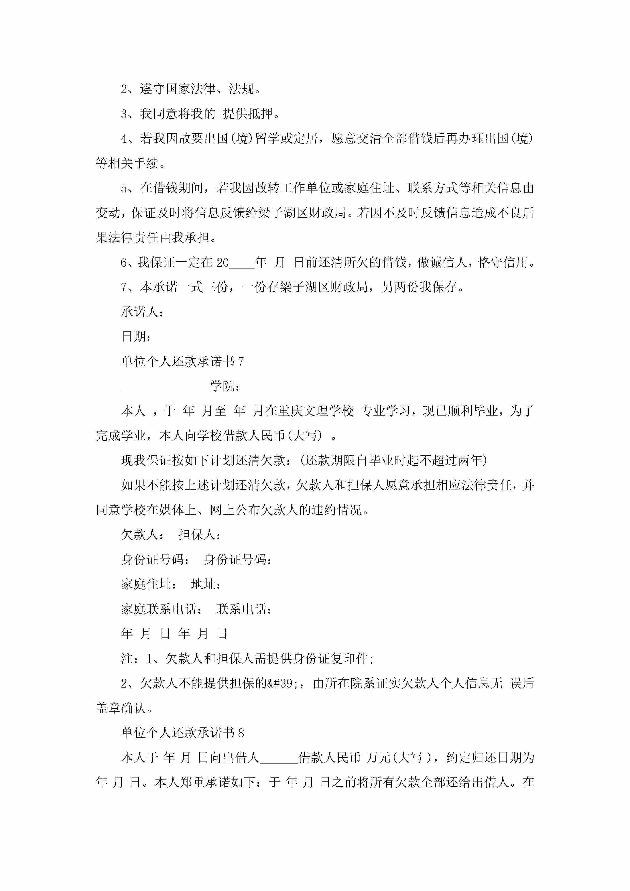 单位个人还款承诺书9篇jugei3月22日 16:22发布关注204 单位个人还款承诺书9篇此内容为付费资源,请付费后查看¥10.9 单篇文档限时特惠¥15个人会员开通企业会员开通立即下载无需登陆!可直接快捷下载单个模板付费资源© 版权声明THE ENDWord模板# 实用文档# 实用模板# 信函模板# 承诺书 如有问题,可点击最底部“联系我们”联系客服 分享QQ空间微博QQ好友海报分享复制链接收藏