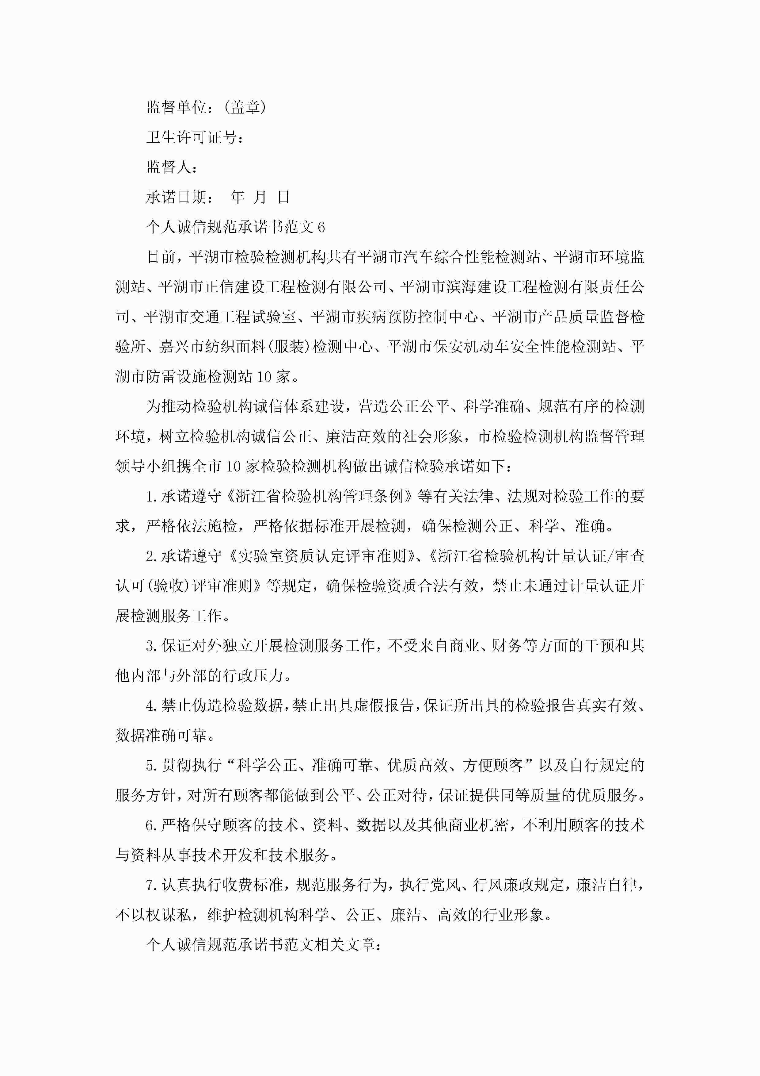 个人诚信规范承诺书范文6篇jugei3月22日 16:22发布关注196 个人诚信规范承诺书范文6篇此内容为付费资源,请付费后查看¥10.9 单篇文档限时特惠¥15个人会员开通企业会员开通立即下载无需登陆!可直接快捷下载单个模板付费资源© 版权声明THE ENDWord模板# 实用文档# 实用模板# 信函模板# 承诺书 如有问题,可点击最底部“联系我们”联系客服 分享QQ空间微博QQ好友海报分享复制链接收藏