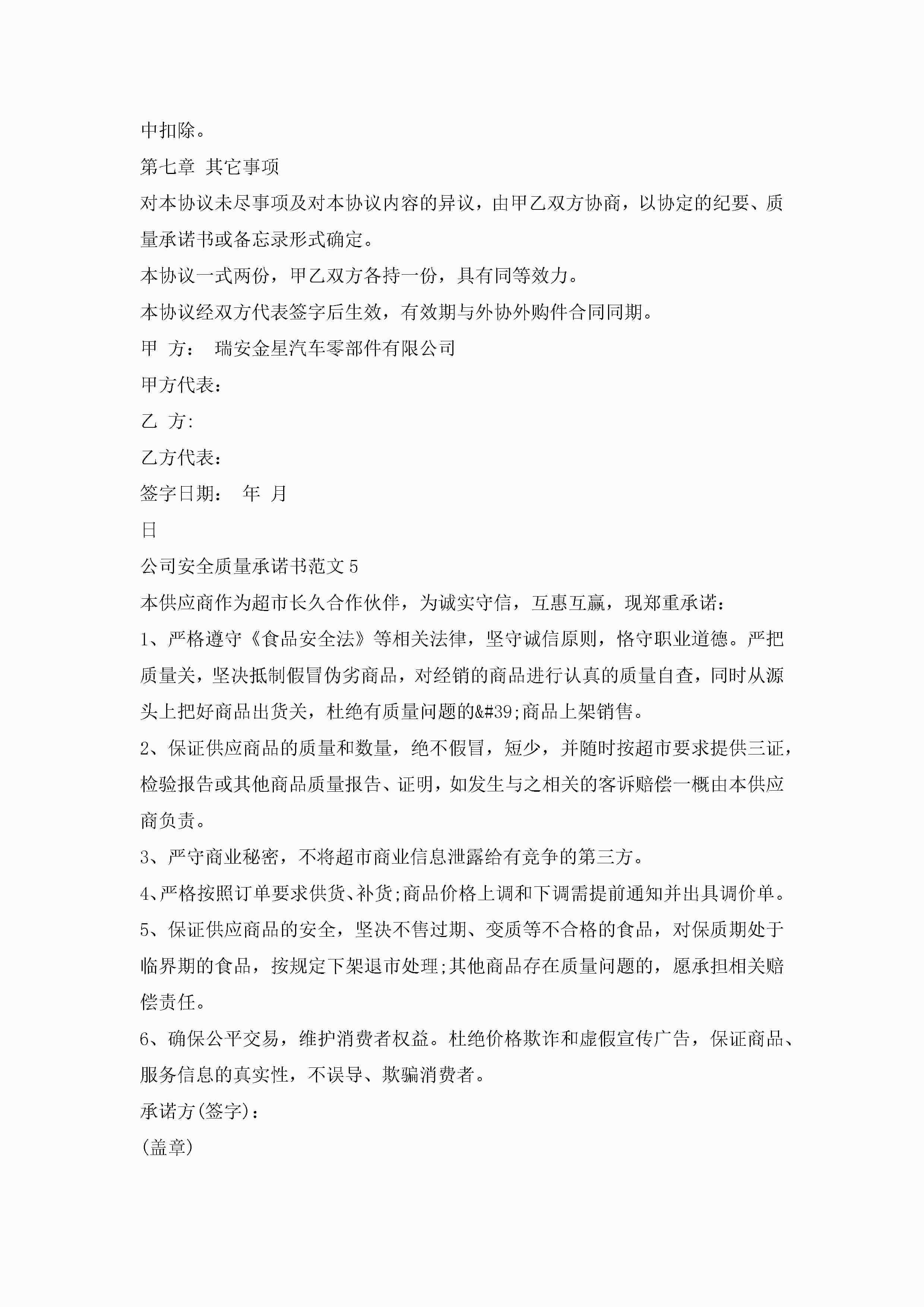 公司安全质量承诺书范文5篇jugei3月22日 16:22发布关注197 公司安全质量承诺书范文5篇此内容为付费资源,请付费后查看¥10.9 单篇文档限时特惠¥15个人会员开通企业会员开通立即下载无需登陆!可直接快捷下载单个模板付费资源© 版权声明THE ENDWord模板# 实用文档# 实用模板# 信函模板# 承诺书 如有问题,可点击最底部“联系我们”联系客服 分享QQ空间微博QQ好友海报分享复制链接收藏