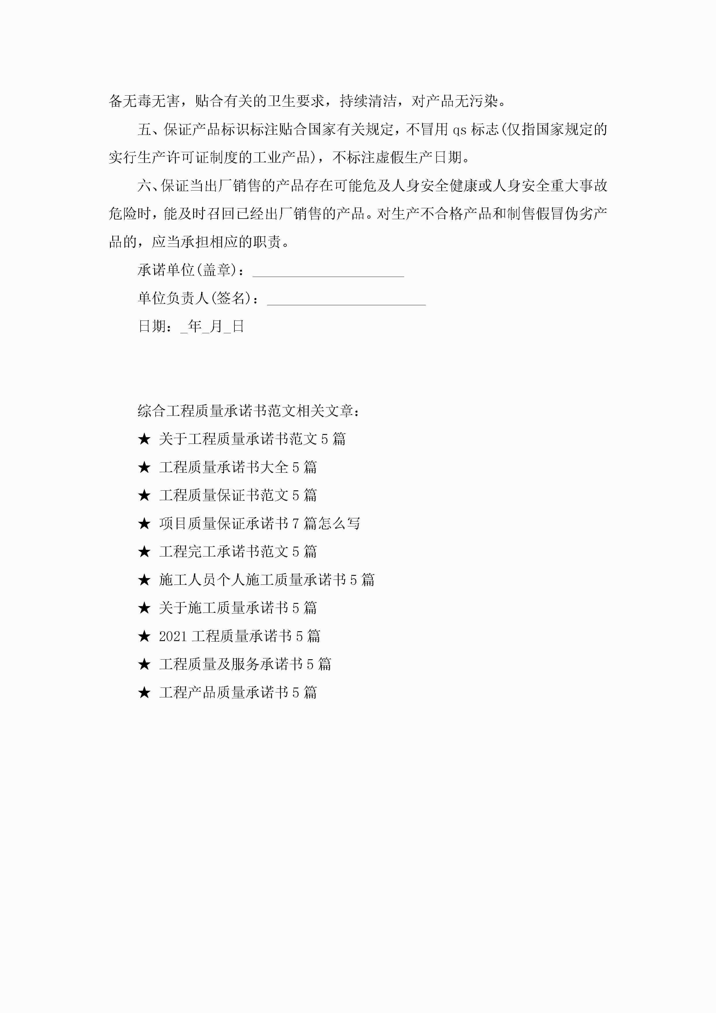 综合工程质量承诺书范文7篇jugei3月22日 16:22发布关注245 综合工程质量承诺书范文7篇此内容为付费资源,请付费后查看¥10.9 单篇文档限时特惠¥15个人会员开通企业会员开通立即下载无需登陆!可直接快捷下载单个模板付费资源© 版权声明THE ENDWord模板# 实用文档# 实用模板# 信函模板# 承诺书 如有问题,可点击最底部“联系我们”联系客服 分享QQ空间微博QQ好友海报分享复制链接收藏