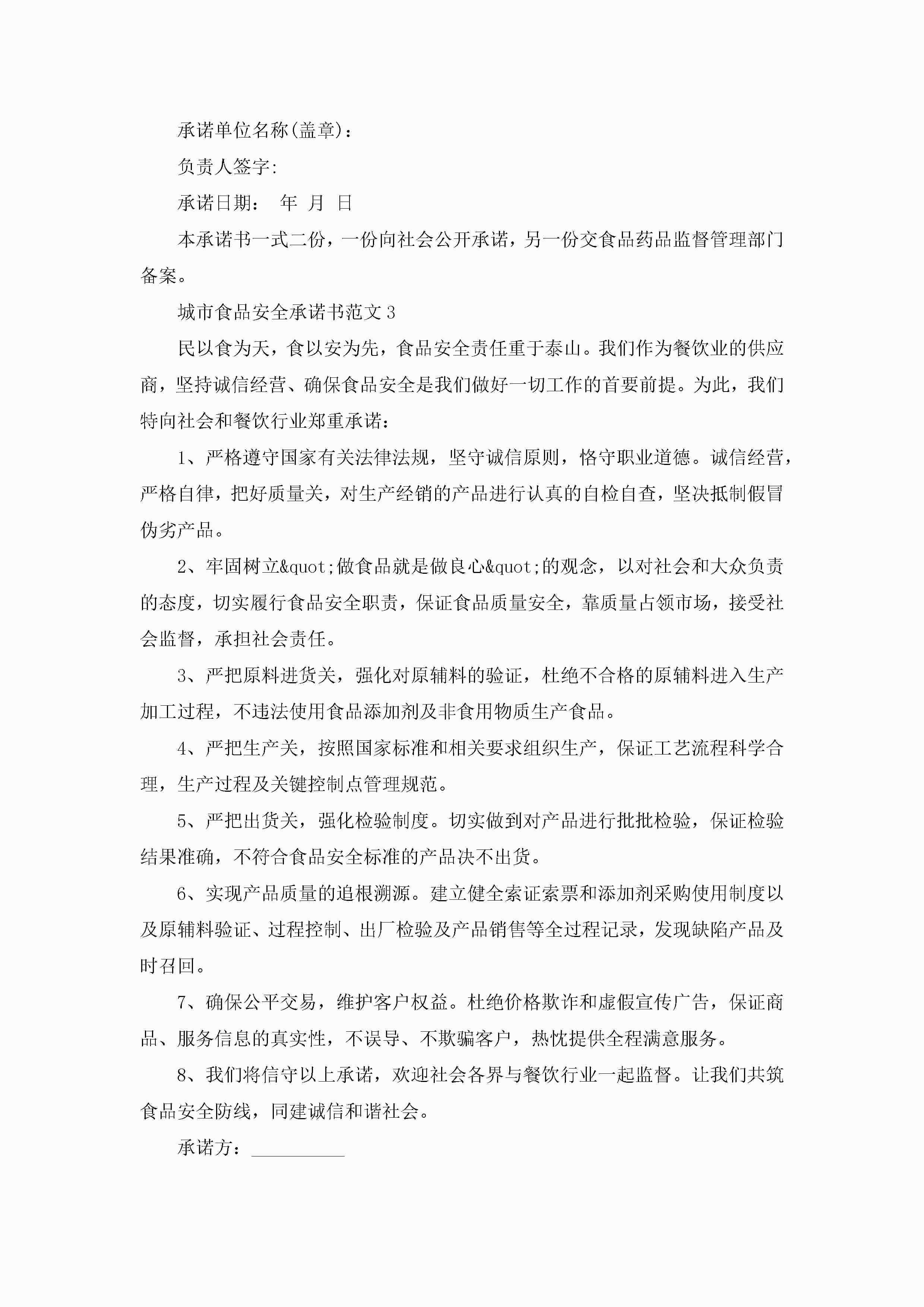 城市食品安全承诺书范文5篇jugei3月22日 16:22发布关注196 城市食品安全承诺书范文5篇此内容为付费资源,请付费后查看¥10.9 单篇文档限时特惠¥15个人会员开通企业会员开通立即下载无需登陆!可直接快捷下载单个模板付费资源© 版权声明THE ENDWord模板# 实用文档# 实用模板# 信函模板# 承诺书 如有问题,可点击最底部“联系我们”联系客服 分享QQ空间微博QQ好友海报分享复制链接收藏