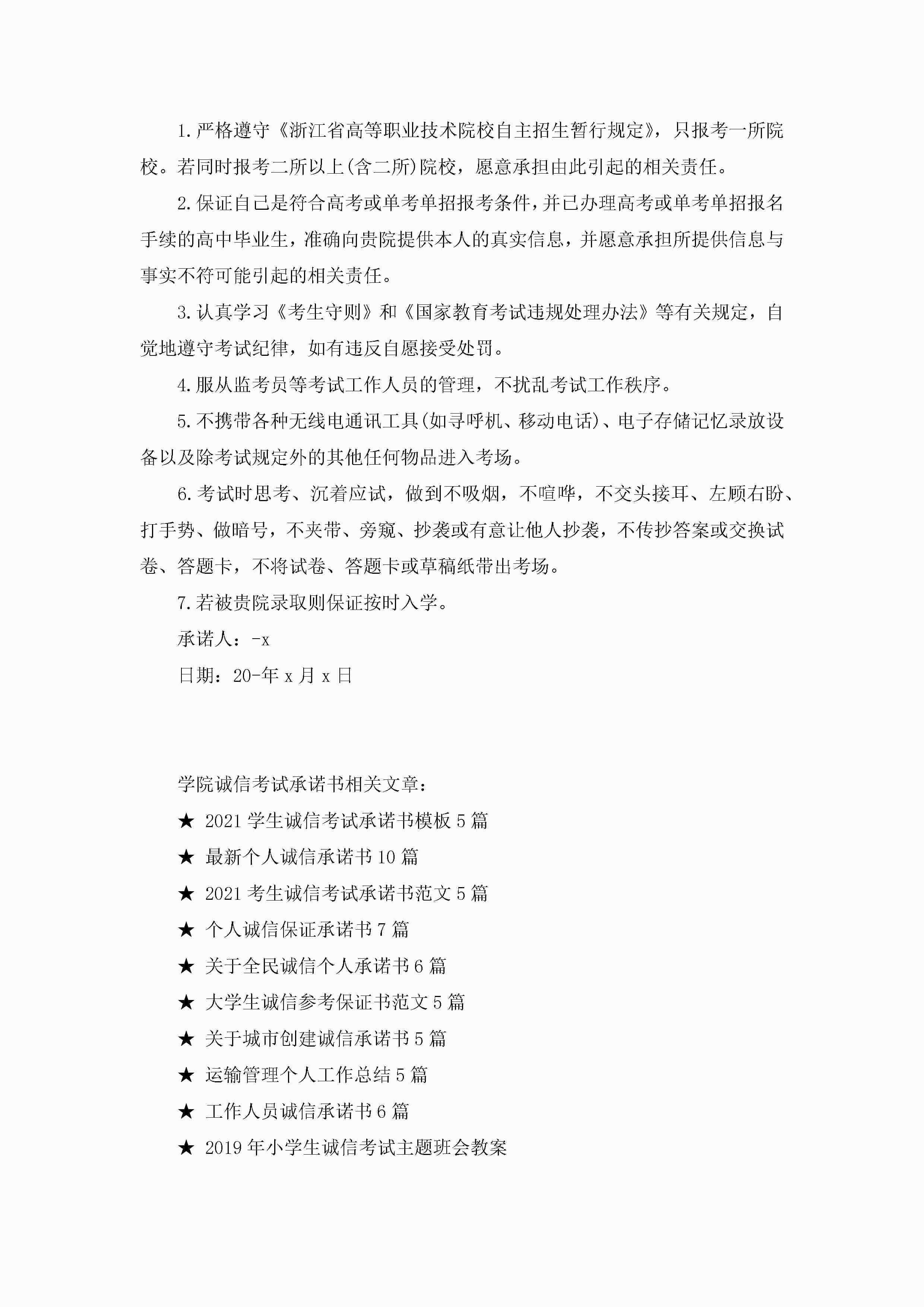 学院诚信考试承诺书6篇jugei3月22日 16:22发布关注243 学院诚信考试承诺书6篇此内容为付费资源,请付费后查看¥10.9 单篇文档限时特惠¥15个人会员开通企业会员开通立即下载无需登陆!可直接快捷下载单个模板付费资源© 版权声明THE ENDWord模板# 实用文档# 实用模板# 信函模板# 承诺书 如有问题,可点击最底部“联系我们”联系客服 分享QQ空间微博QQ好友海报分享复制链接收藏