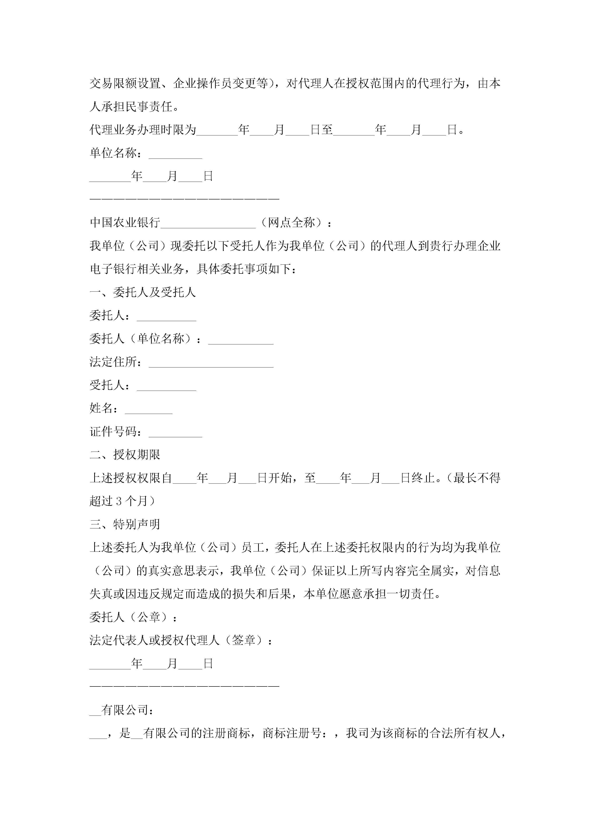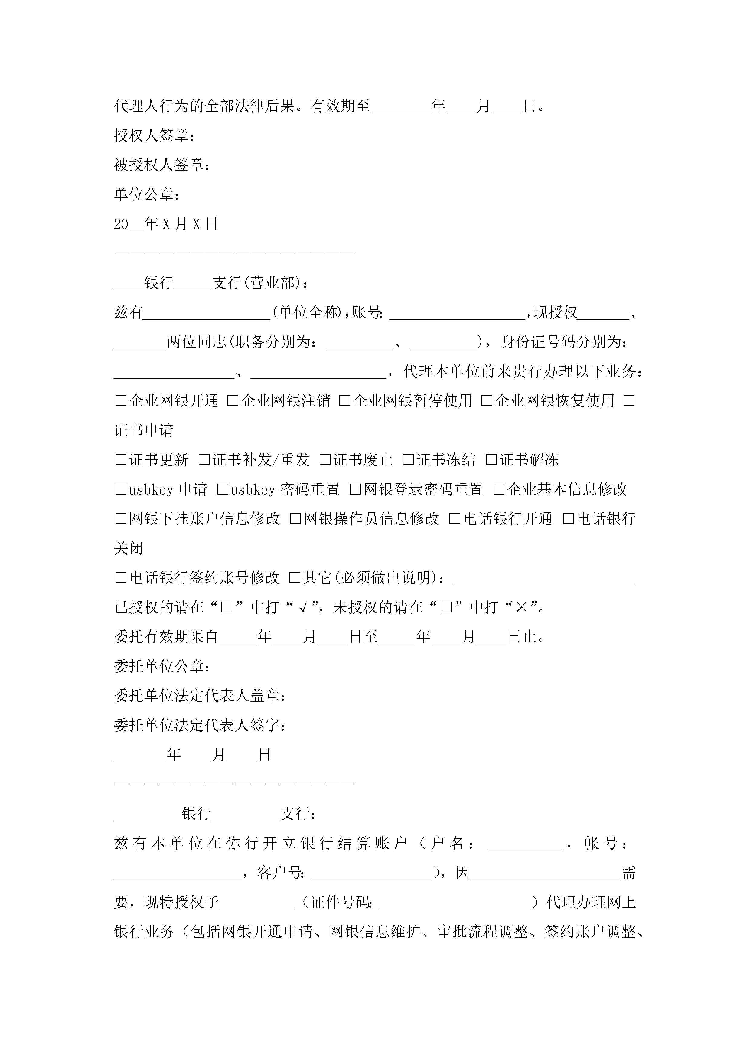 银行授权委托书(精选10篇)jugei3月22日 16:22发布关注279 银行授权委托书(精选10篇)此内容为付费资源,请付费后查看¥10.9 单篇文档限时特惠¥15个人会员开通企业会员开通立即下载无需登陆!可直接快捷下载单个模板付费资源© 版权声明THE ENDWord模板# 实用文档# 实用模板# 信函模板# 委托书 如有问题,可点击最底部“联系我们”联系客服 分享QQ空间微博QQ好友海报分享复制链接收藏