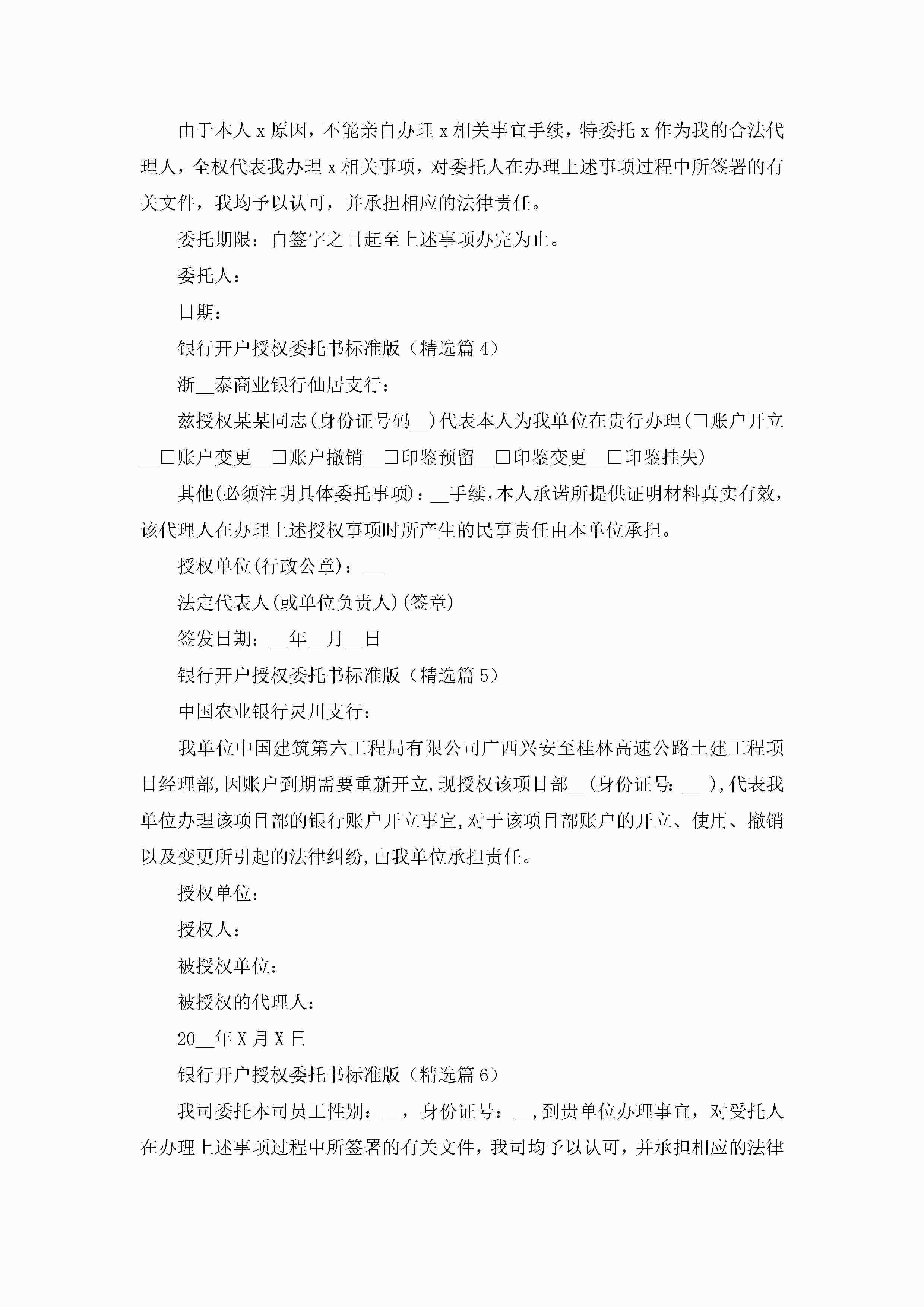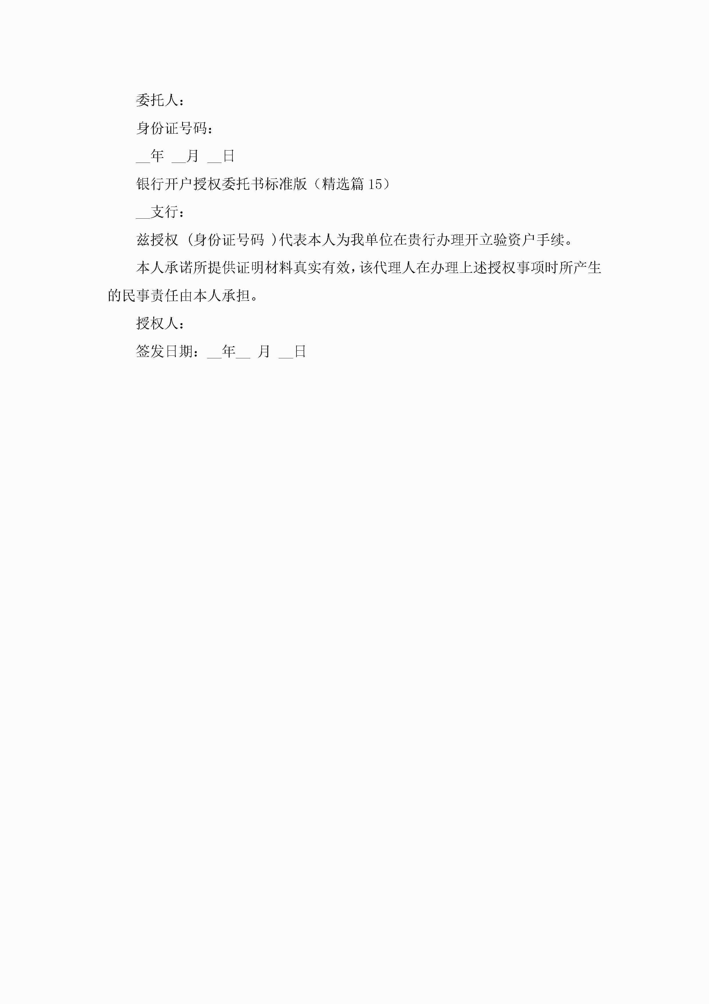 银行开户授权委托书标准版(精选15篇)jugei3月22日 16:22发布关注229 银行开户授权委托书标准版(精选15篇)此内容为付费资源,请付费后查看¥10.9 单篇文档限时特惠¥15个人会员开通企业会员开通立即下载无需登陆!可直接快捷下载单个模板付费资源© 版权声明THE ENDWord模板# 实用文档# 实用模板# 信函模板# 委托书 如有问题,可点击最底部“联系我们”联系客服 分享QQ空间微博QQ好友海报分享复制链接收藏