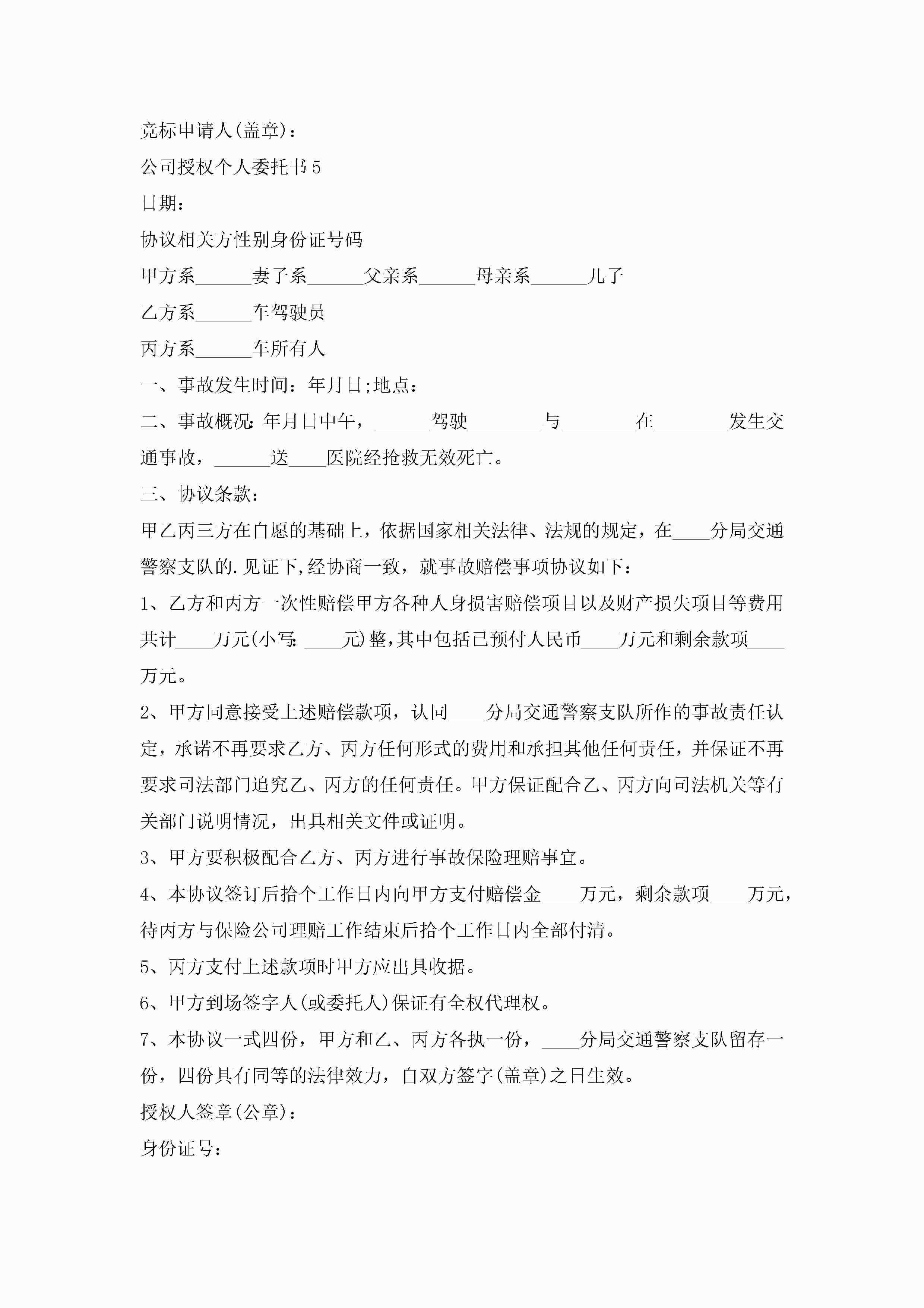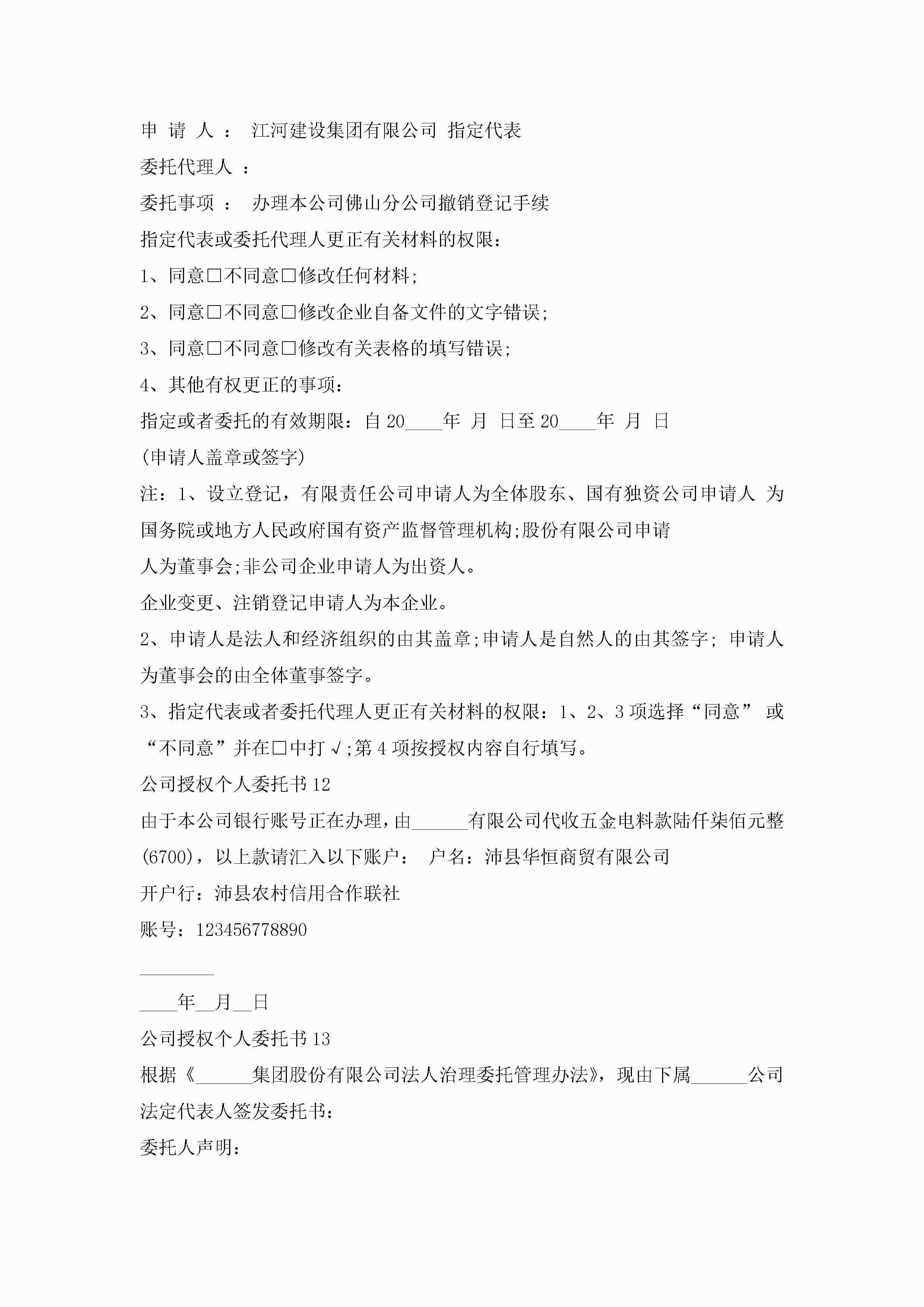最新公司授权个人委托书13篇jugei3月22日 16:22发布关注224 最新公司授权个人委托书13篇此内容为付费资源,请付费后查看¥10.9 单篇文档限时特惠¥15个人会员开通企业会员开通立即下载无需登陆!可直接快捷下载单个模板付费资源© 版权声明THE ENDWord模板# 实用文档# 实用模板# 信函模板# 委托书 如有问题,可点击最底部“联系我们”联系客服 分享QQ空间微博QQ好友海报分享复制链接收藏