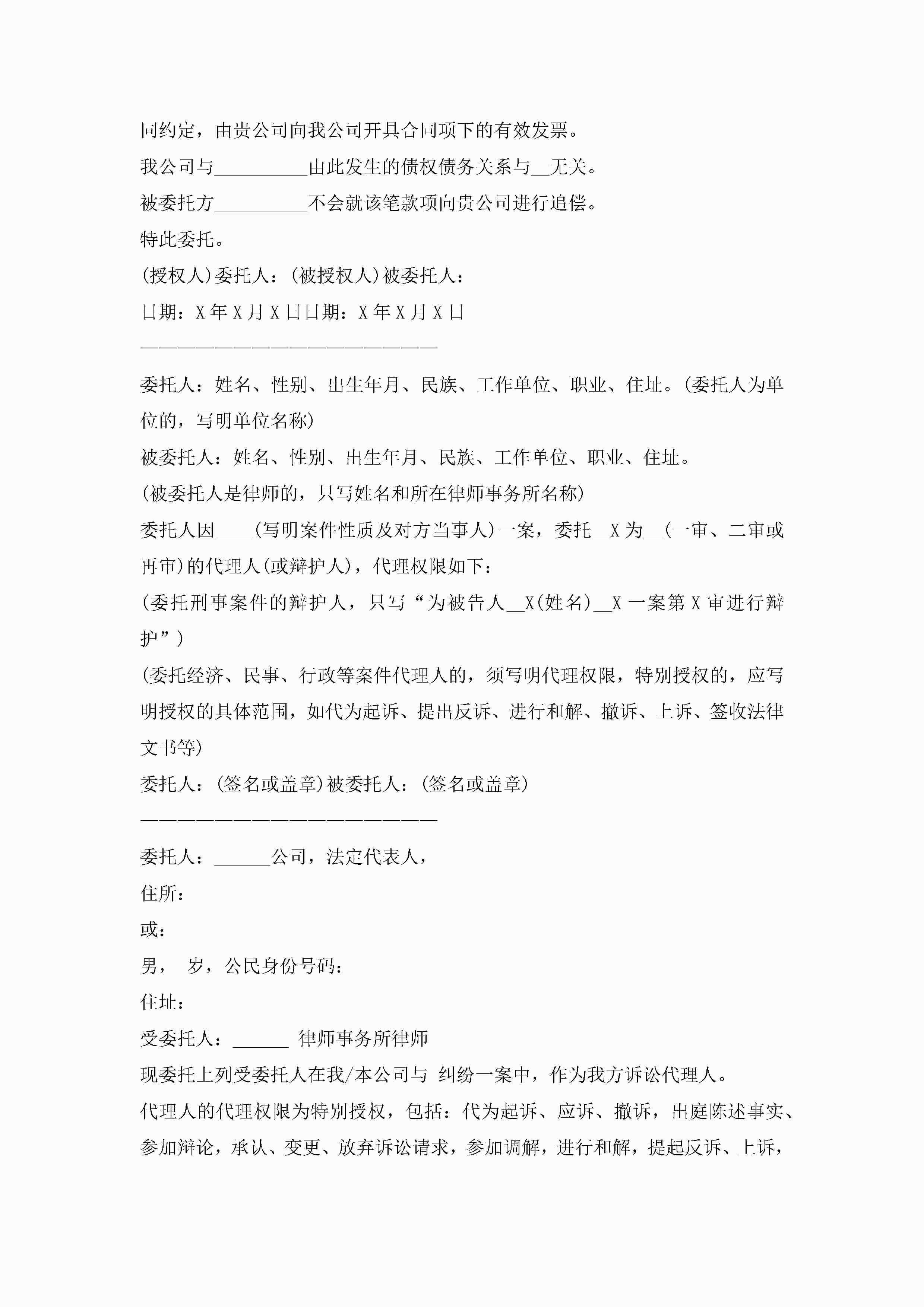 关于授权委托书范文模板(精选10篇)jugei3月22日 16:22发布关注298 关于授权委托书范文模板(精选10篇)此内容为付费资源,请付费后查看¥10.9 单篇文档限时特惠¥15个人会员开通企业会员开通立即下载无需登陆!可直接快捷下载单个模板付费资源© 版权声明THE ENDWord模板# 实用文档# 实用模板# 信函模板# 委托书 如有问题,可点击最底部“联系我们”联系客服 分享QQ空间微博QQ好友海报分享复制链接收藏