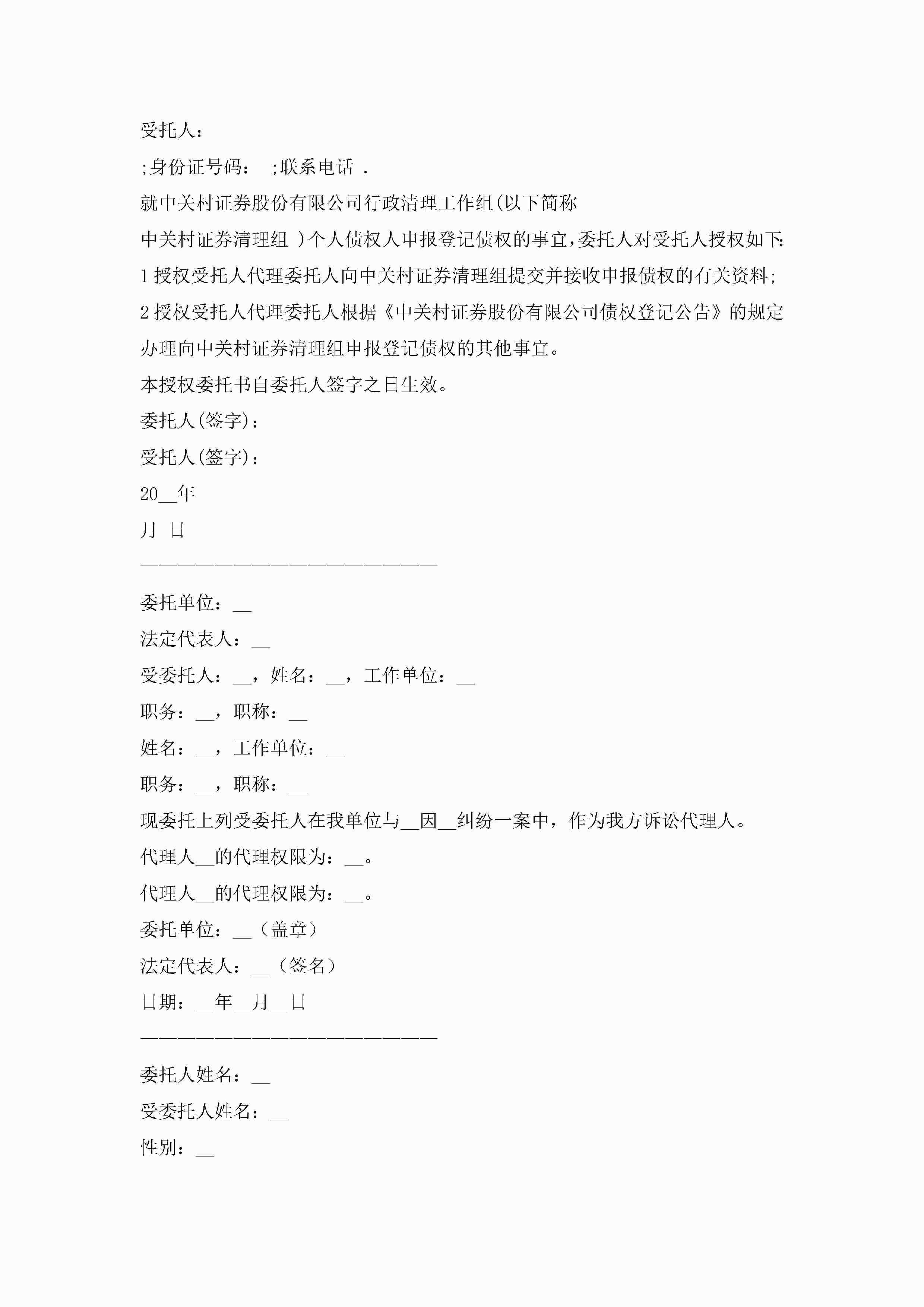 个人委托书格式样本(精选10篇)jugei3月22日 16:22发布关注286 个人委托书格式样本(精选10篇)此内容为付费资源,请付费后查看¥10.9 单篇文档限时特惠¥15个人会员开通企业会员开通立即下载无需登陆!可直接快捷下载单个模板付费资源© 版权声明THE ENDWord模板# 实用文档# 实用模板# 信函模板# 委托书 如有问题,可点击最底部“联系我们”联系客服 分享QQ空间微博QQ好友海报分享复制链接收藏