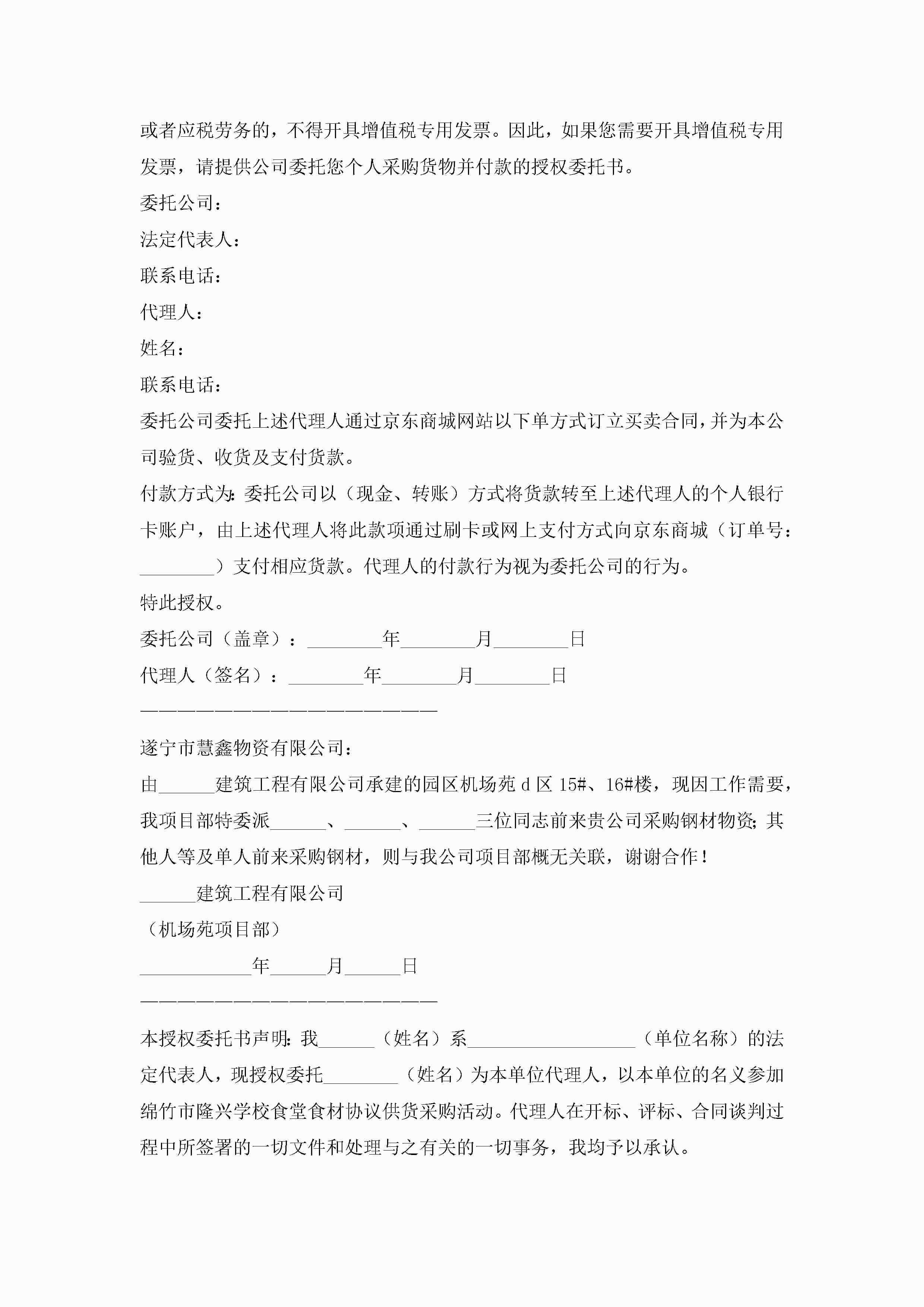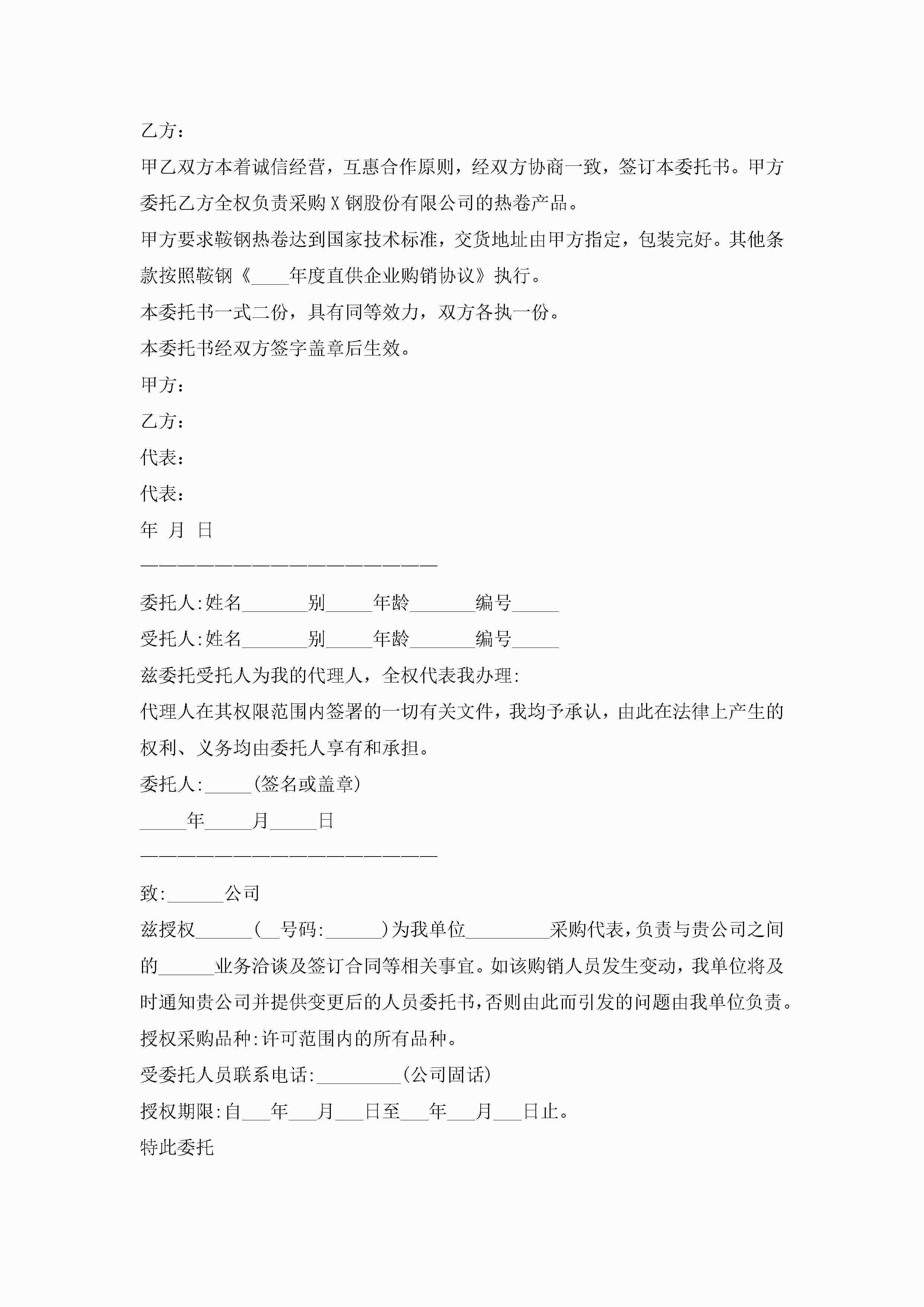 采购授权委托书(精选10篇)jugei3月22日 16:22发布关注227 采购授权委托书(精选10篇)此内容为付费资源,请付费后查看¥10.9 单篇文档限时特惠¥15个人会员开通企业会员开通立即下载无需登陆!可直接快捷下载单个模板付费资源© 版权声明THE ENDWord模板# 实用文档# 实用模板# 信函模板# 委托书 如有问题,可点击最底部“联系我们”联系客服 分享QQ空间微博QQ好友海报分享复制链接收藏