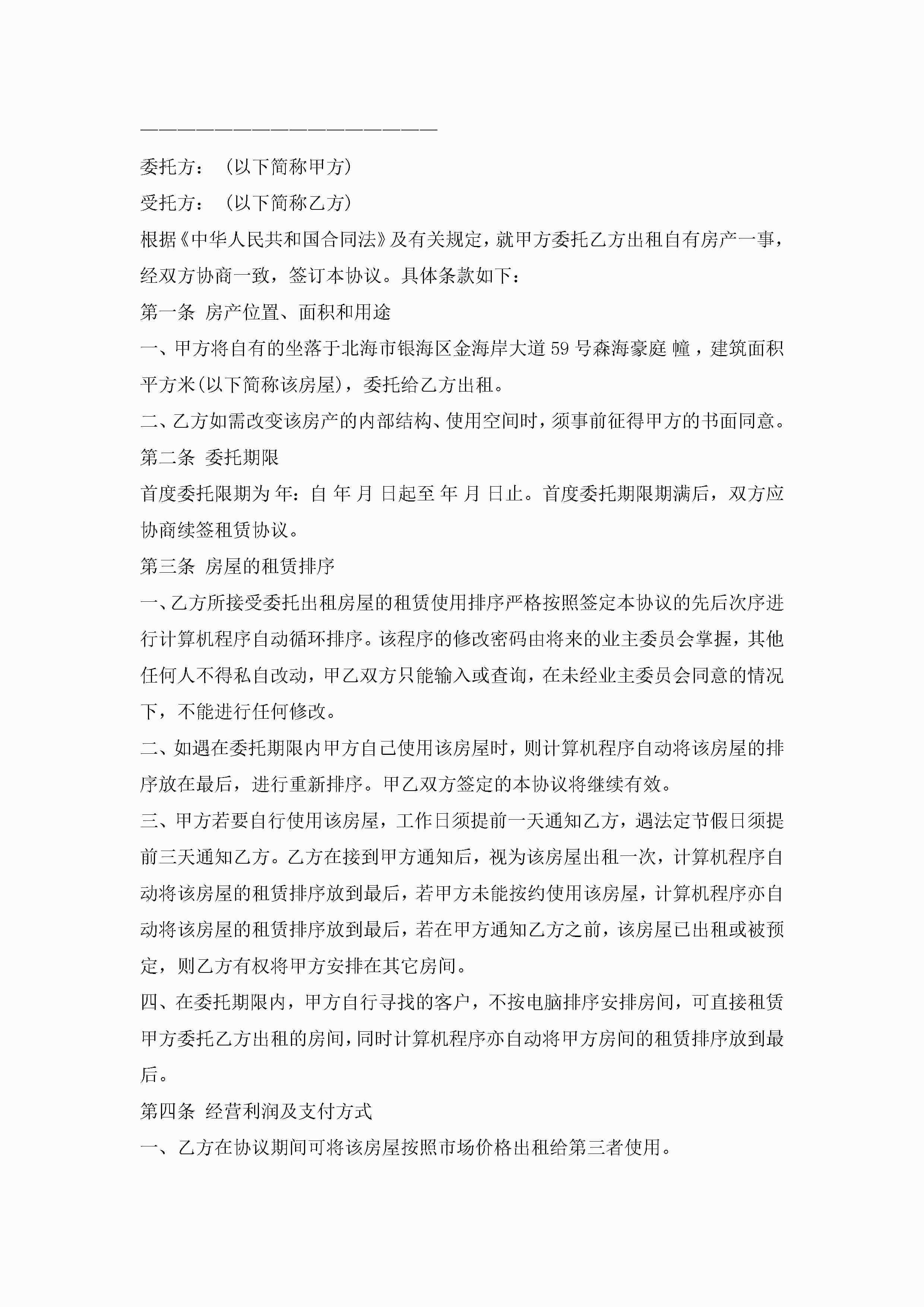 房屋租赁代理授权委托书8篇jugei3月22日 16:22发布关注276 房屋租赁代理授权委托书8篇此内容为付费资源,请付费后查看¥10.9 单篇文档限时特惠¥15个人会员开通企业会员开通立即下载无需登陆!可直接快捷下载单个模板付费资源© 版权声明THE ENDWord模板# 实用文档# 实用模板# 信函模板# 委托书 如有问题,可点击最底部“联系我们”联系客服 分享QQ空间微博QQ好友海报分享复制链接收藏