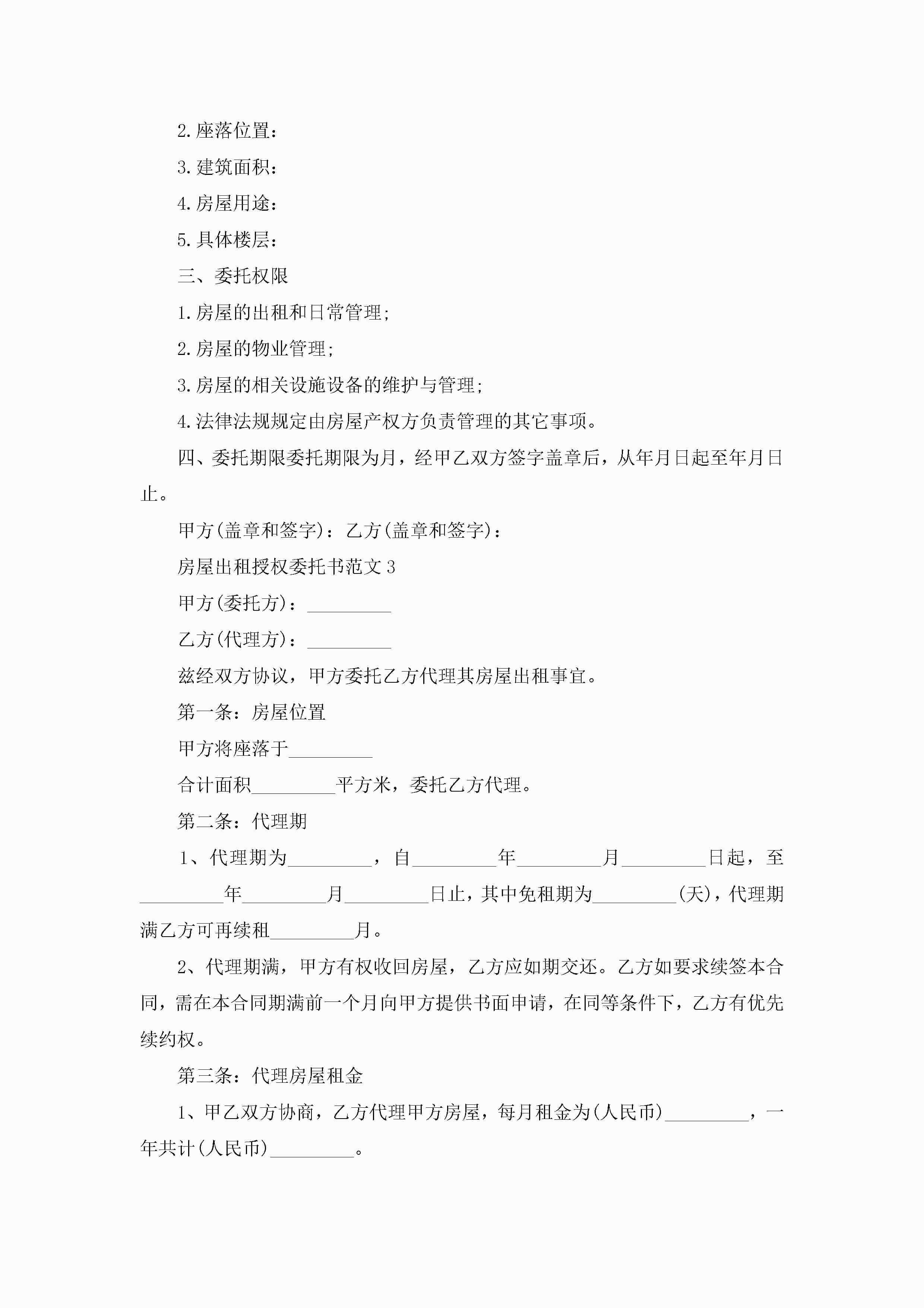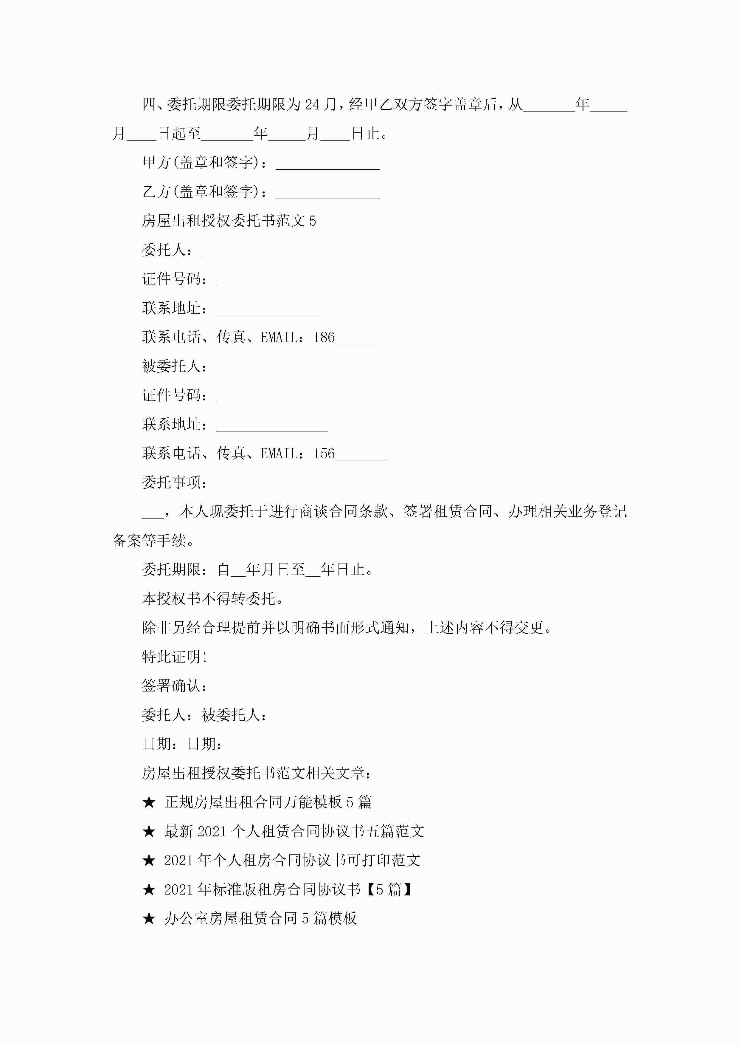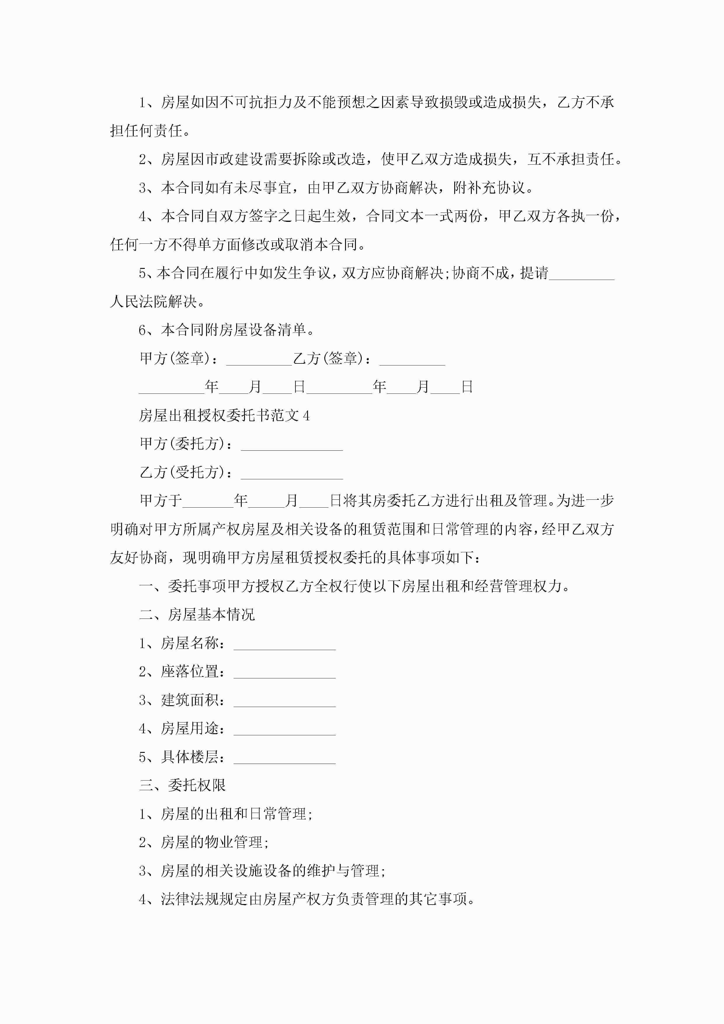 房屋出租授权委托书范文5篇jugei3月22日 16:22发布关注284 房屋出租授权委托书范文5篇此内容为付费资源,请付费后查看¥10.9 单篇文档限时特惠¥15个人会员开通企业会员开通立即下载无需登陆!可直接快捷下载单个模板付费资源© 版权声明THE ENDWord模板# 实用文档# 实用模板# 信函模板# 委托书 如有问题,可点击最底部“联系我们”联系客服 分享QQ空间微博QQ好友海报分享复制链接收藏
