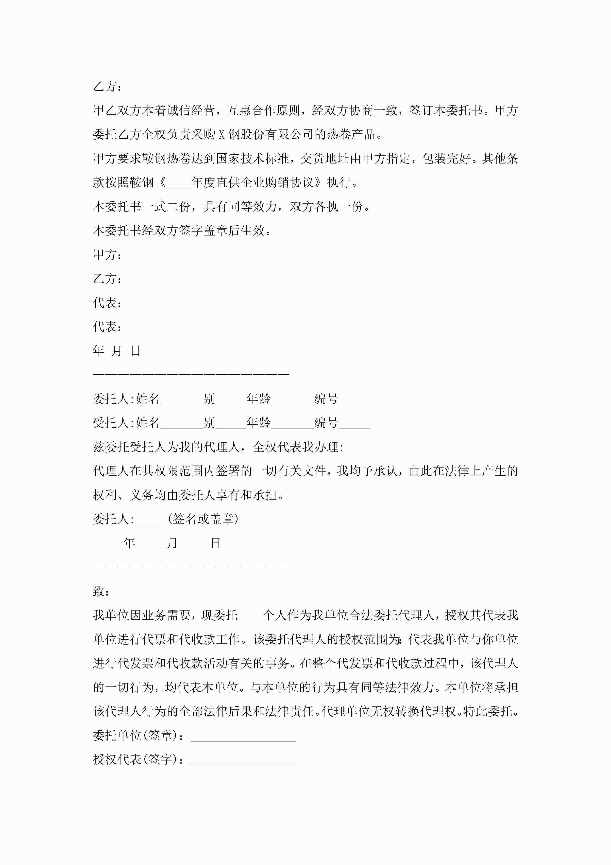 采购授权委托书【精选10篇】jugei3月22日 16:22发布关注259 采购授权委托书【精选10篇】此内容为付费资源,请付费后查看¥10.9 单篇文档限时特惠¥15个人会员开通企业会员开通立即下载无需登陆!可直接快捷下载单个模板付费资源© 版权声明THE ENDWord模板# 实用文档# 实用模板# 信函模板# 委托书 如有问题,可点击最底部“联系我们”联系客服 分享QQ空间微博QQ好友海报分享复制链接收藏