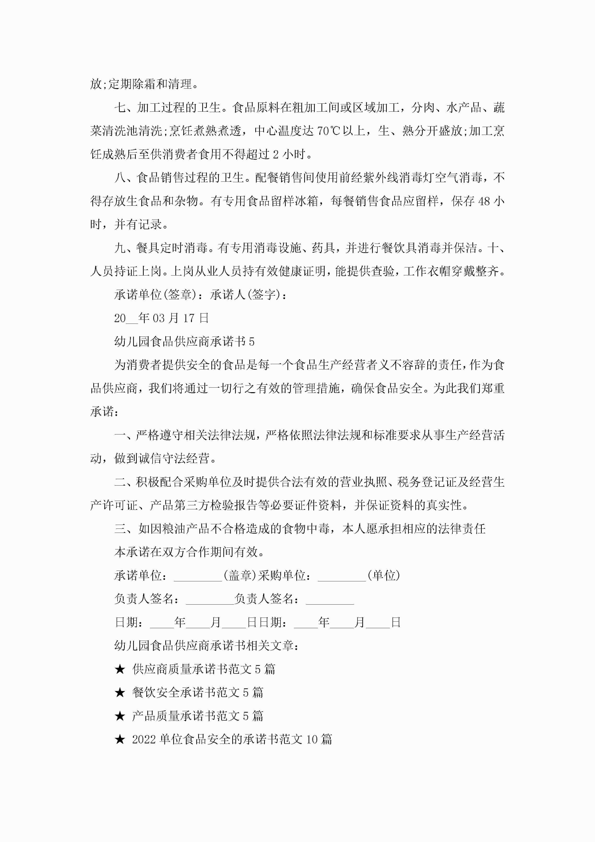 幼儿园食品供应商承诺书5篇jugei3月22日 16:22发布关注261 幼儿园食品供应商承诺书5篇此内容为付费资源,请付费后查看¥10.9 单篇文档限时特惠¥15个人会员开通企业会员开通立即下载无需登陆!可直接快捷下载单个模板付费资源© 版权声明THE ENDWord模板# 实用文档# 实用模板# 信函模板# 承诺书 如有问题,可点击最底部“联系我们”联系客服 分享QQ空间微博QQ好友海报分享复制链接收藏