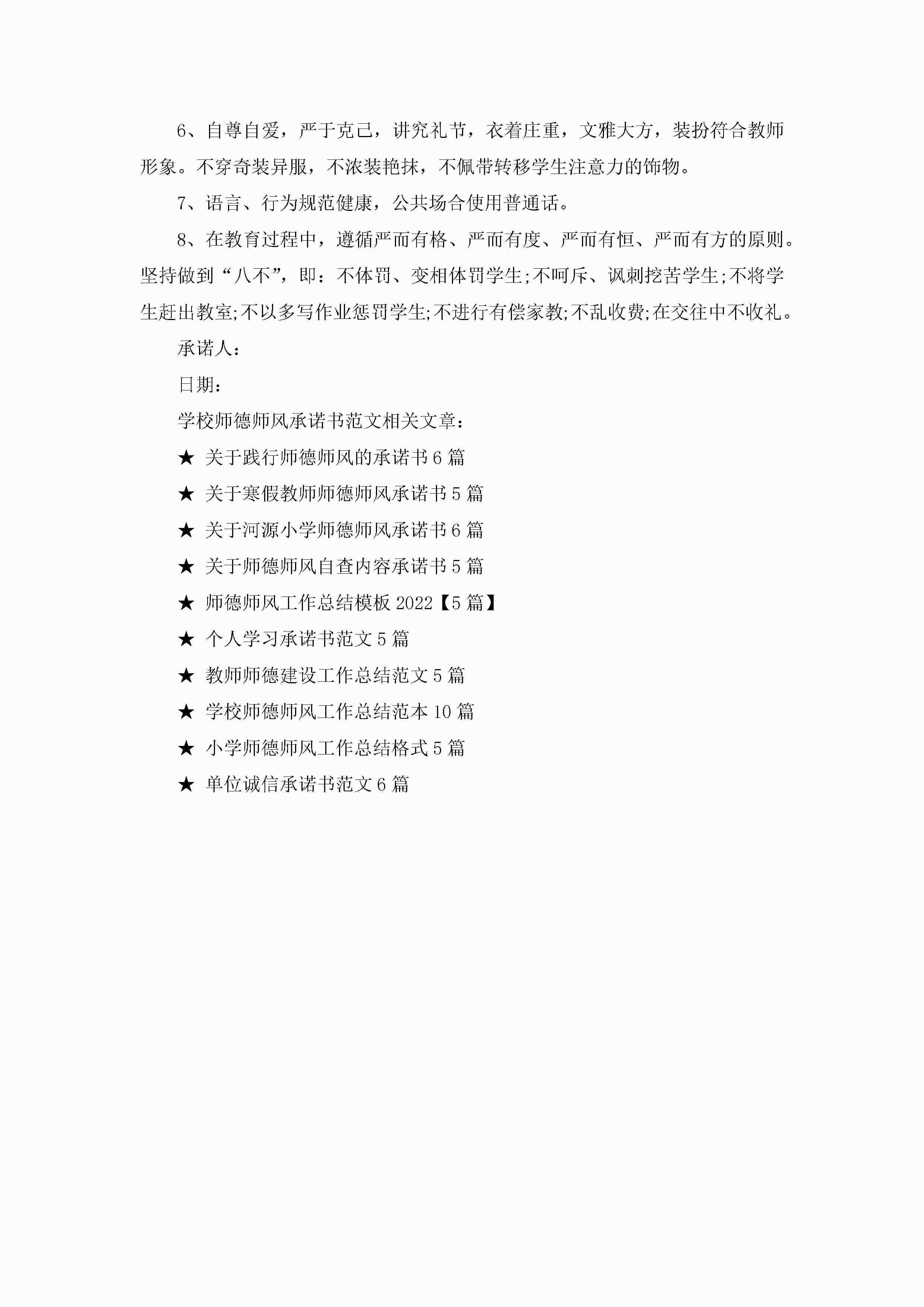 学校师德师风承诺书范文5篇jugei3月22日 16:22发布关注259 学校师德师风承诺书范文5篇此内容为付费资源,请付费后查看¥10.9 单篇文档限时特惠¥15个人会员开通企业会员开通立即下载无需登陆!可直接快捷下载单个模板付费资源© 版权声明THE ENDWord模板# 实用文档# 实用模板# 信函模板# 承诺书 如有问题,可点击最底部“联系我们”联系客服 分享QQ空间微博QQ好友海报分享复制链接收藏
