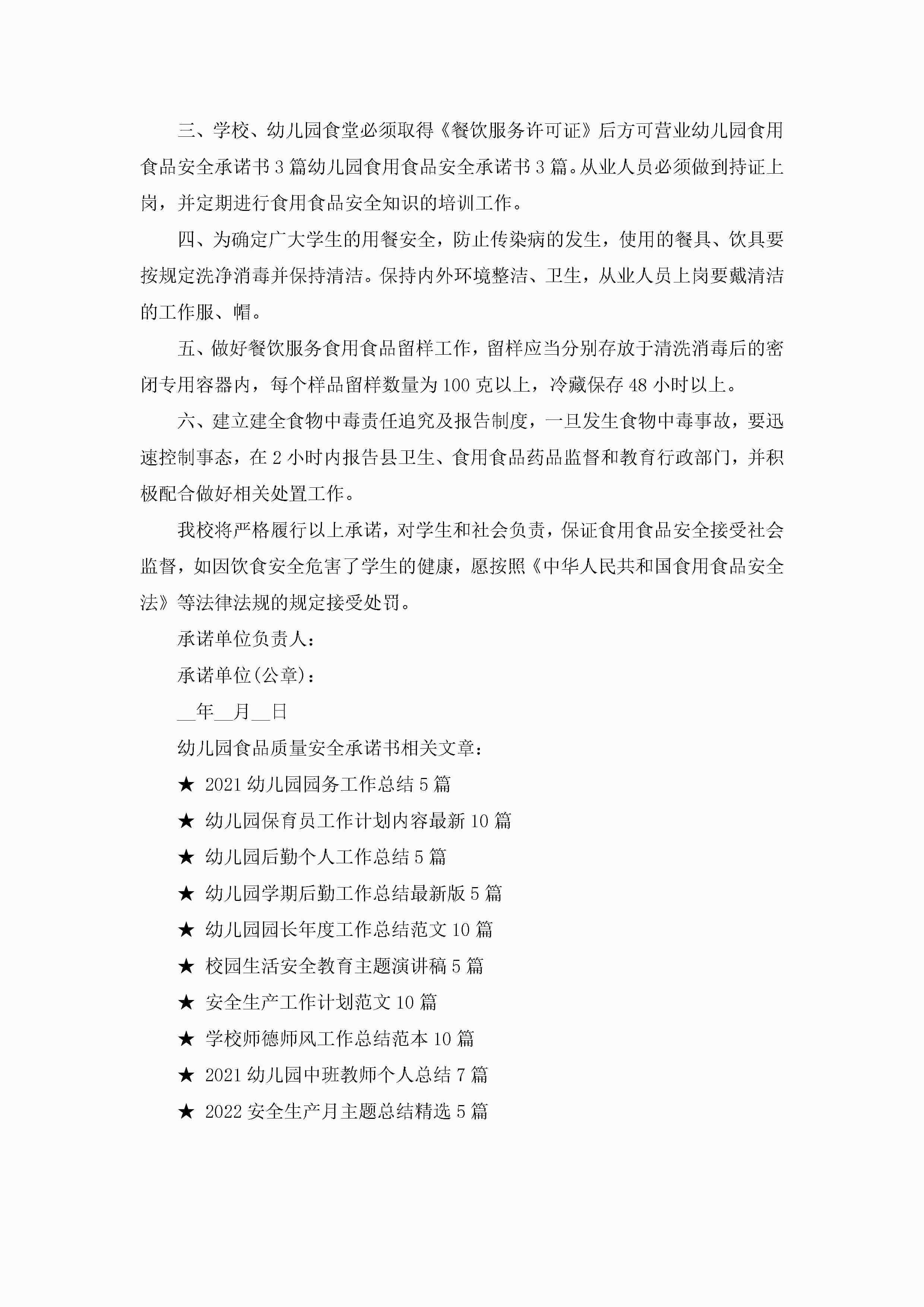 幼儿园食品质量安全承诺书5篇jugei3月22日 16:22发布关注331 幼儿园食品质量安全承诺书5篇此内容为付费资源,请付费后查看¥10.9 单篇文档限时特惠¥15个人会员开通企业会员开通立即下载无需登陆!可直接快捷下载单个模板付费资源© 版权声明THE ENDWord模板# 实用文档# 实用模板# 信函模板# 承诺书 如有问题,可点击最底部“联系我们”联系客服 分享QQ空间微博QQ好友海报分享复制链接收藏