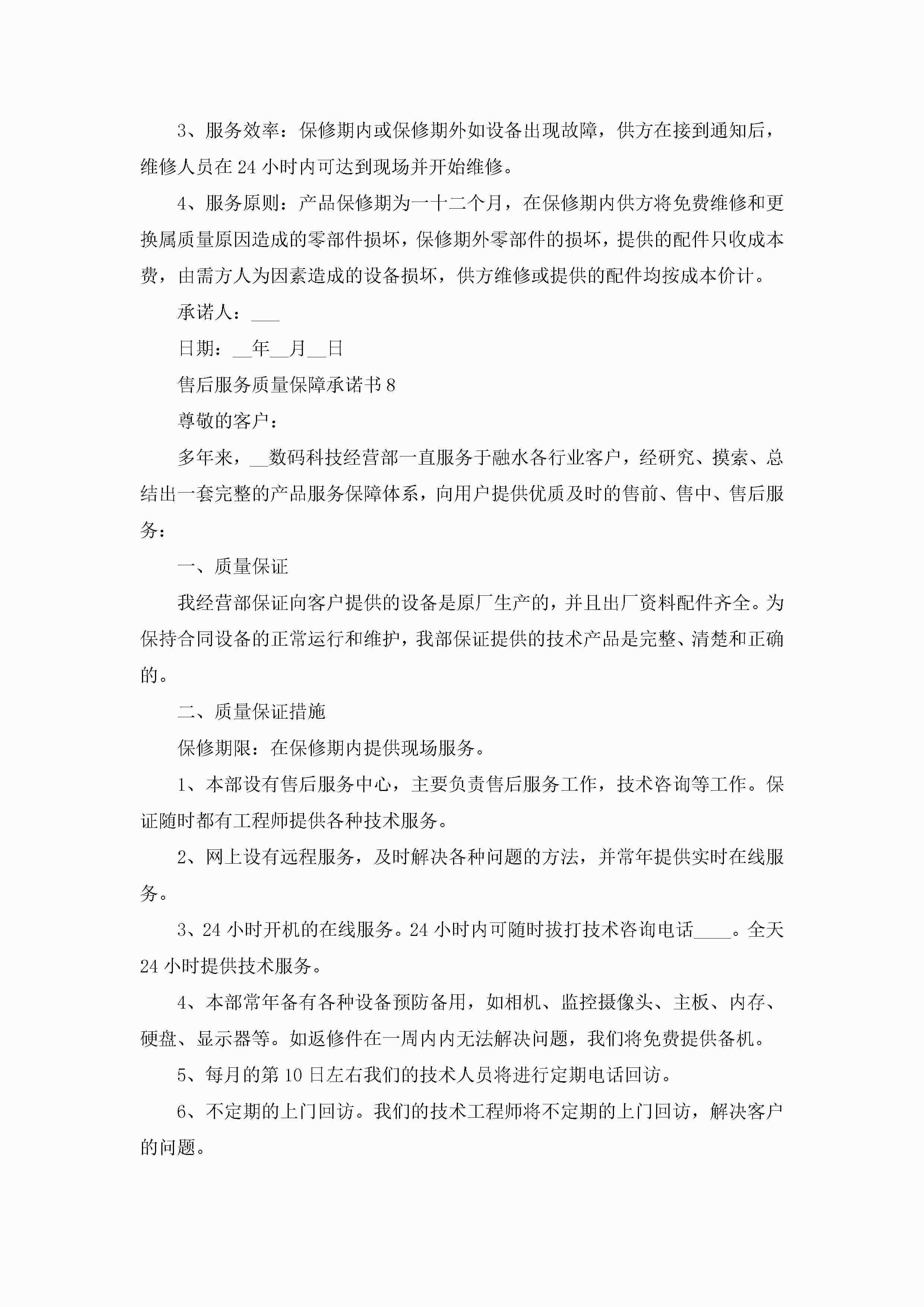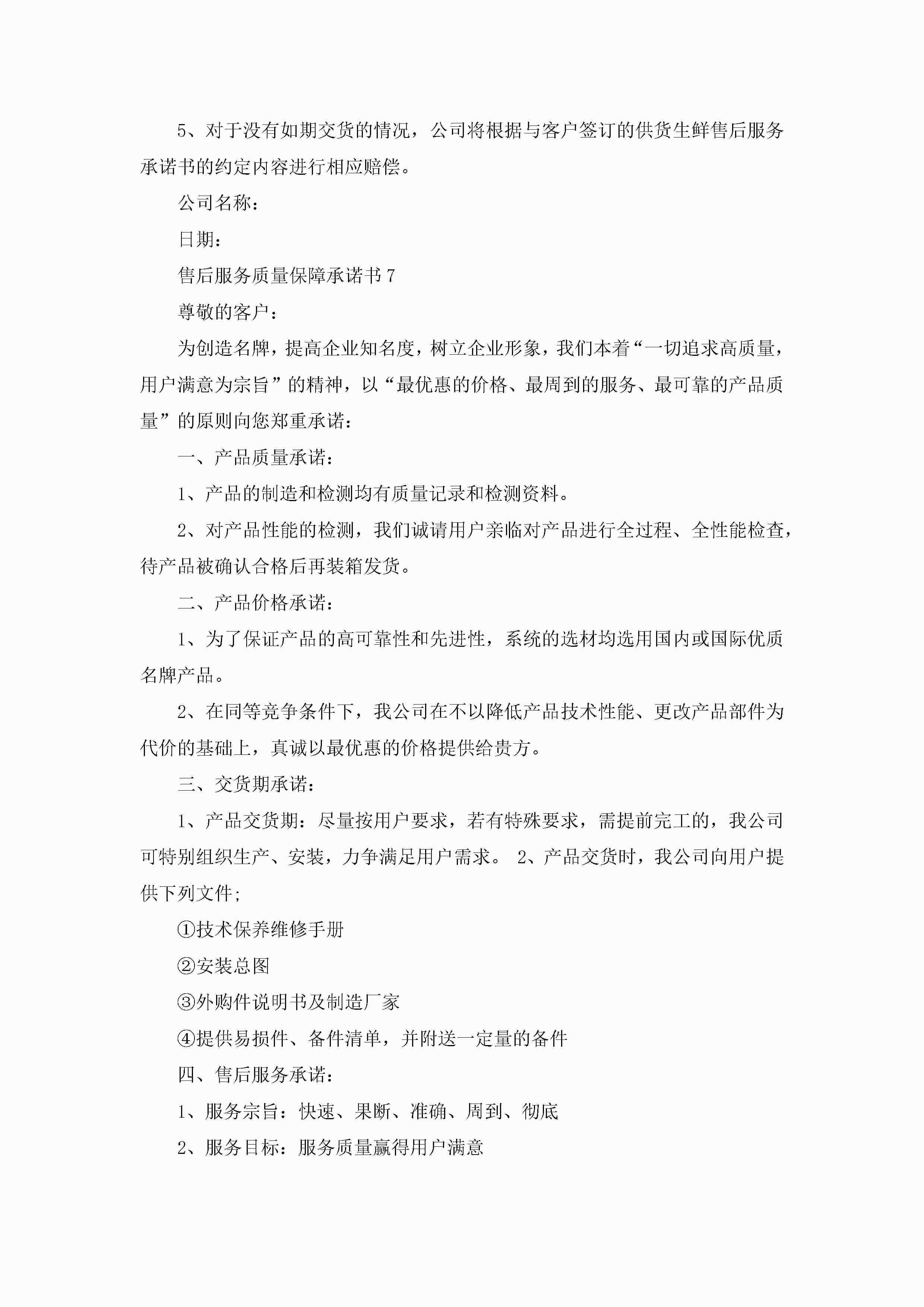 售后服务质量保障承诺书9篇jugei3月22日 16:22发布关注194 售后服务质量保障承诺书9篇此内容为付费资源,请付费后查看¥10.9 单篇文档限时特惠¥15个人会员开通企业会员开通立即下载无需登陆!可直接快捷下载单个模板付费资源© 版权声明THE ENDWord模板# 实用文档# 实用模板# 信函模板# 承诺书 如有问题,可点击最底部“联系我们”联系客服 分享QQ空间微博QQ好友海报分享复制链接收藏