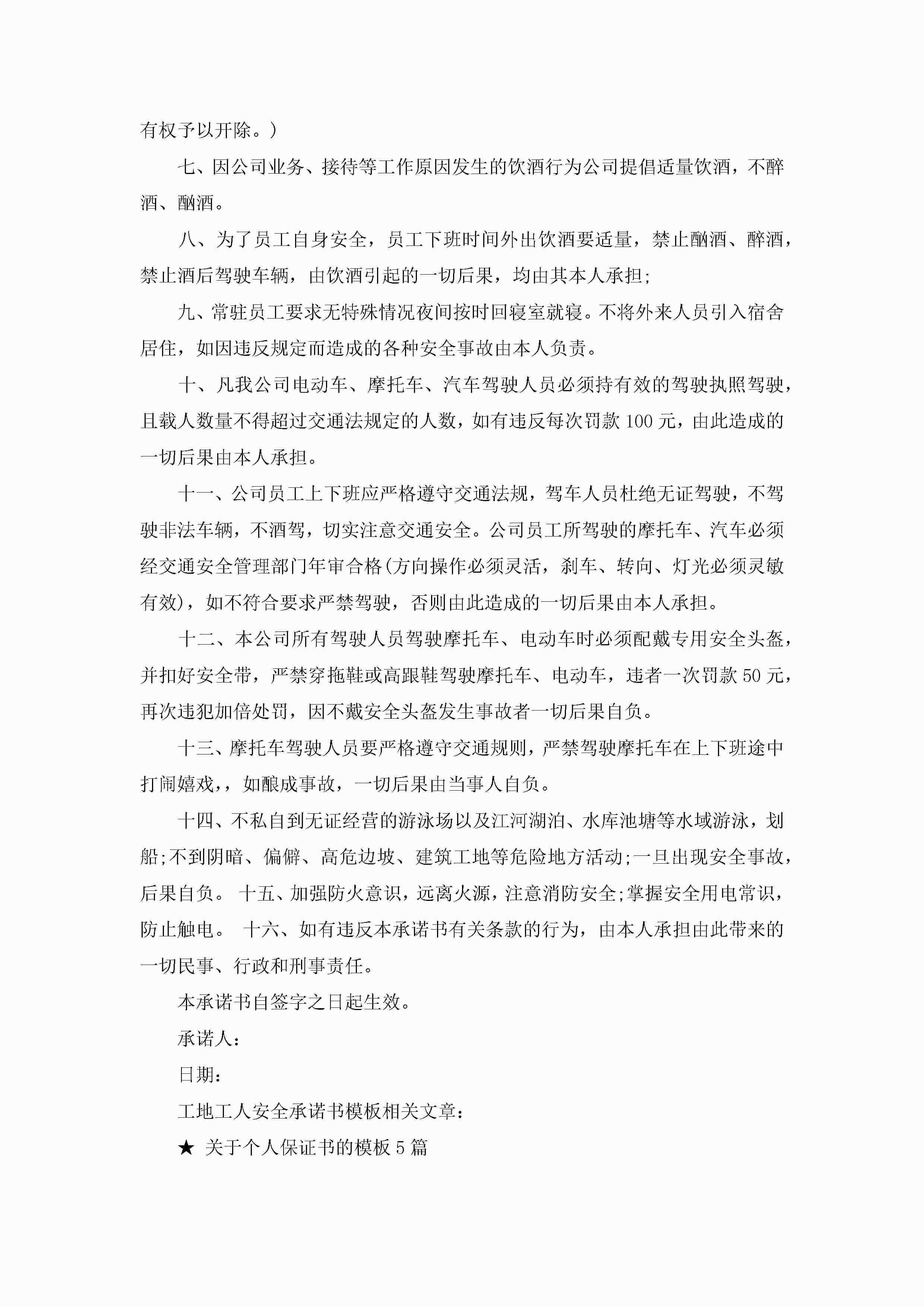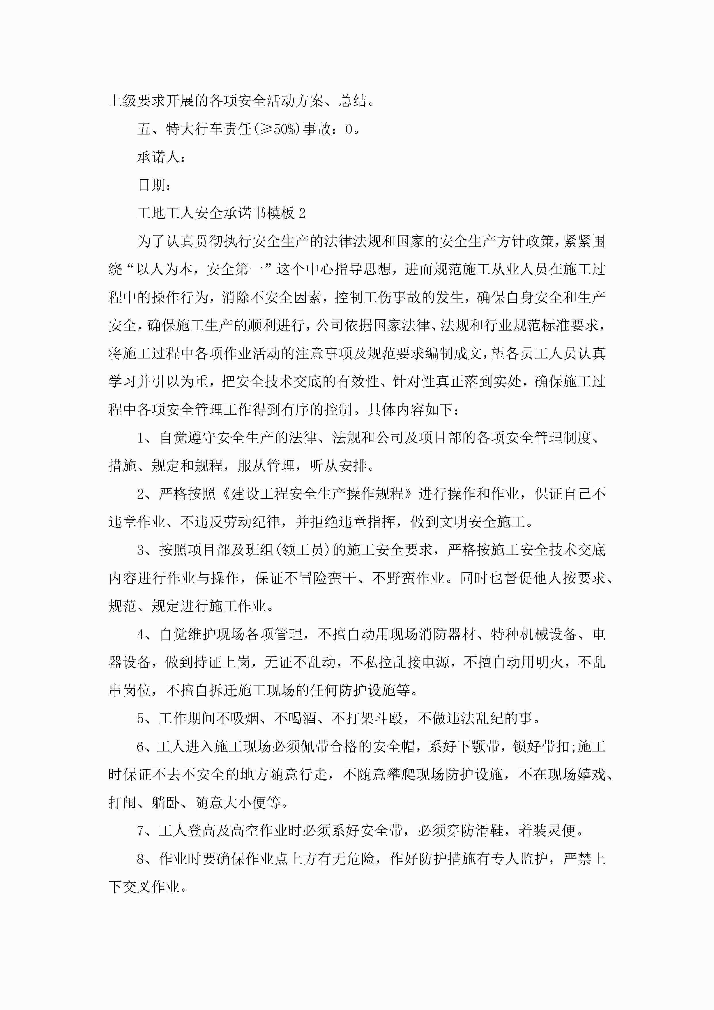工地工人安全承诺书模板5篇jugei3月22日 16:22发布关注266 工地工人安全承诺书模板5篇此内容为付费资源,请付费后查看¥10.9 单篇文档限时特惠¥15个人会员开通企业会员开通立即下载无需登陆!可直接快捷下载单个模板付费资源© 版权声明THE ENDWord模板# 实用文档# 信函模板# 承诺书# 工地工人安全承诺书模板 如有问题,可点击最底部“联系我们”联系客服 分享QQ空间微博QQ好友海报分享复制链接收藏