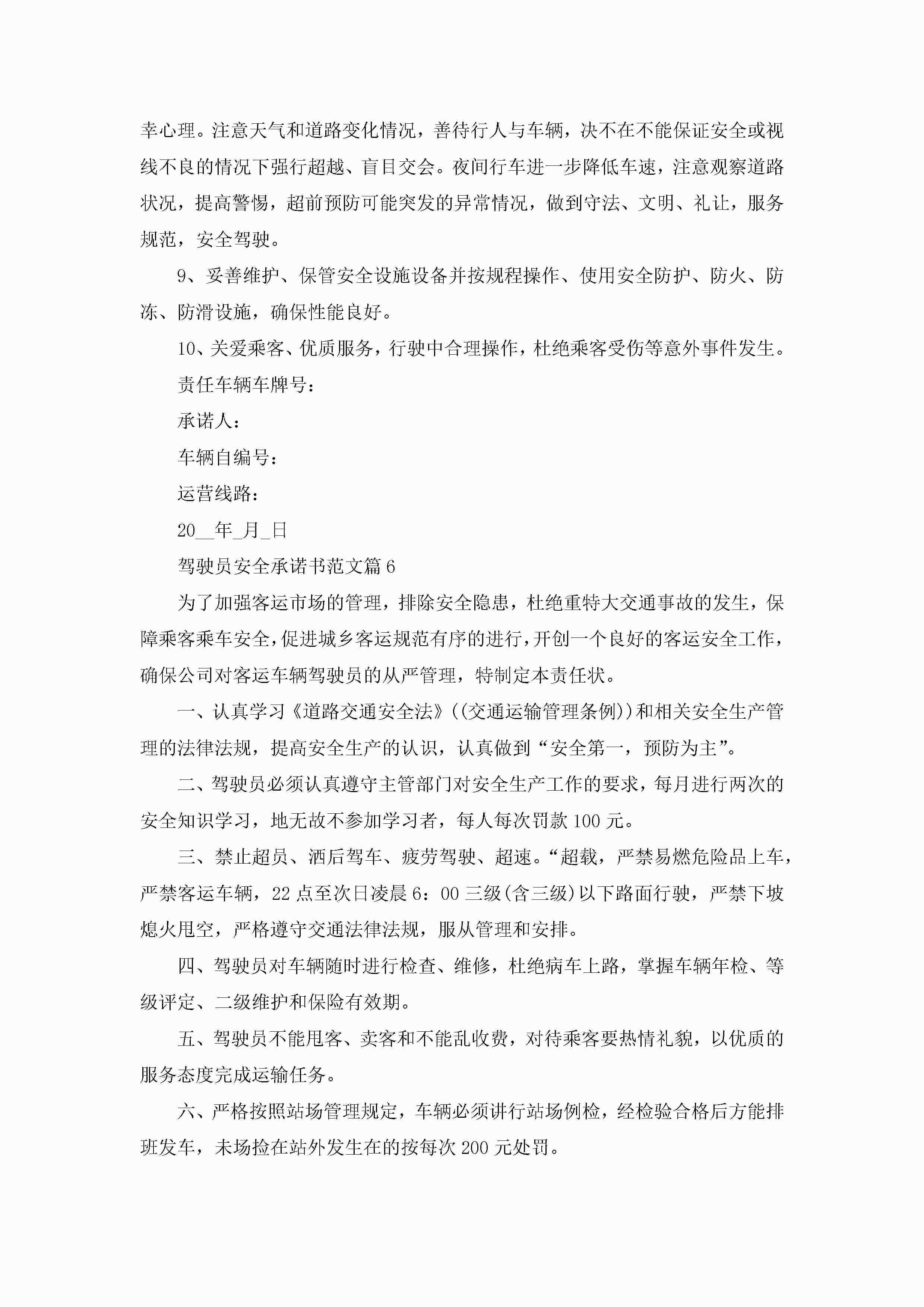 驾驶员安全承诺书范文10篇精选jugei3月22日 16:22发布关注285 驾驶员安全承诺书范文10篇精选此内容为付费资源,请付费后查看¥10.9 单篇文档限时特惠¥15个人会员开通企业会员开通立即下载无需登陆!可直接快捷下载单个模板付费资源© 版权声明THE ENDWord模板# 实用文档# 实用模板# 信函模板# 承诺书 如有问题,可点击最底部“联系我们”联系客服 分享QQ空间微博QQ好友海报分享复制链接收藏