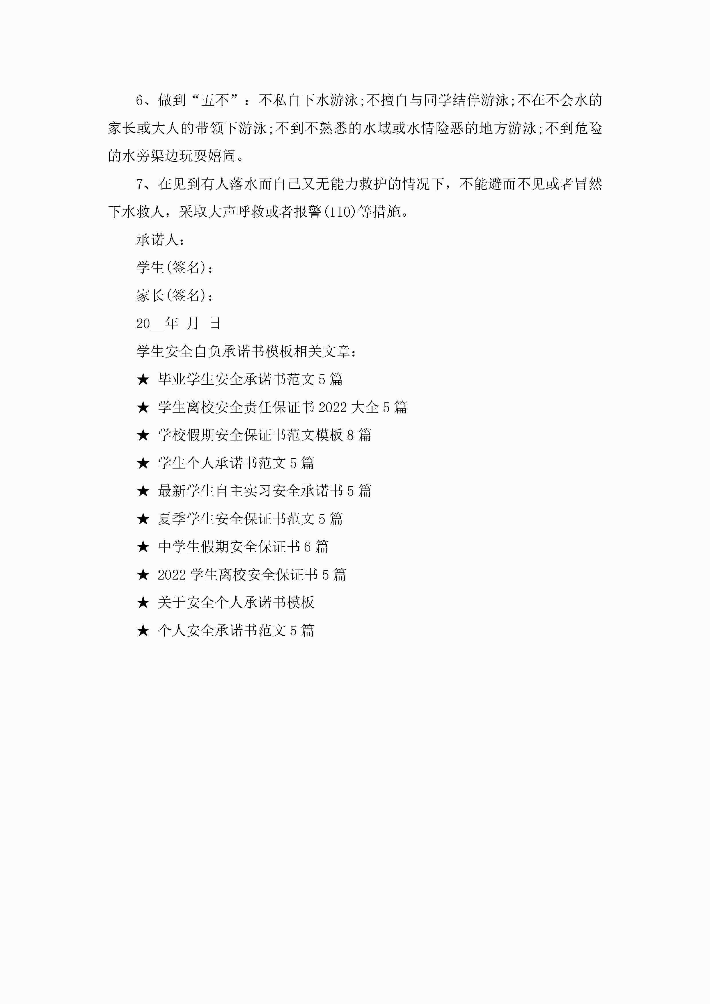 学生安全自负承诺书模板5篇jugei3月22日 16:22发布关注204 学生安全自负承诺书模板5篇此内容为付费资源,请付费后查看¥10.9 单篇文档限时特惠¥15个人会员开通企业会员开通立即下载无需登陆!可直接快捷下载单个模板付费资源© 版权声明THE ENDWord模板# 实用文档# 信函模板# 承诺书# 学生安全自负承诺书模板 如有问题,可点击最底部“联系我们”联系客服 分享QQ空间微博QQ好友海报分享复制链接收藏