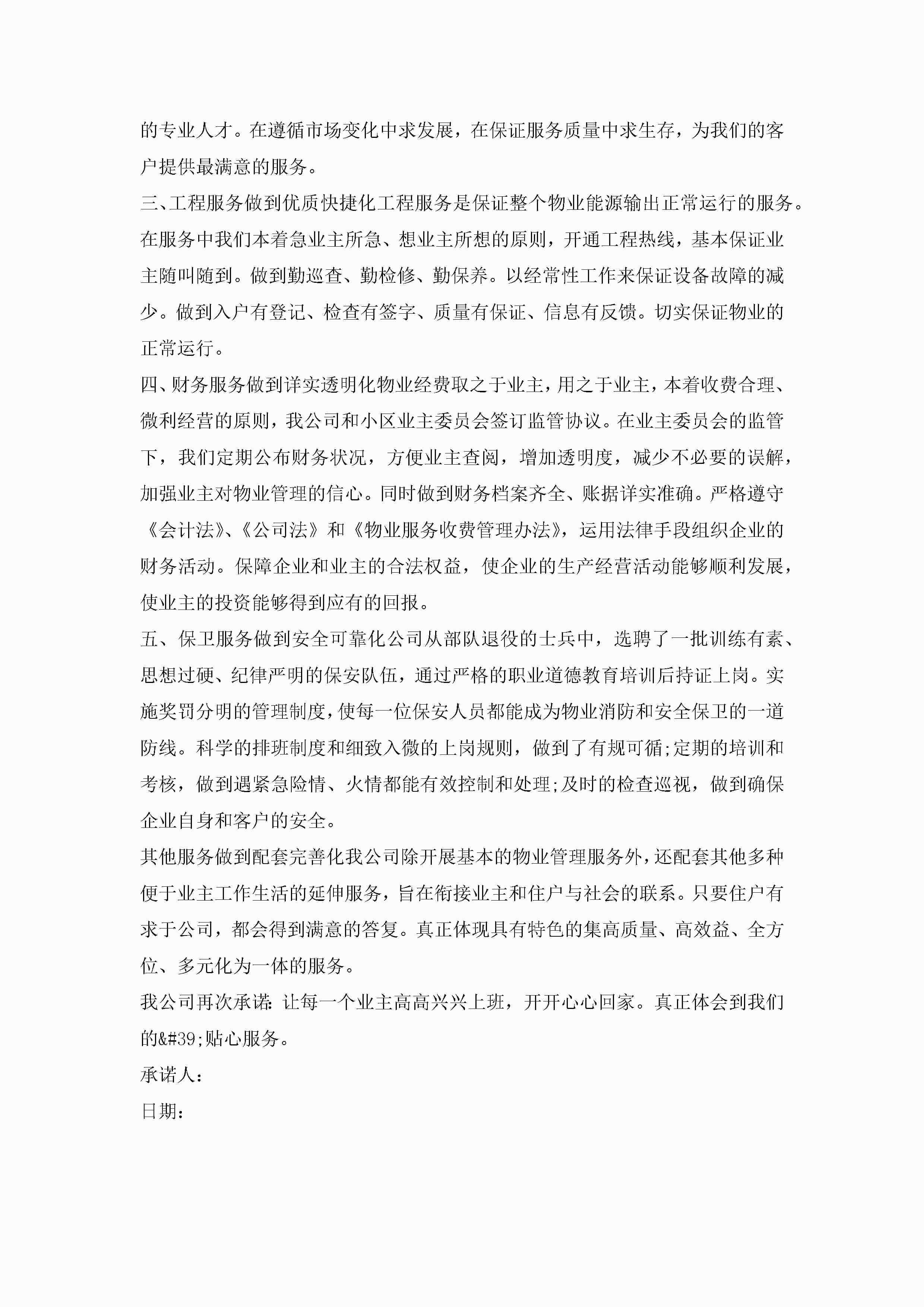 物业承诺书范文10篇精选jugei3月22日 16:22发布关注203 物业承诺书范文10篇精选此内容为付费资源,请付费后查看¥10.9 单篇文档限时特惠¥15个人会员开通企业会员开通立即下载无需登陆!可直接快捷下载单个模板付费资源© 版权声明THE ENDWord模板# 实用文档# 实用模板# 信函模板# 承诺书 如有问题,可点击最底部“联系我们”联系客服 分享QQ空间微博QQ好友海报分享复制链接收藏