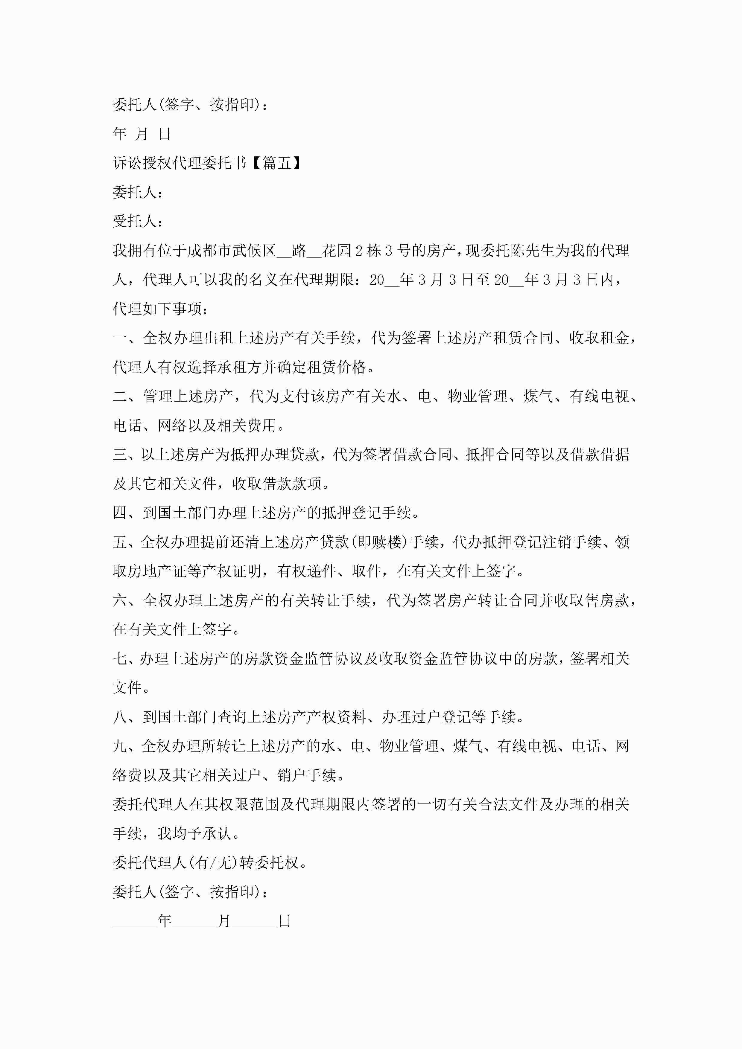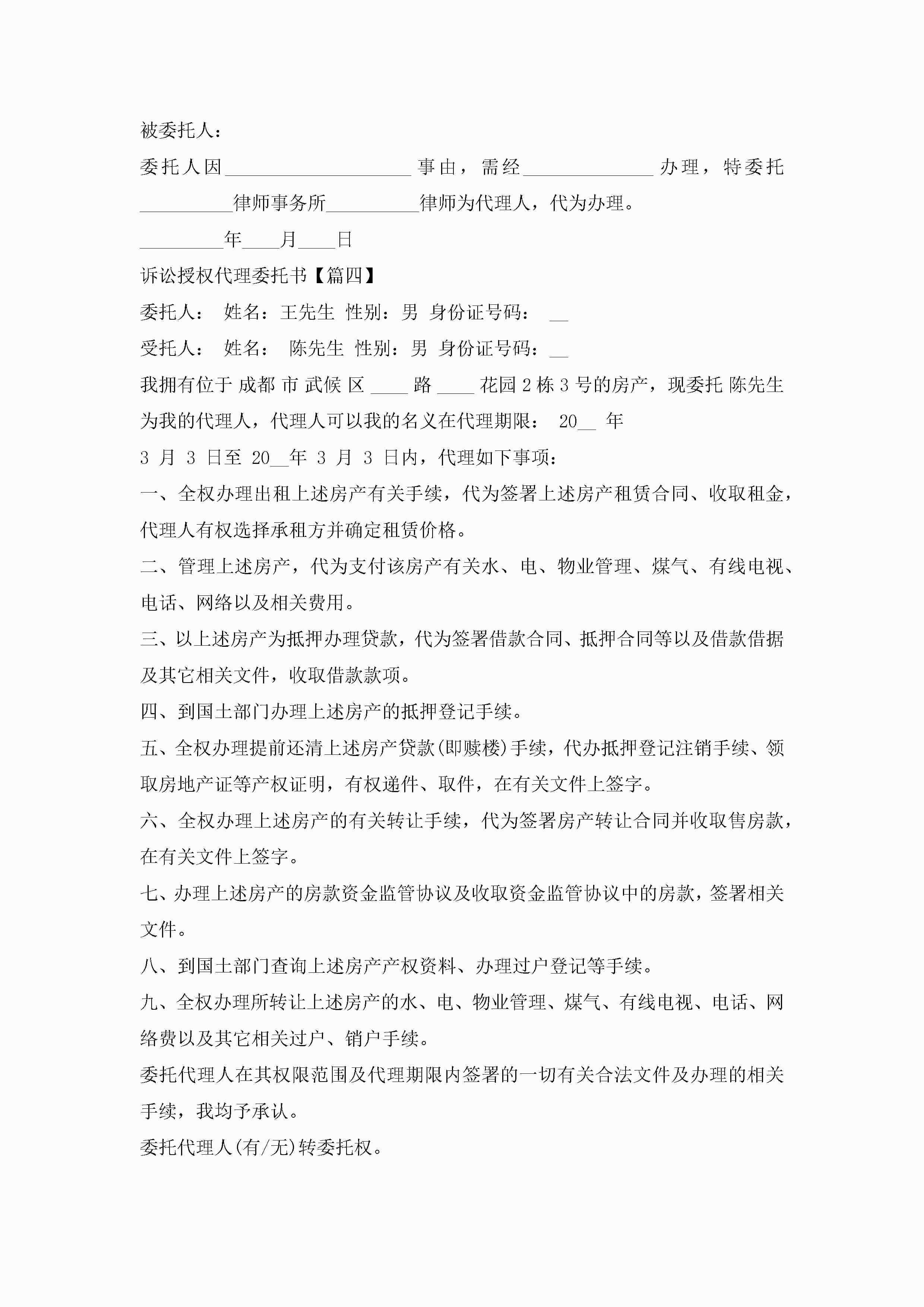 诉讼授权代理委托书范本jugei3月22日 16:22发布关注290 诉讼授权代理委托书范本此内容为付费资源,请付费后查看¥10.9 单篇文档限时特惠¥15个人会员开通企业会员开通立即下载无需登陆!可直接快捷下载单个模板付费资源© 版权声明THE ENDWord模板# 实用文档# 实用模板# 信函模板# 委托书 如有问题,可点击最底部“联系我们”联系客服 分享QQ空间微博QQ好友海报分享复制链接收藏
