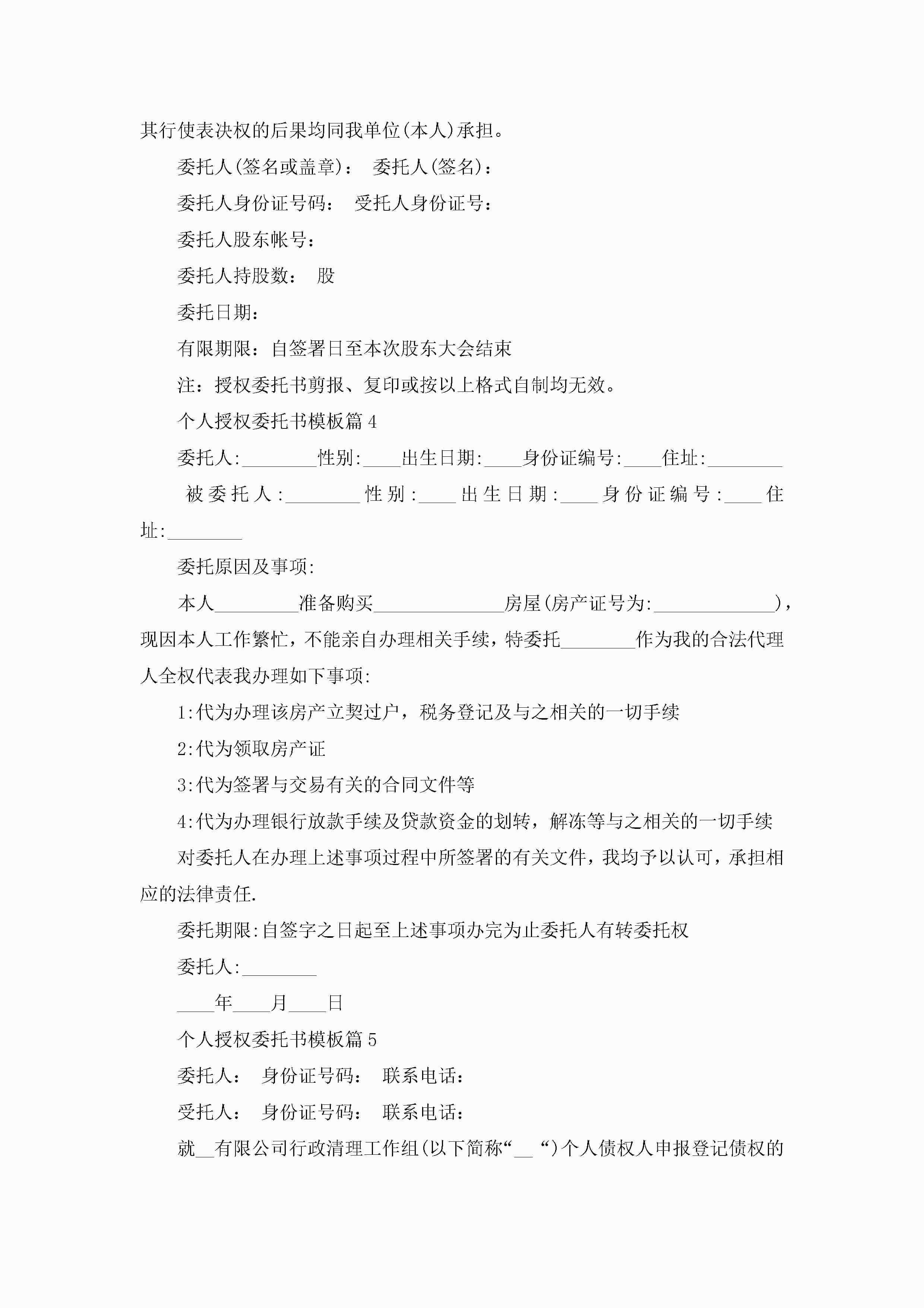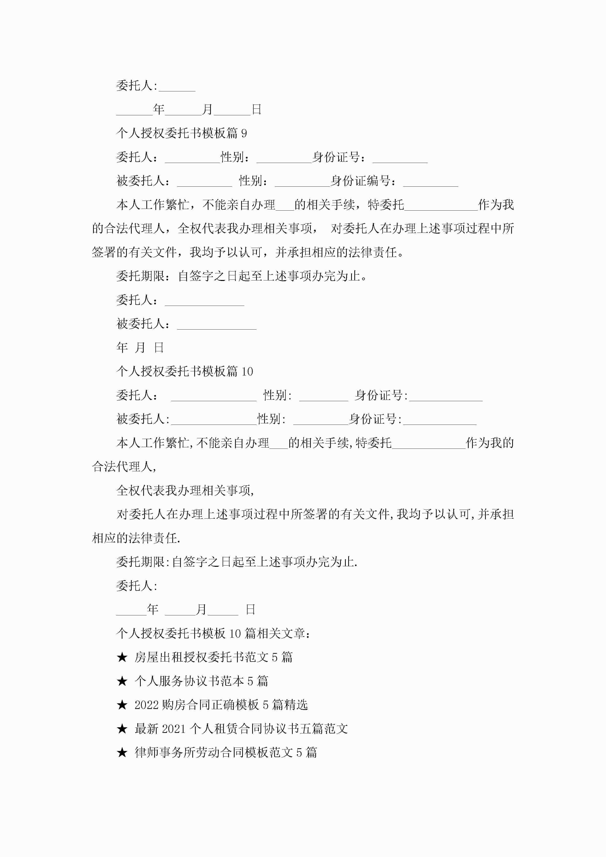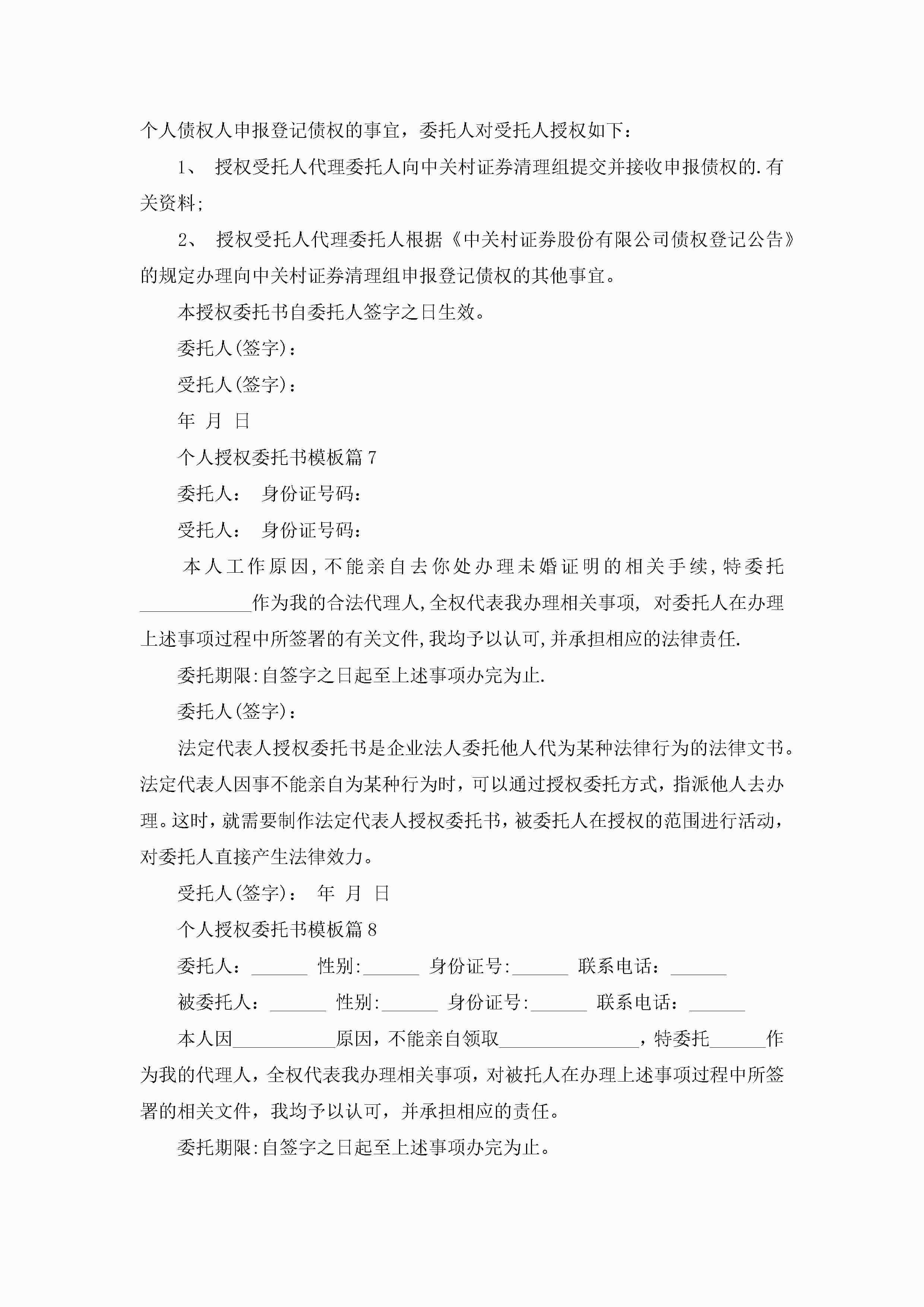 个人授权委托书模板10篇精选jugei3月22日 16:22发布关注246 个人授权委托书模板10篇精选此内容为付费资源,请付费后查看¥10.9 单篇文档限时特惠¥15个人会员开通企业会员开通立即下载无需登陆!可直接快捷下载单个模板付费资源© 版权声明THE ENDWord模板# 实用文档# 实用模板# 信函模板# 委托书 如有问题,可点击最底部“联系我们”联系客服 分享QQ空间微博QQ好友海报分享复制链接收藏