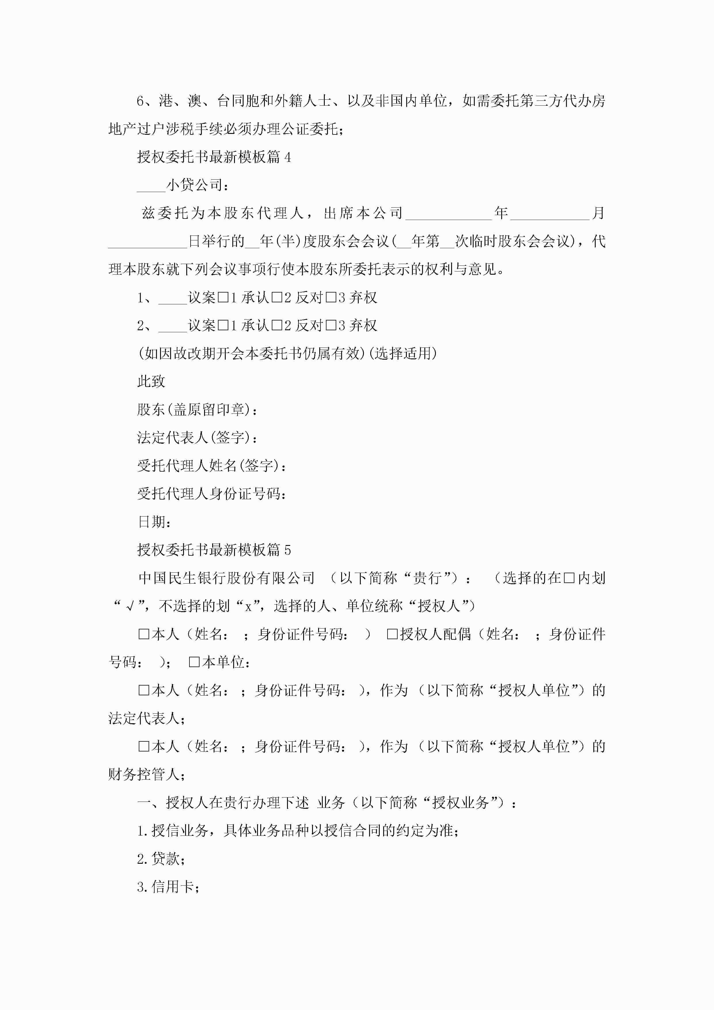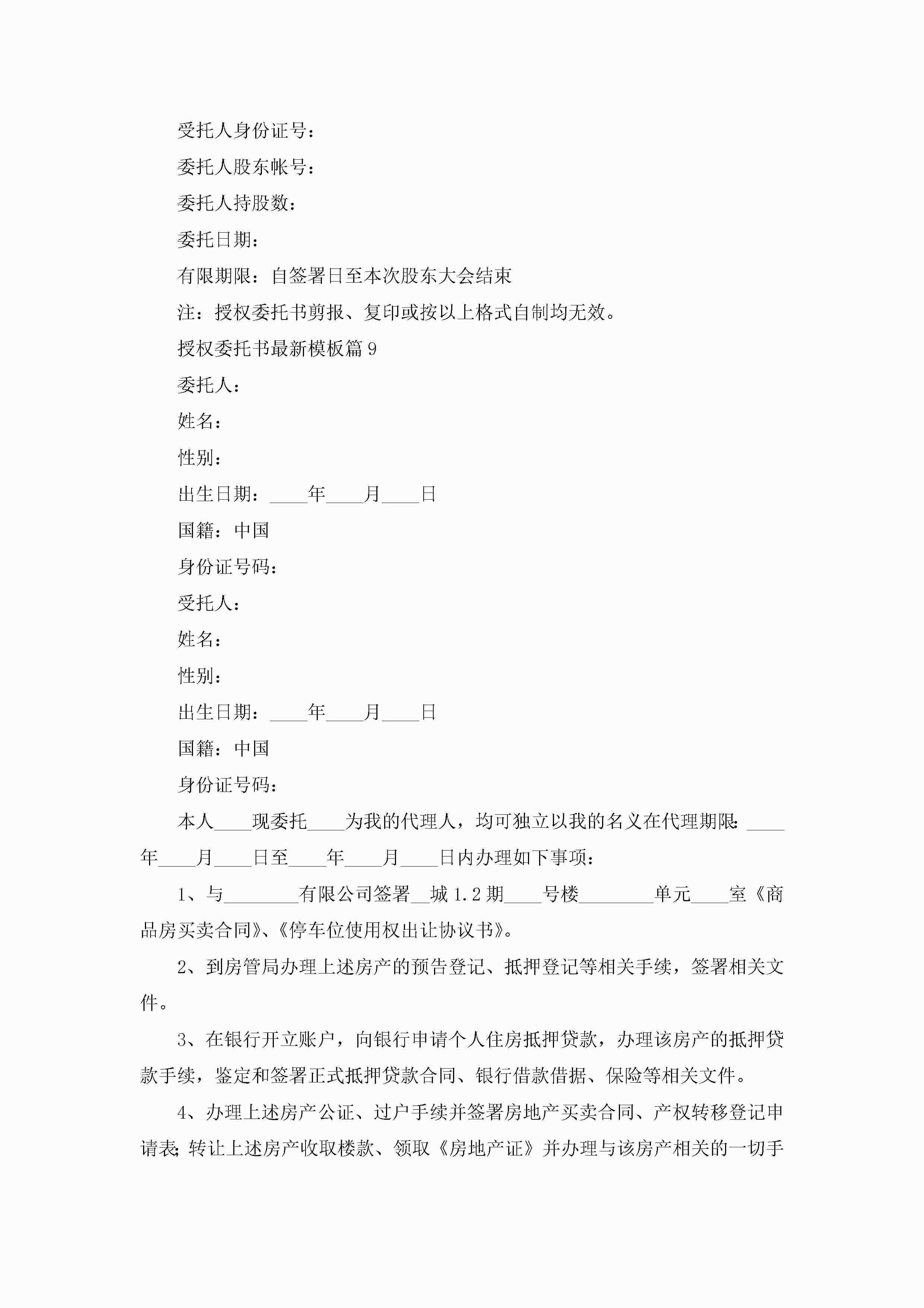 授权委托书最新模板(精选10篇)jugei3月22日 16:23发布关注344 授权委托书最新模板(精选10篇)此内容为付费资源,请付费后查看¥10.9 单篇文档限时特惠¥15个人会员开通企业会员开通立即下载无需登陆!可直接快捷下载单个模板付费资源© 版权声明THE ENDWord模板# 实用文档# 实用模板# 信函模板# 委托书 如有问题,可点击最底部“联系我们”联系客服 分享QQ空间微博QQ好友海报分享复制链接收藏
