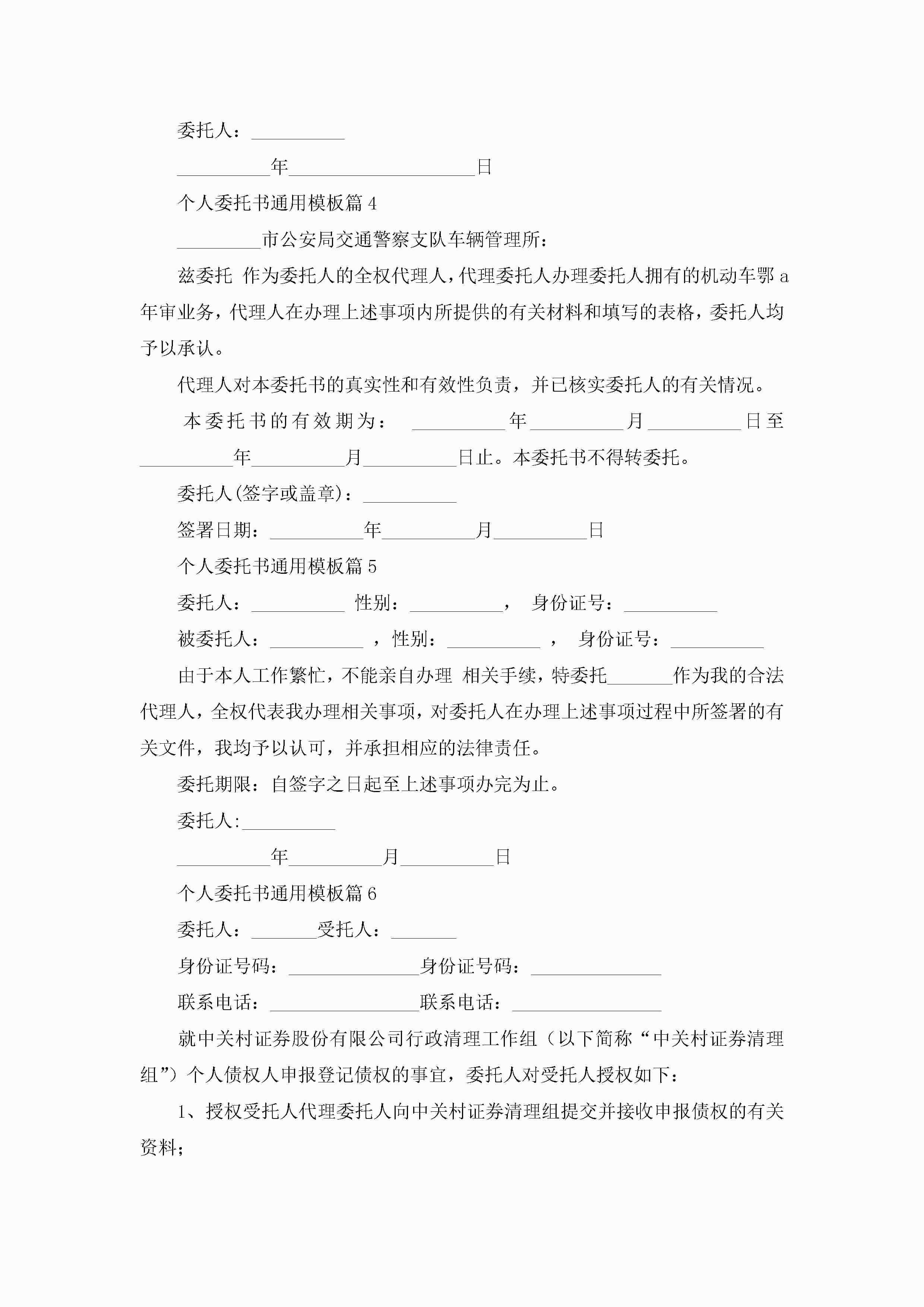 个人委托书通用模板(精选10篇)jugei3月22日 16:23发布关注347 个人委托书通用模板(精选10篇)此内容为付费资源,请付费后查看¥10.9 单篇文档限时特惠¥15个人会员开通企业会员开通立即下载无需登陆!可直接快捷下载单个模板付费资源© 版权声明THE ENDWord模板# 实用文档# 实用模板# 信函模板# 委托书 如有问题,可点击最底部“联系我们”联系客服 分享QQ空间微博QQ好友海报分享复制链接收藏