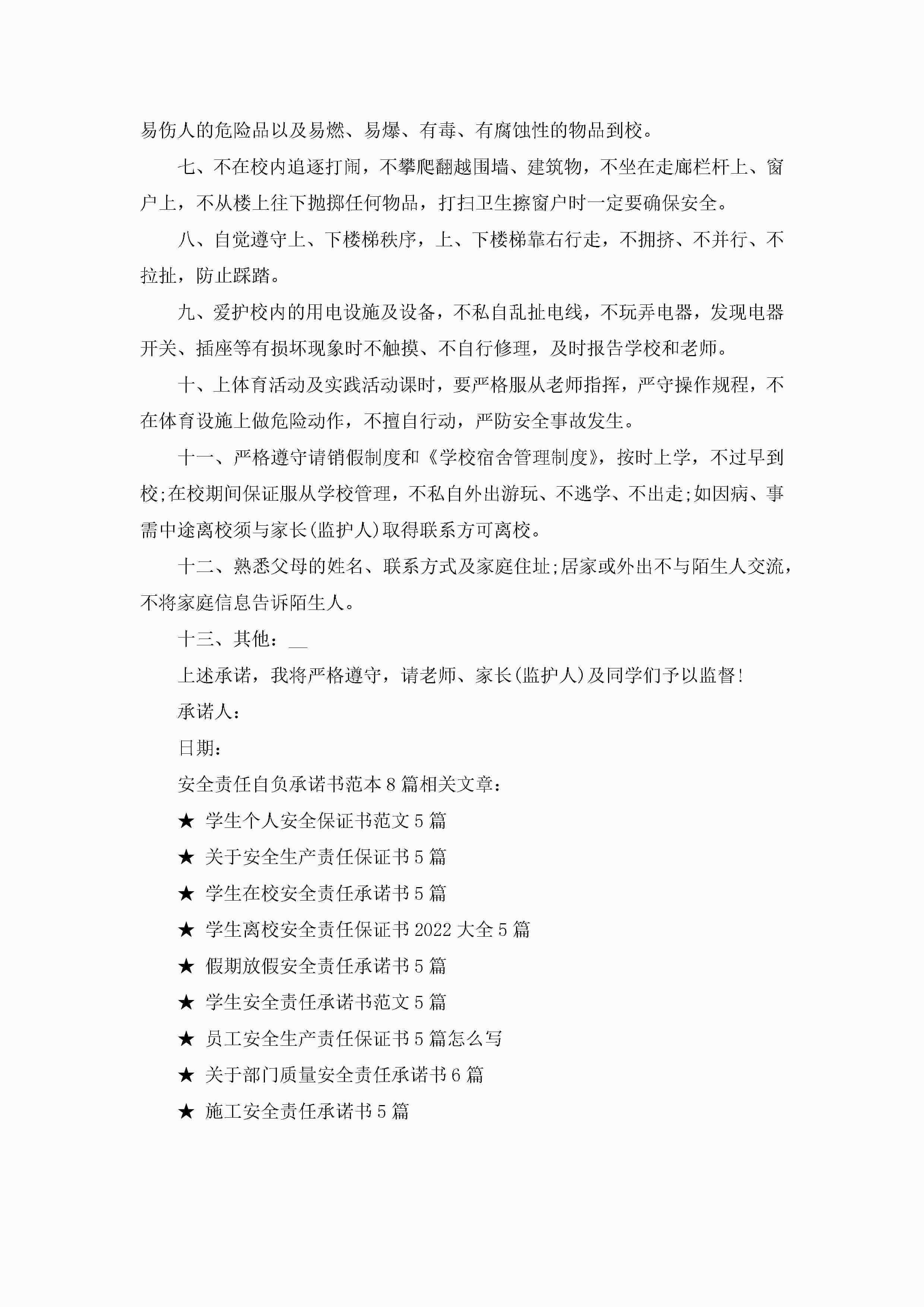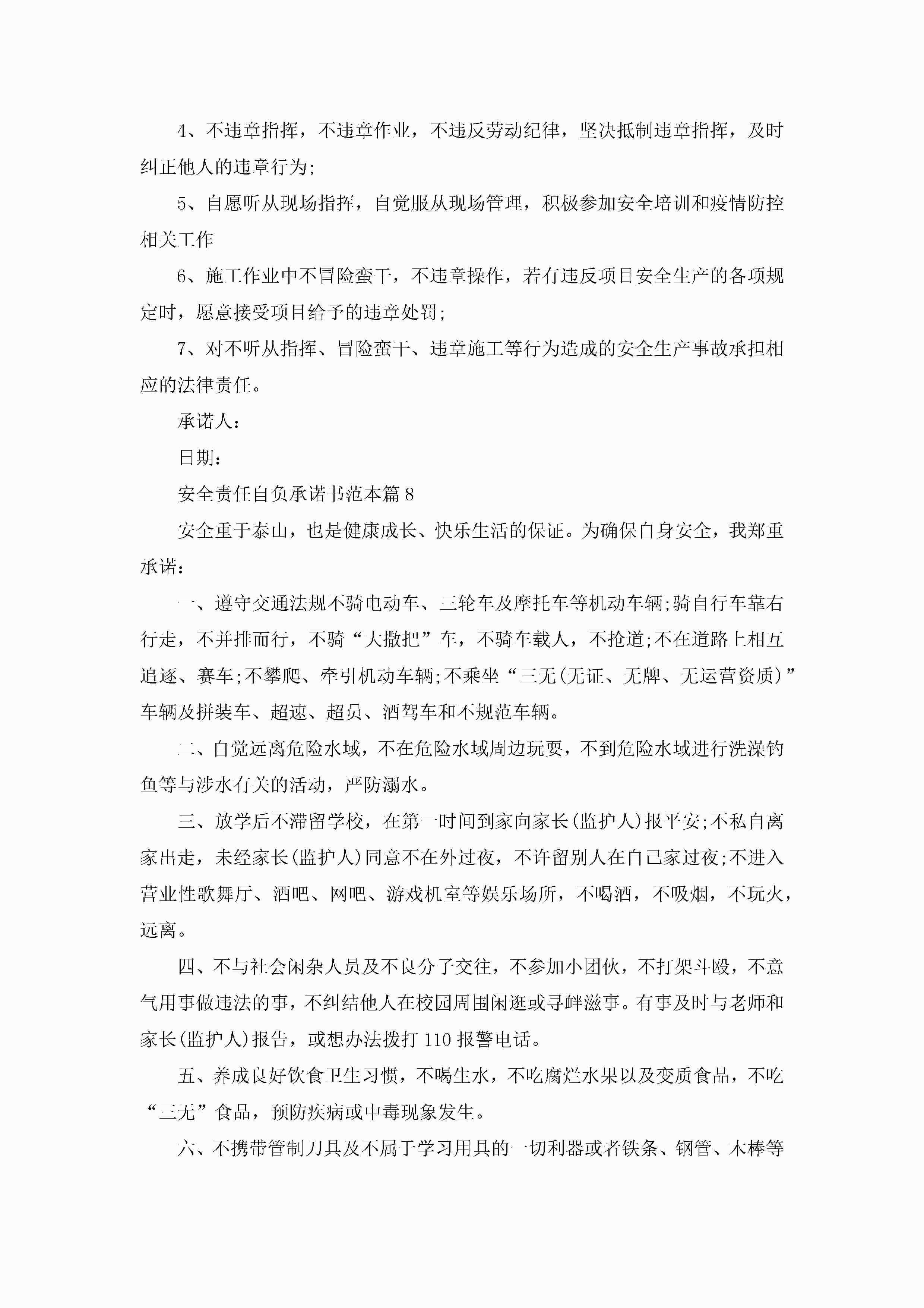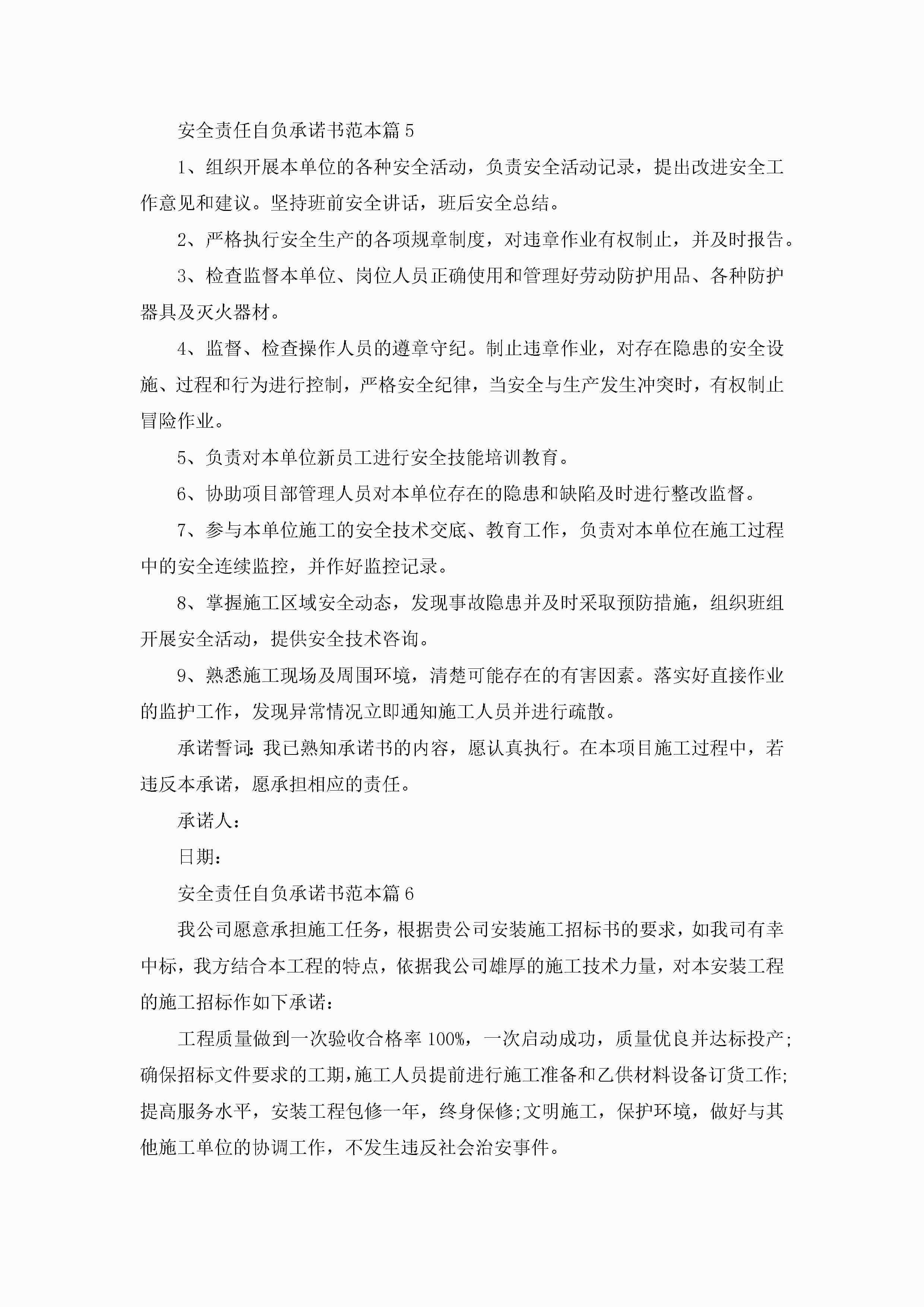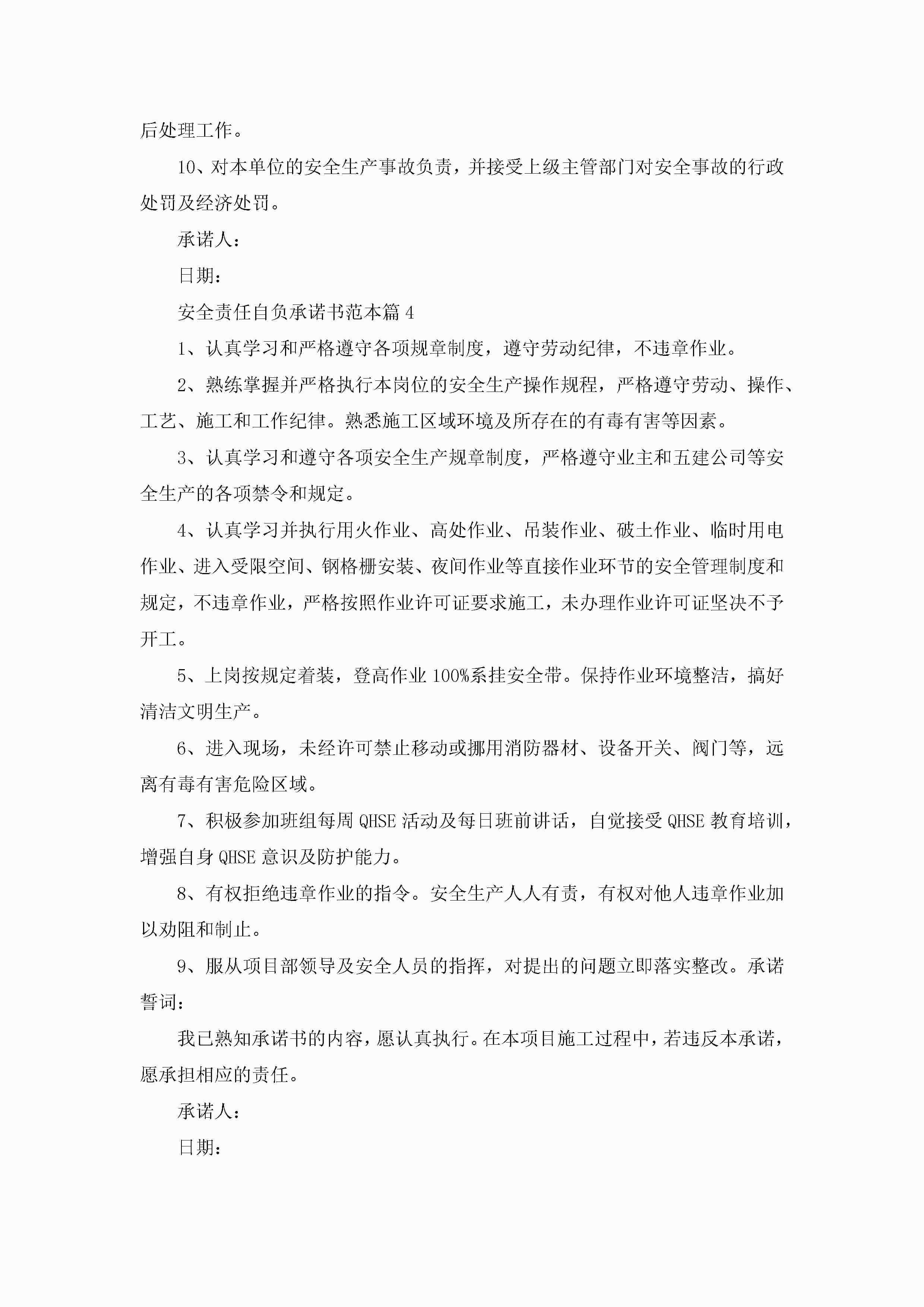 关于安全责任自负承诺书范本8篇jugei3月22日 16:23发布关注201 关于安全责任自负承诺书范本8篇此内容为付费资源,请付费后查看¥10.9 单篇文档限时特惠¥15个人会员开通企业会员开通立即下载无需登陆!可直接快捷下载单个模板付费资源© 版权声明THE ENDWord模板# 实用文档# 信函模板# 承诺书# 安全责任自负承诺书范本8篇 如有问题,可点击最底部“联系我们”联系客服 分享QQ空间微博QQ好友海报分享复制链接收藏