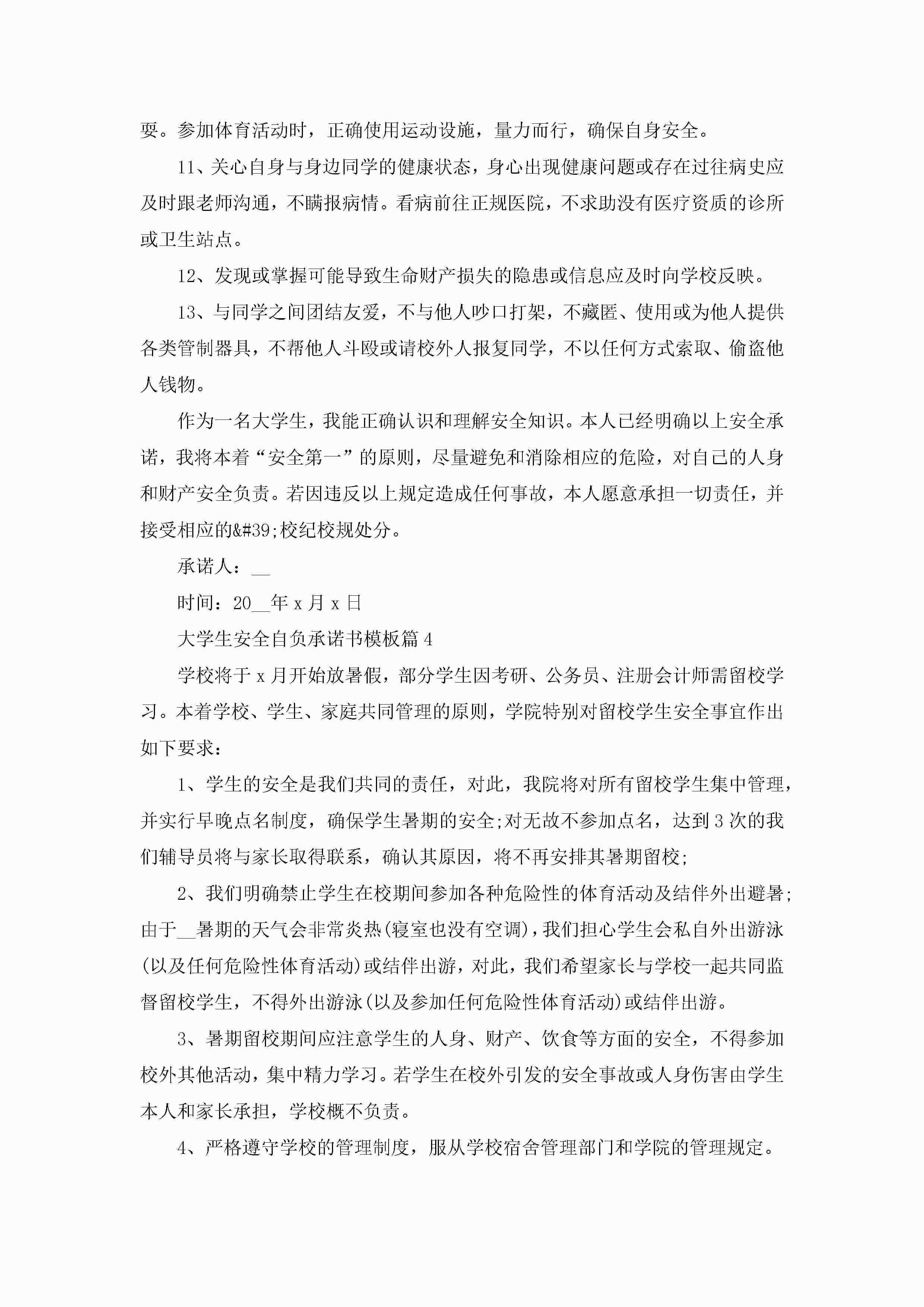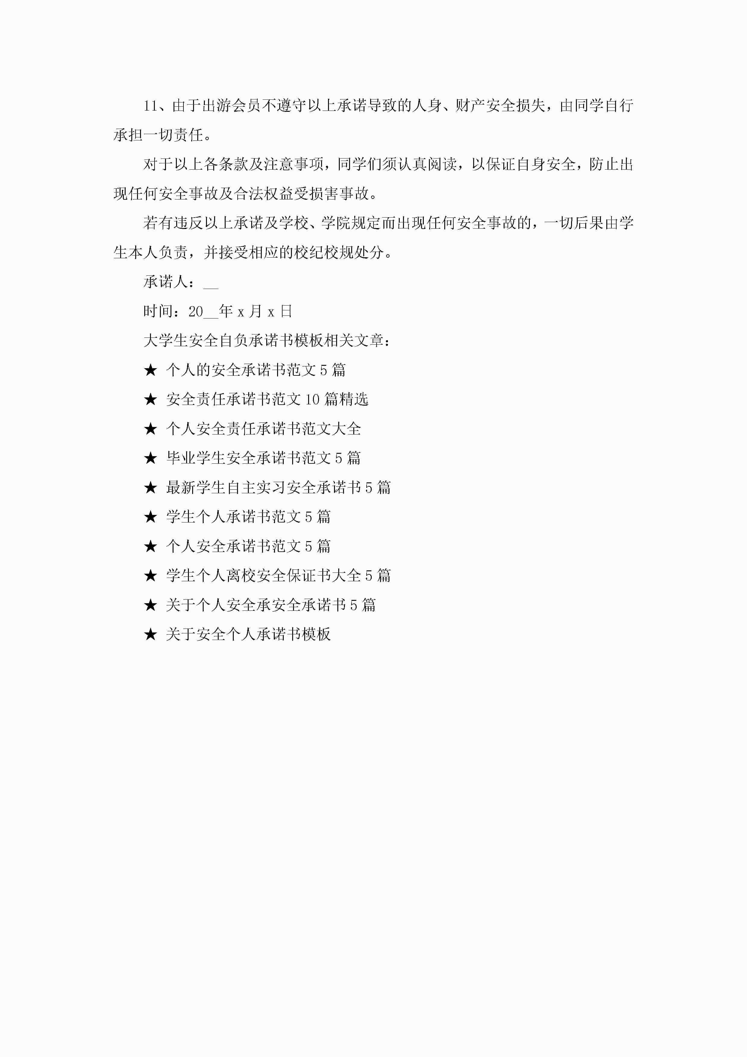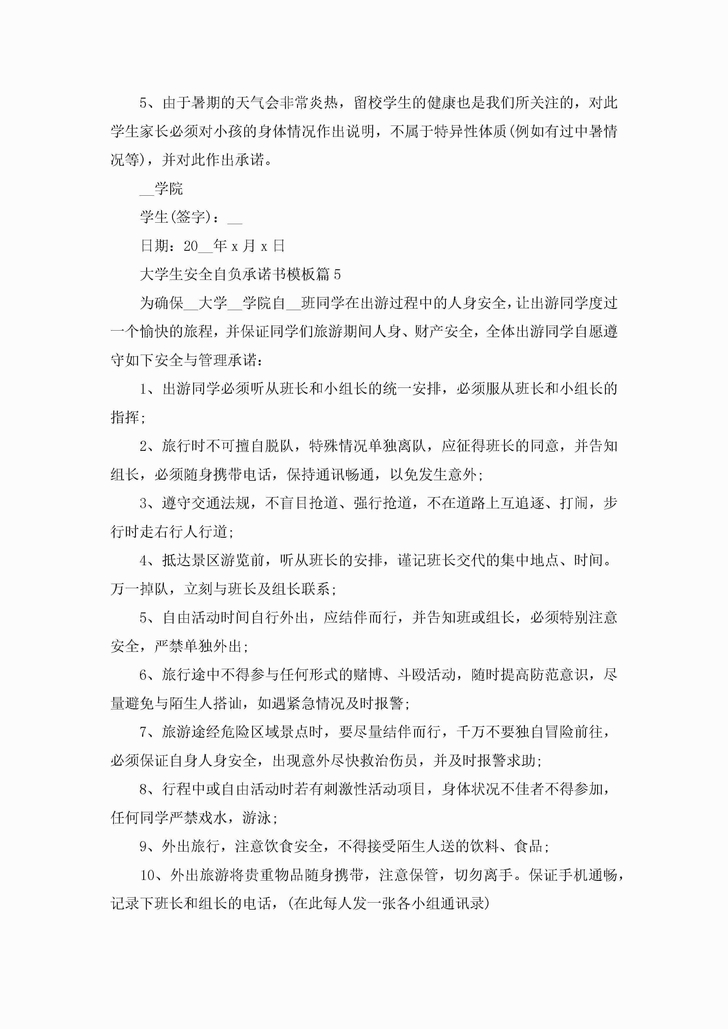 大学生安全自负承诺书模板5篇jugei3月22日 16:23发布关注283 大学生安全自负承诺书模板5篇此内容为付费资源,请付费后查看¥10.9 单篇文档限时特惠¥15个人会员开通企业会员开通立即下载无需登陆!可直接快捷下载单个模板付费资源© 版权声明THE ENDWord模板# 实用文档# 信函模板# 承诺书# 大学生安全自负承诺书模板 如有问题,可点击最底部“联系我们”联系客服 分享QQ空间微博QQ好友海报分享复制链接收藏