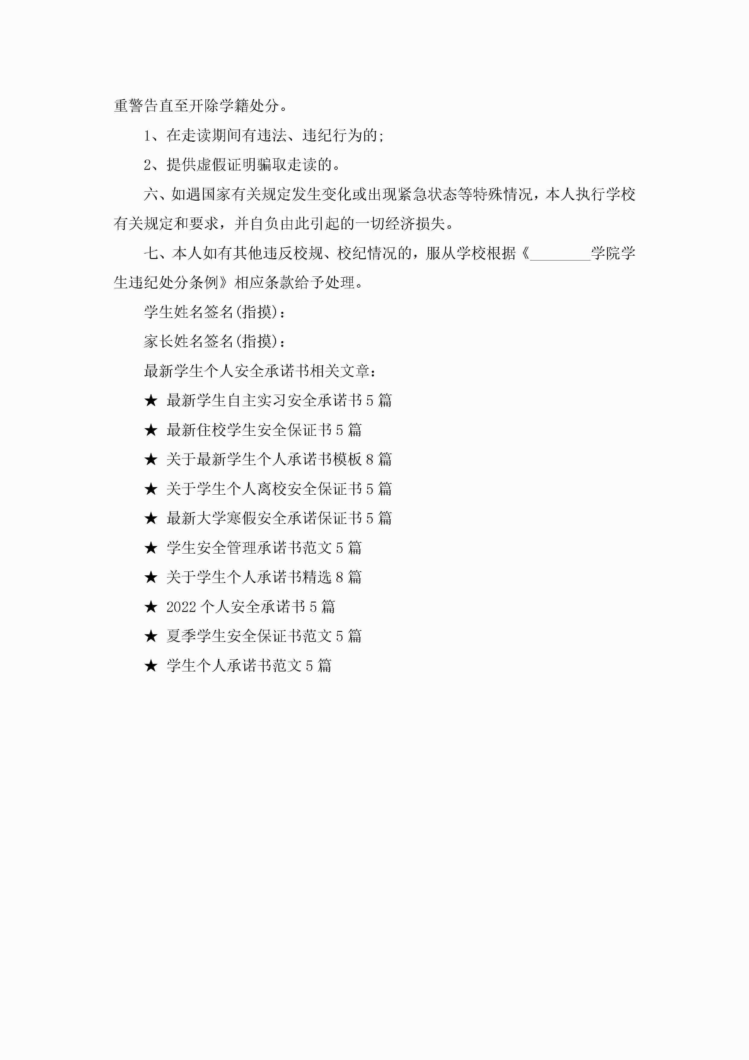 最新学生个人安全承诺书5篇jugei3月22日 16:23发布关注245 最新学生个人安全承诺书5篇此内容为付费资源,请付费后查看¥10.9 单篇文档限时特惠¥15个人会员开通企业会员开通立即下载无需登陆!可直接快捷下载单个模板付费资源© 版权声明THE ENDWord模板# 实用文档# 信函模板# 承诺书# 最新学生个人安全承诺书 如有问题,可点击最底部“联系我们”联系客服 分享QQ空间微博QQ好友海报分享复制链接收藏