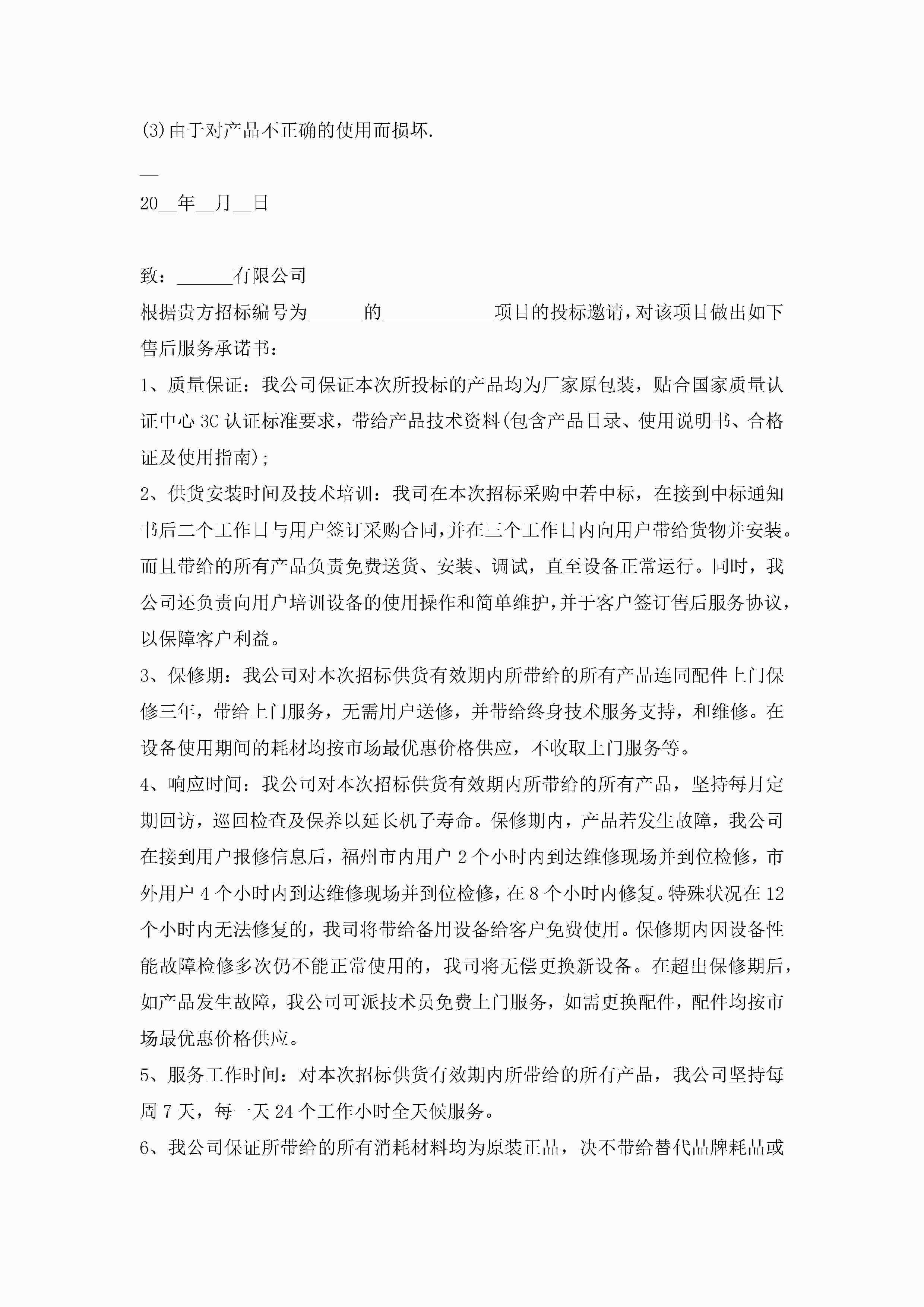 售后承诺书范文大全10篇精选jugei3月22日 16:23发布关注195 售后承诺书范文大全10篇精选此内容为付费资源,请付费后查看¥10.9 单篇文档限时特惠¥15个人会员开通企业会员开通立即下载无需登陆!可直接快捷下载单个模板付费资源© 版权声明THE ENDWord模板# 实用文档# 实用模板# 信函模板# 承诺书 如有问题,可点击最底部“联系我们”联系客服 分享QQ空间微博QQ好友海报分享复制链接收藏