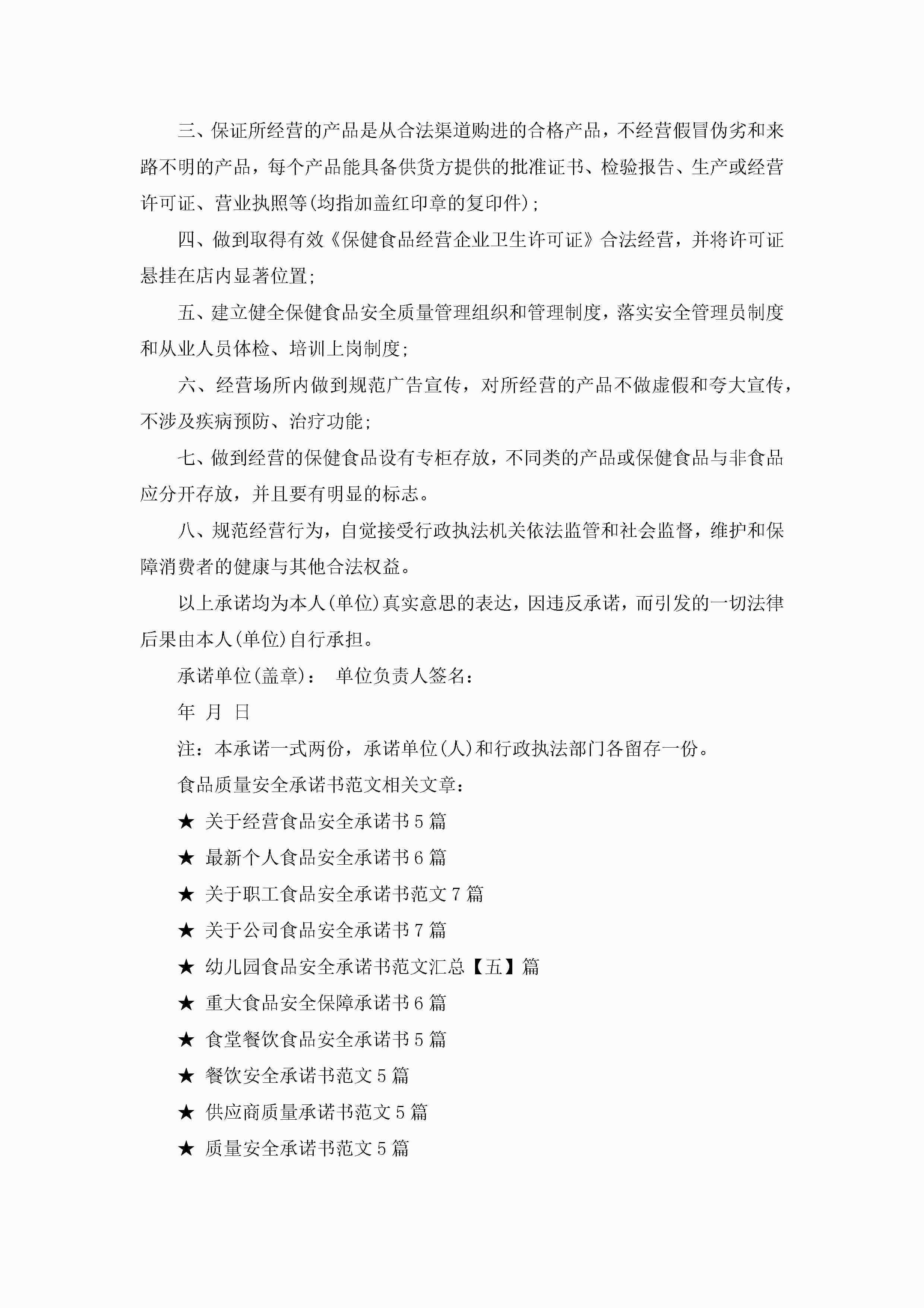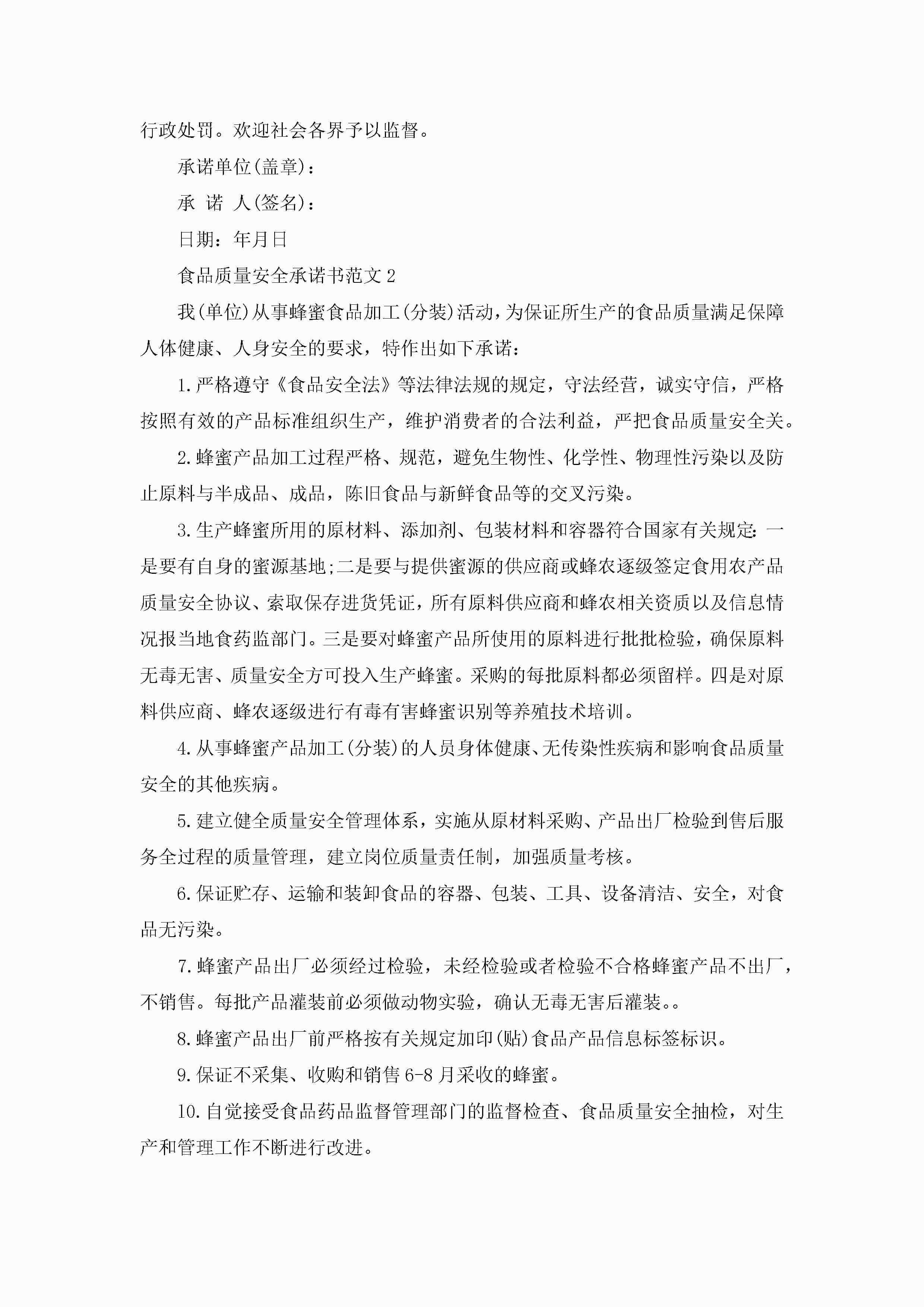 食品质量安全承诺书范文5篇jugei3月22日 16:23发布关注280 食品质量安全承诺书范文5篇此内容为付费资源,请付费后查看¥10.9 单篇文档限时特惠¥15个人会员开通企业会员开通立即下载无需登陆!可直接快捷下载单个模板付费资源© 版权声明THE ENDWord模板# 实用文档# 实用模板# 信函模板# 承诺书 如有问题,可点击最底部“联系我们”联系客服 分享QQ空间微博QQ好友海报分享复制链接收藏