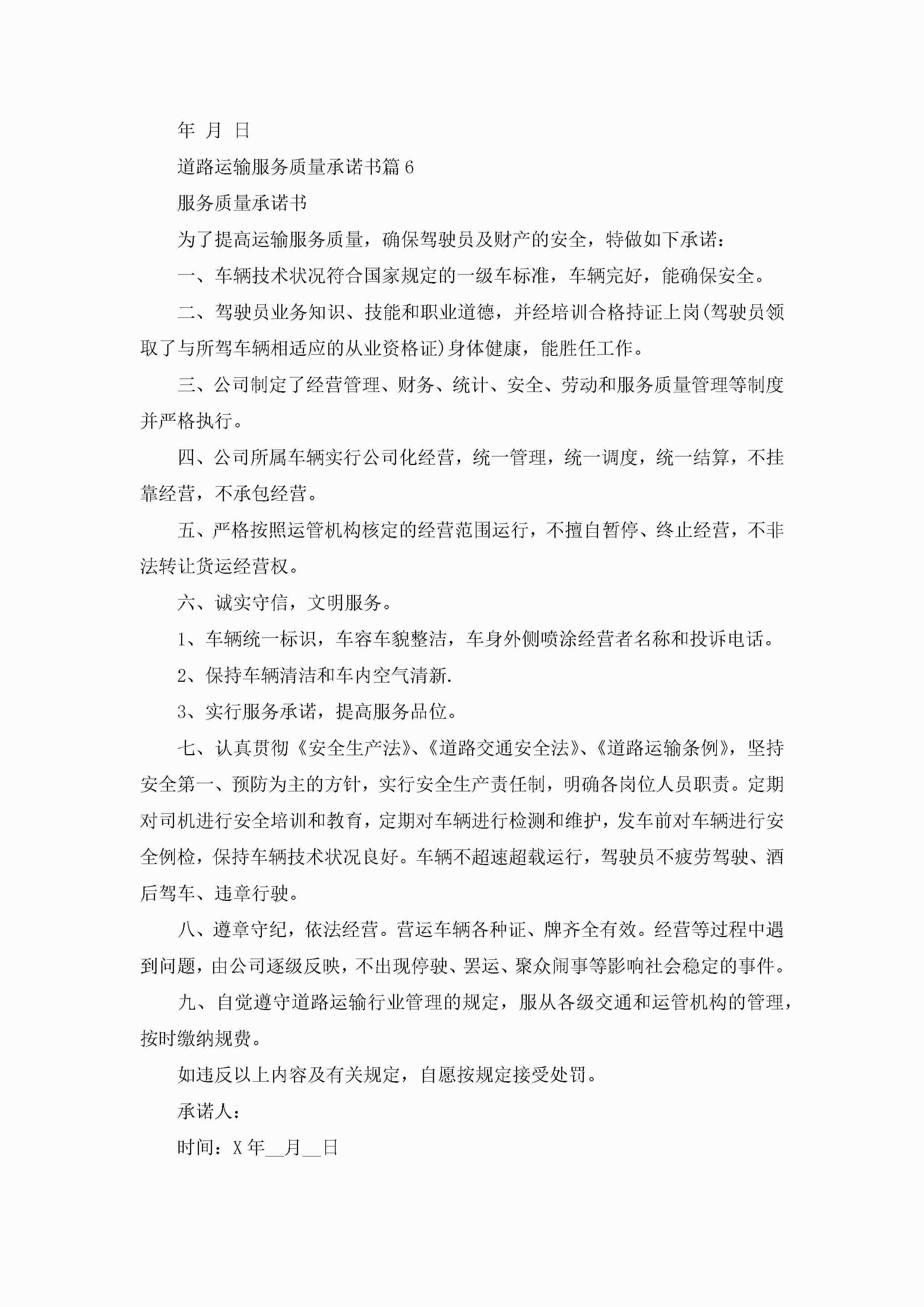 道路运输服务质量承诺书6篇jugei3月22日 16:23发布关注223 道路运输服务质量承诺书6篇此内容为付费资源,请付费后查看¥10.9 单篇文档限时特惠¥15个人会员开通企业会员开通立即下载无需登陆!可直接快捷下载单个模板付费资源© 版权声明THE ENDWord模板# 实用文档# 实用模板# 信函模板# 承诺书 如有问题,可点击最底部“联系我们”联系客服 分享QQ空间微博QQ好友海报分享复制链接收藏