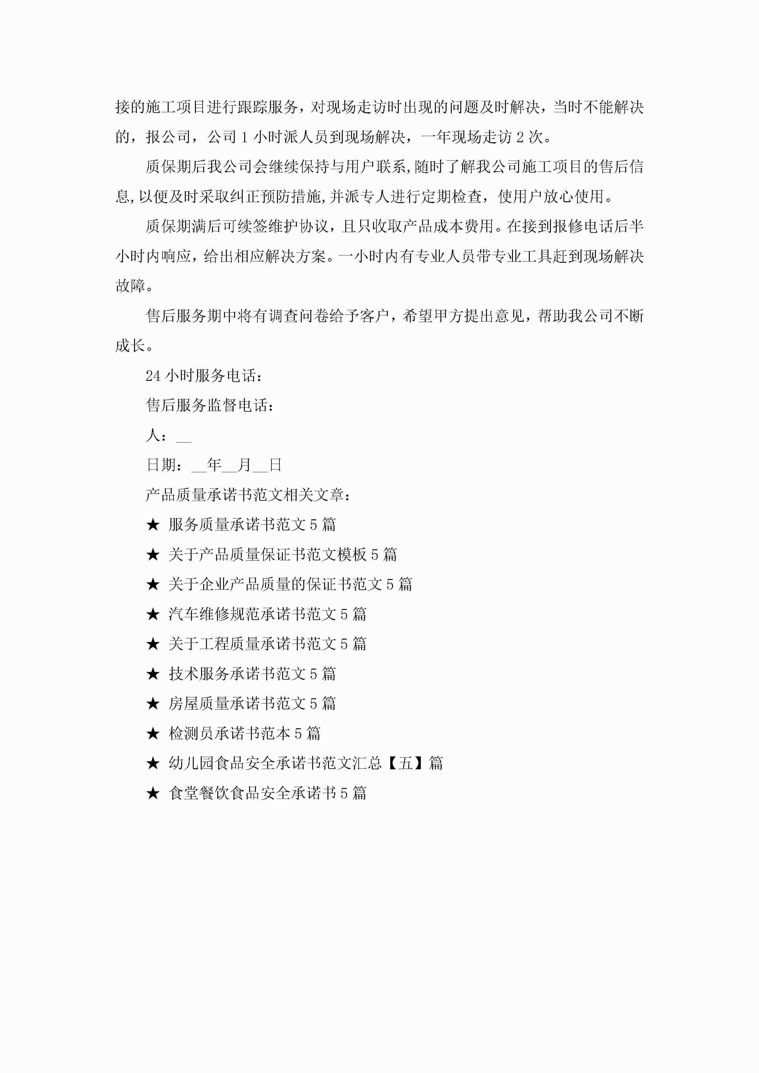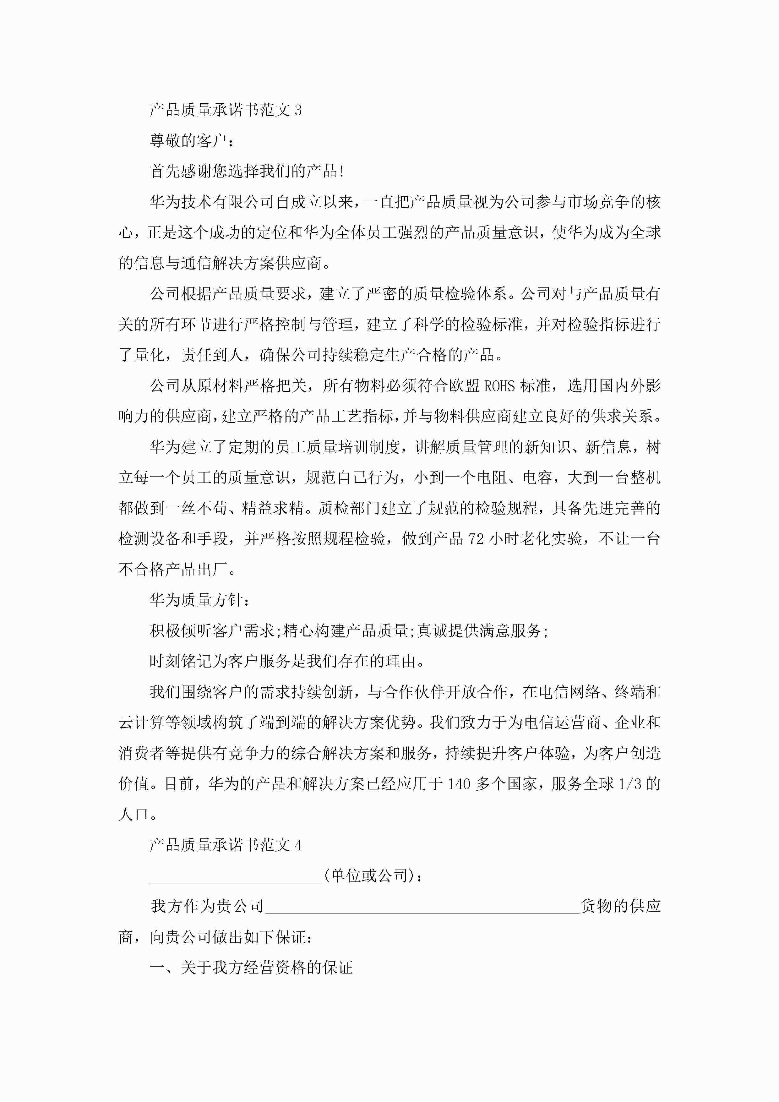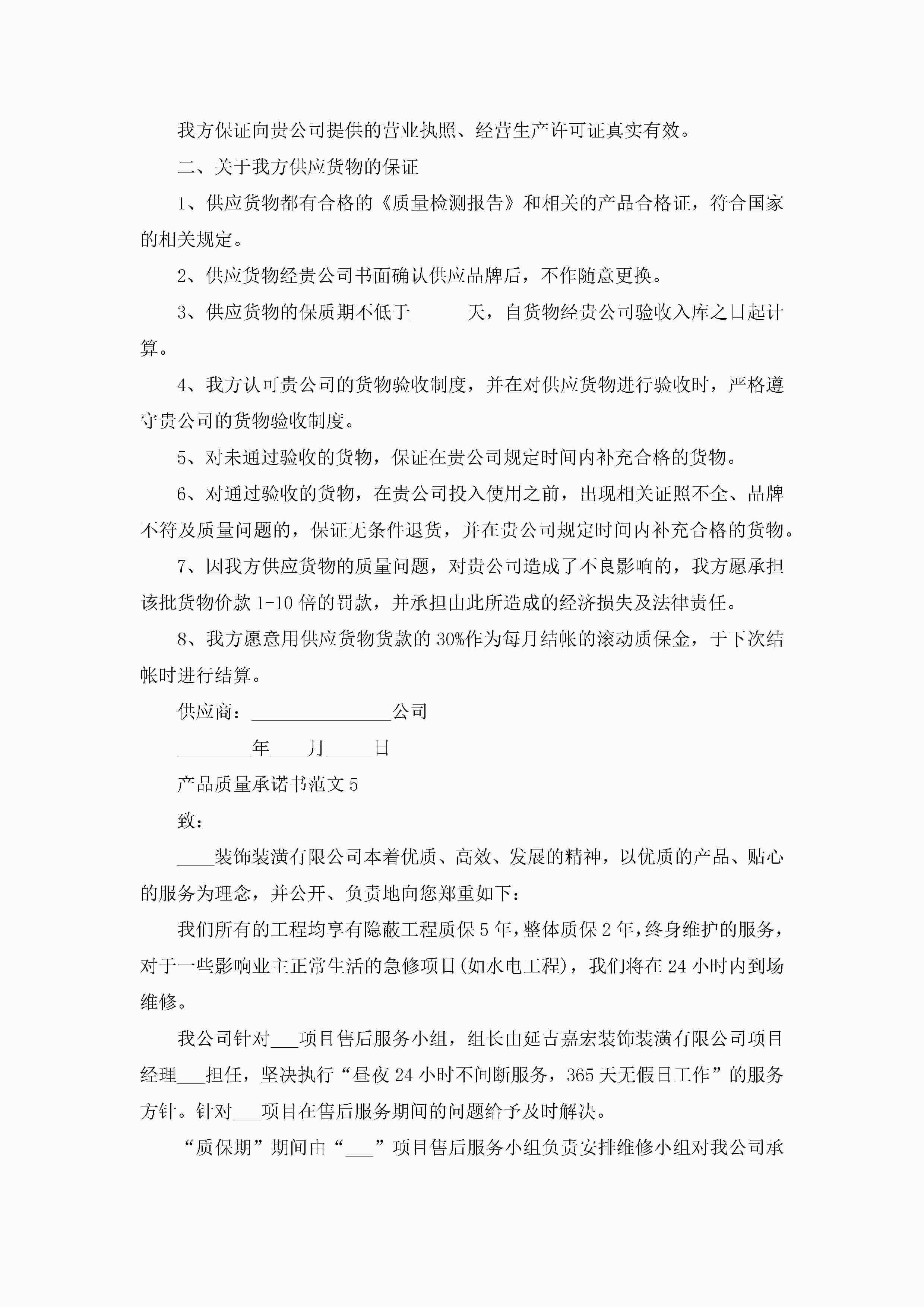 产品质量承诺书范文5篇jugei3月22日 16:23发布关注242 产品质量承诺书范文5篇此内容为付费资源,请付费后查看¥10.9 单篇文档限时特惠¥15个人会员开通企业会员开通立即下载无需登陆!可直接快捷下载单个模板付费资源© 版权声明THE ENDWord模板# 实用文档# 实用模板# 信函模板# 承诺书 如有问题,可点击最底部“联系我们”联系客服 分享QQ空间微博QQ好友海报分享复制链接收藏