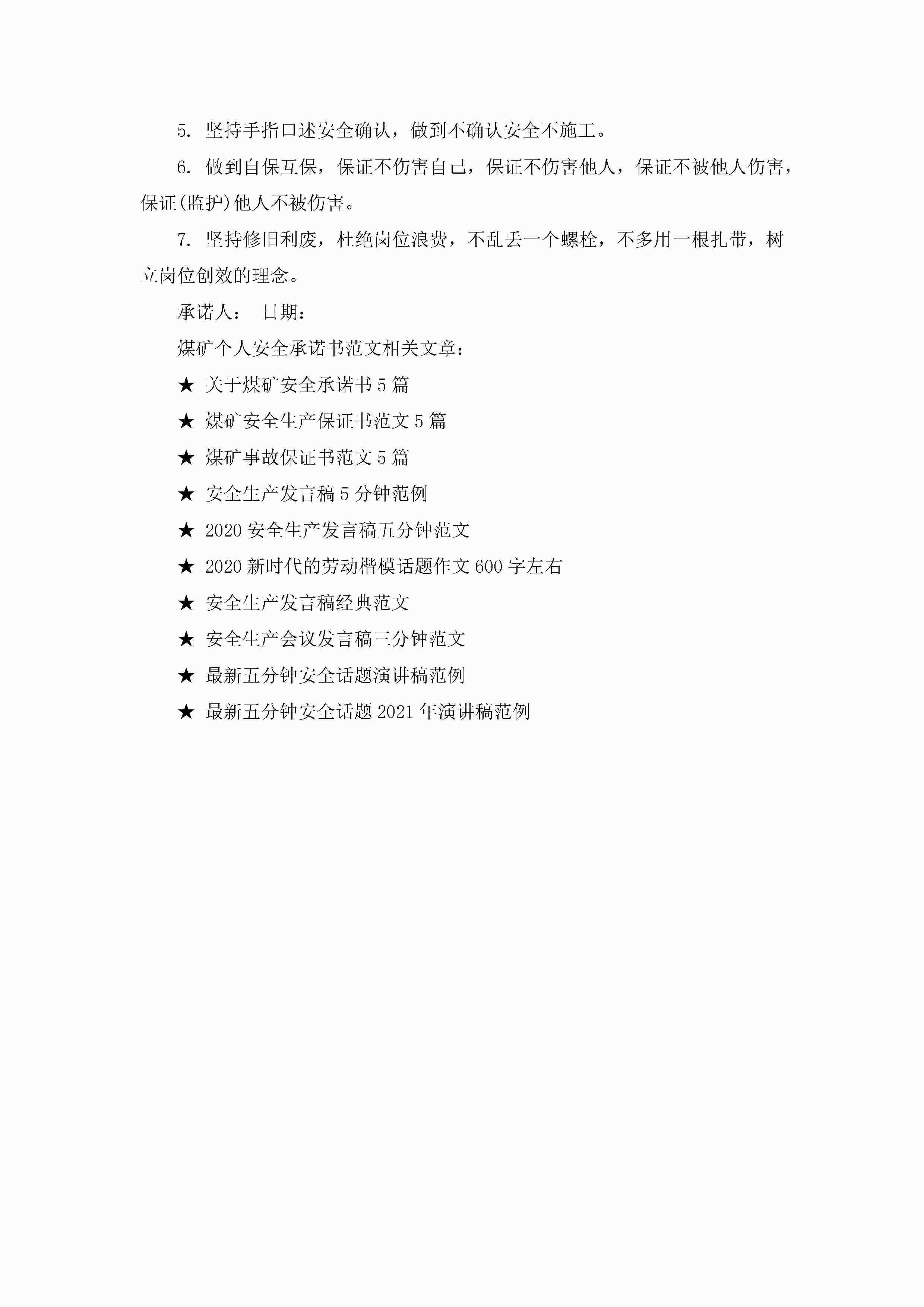 煤矿个人安全承诺书范文5篇jugei3月22日 16:23发布关注220 煤矿个人安全承诺书范文5篇此内容为付费资源,请付费后查看¥10.9 单篇文档限时特惠¥15个人会员开通企业会员开通立即下载无需登陆!可直接快捷下载单个模板付费资源© 版权声明THE ENDWord模板# 实用文档# 实用模板# 信函模板# 承诺书 如有问题,可点击最底部“联系我们”联系客服 分享QQ空间微博QQ好友海报分享复制链接收藏