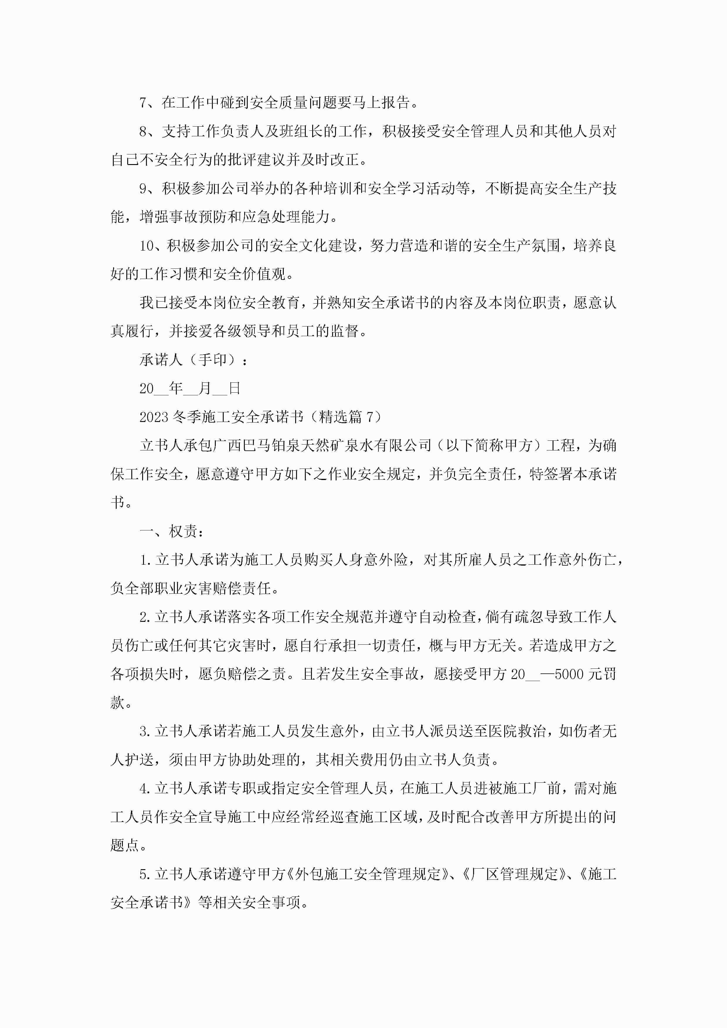 2023冬季施工安全承诺书(通用7篇)jugei3月22日 16:23发布关注233 2023冬季施工安全承诺书(通用7篇)此内容为付费资源,请付费后查看¥10.9 单篇文档限时特惠¥15个人会员开通企业会员开通立即下载无需登陆!可直接快捷下载单个模板付费资源© 版权声明THE ENDWord模板# 实用文档# 实用模板# 信函模板# 承诺书 如有问题,可点击最底部“联系我们”联系客服 分享QQ空间微博QQ好友海报分享复制链接收藏