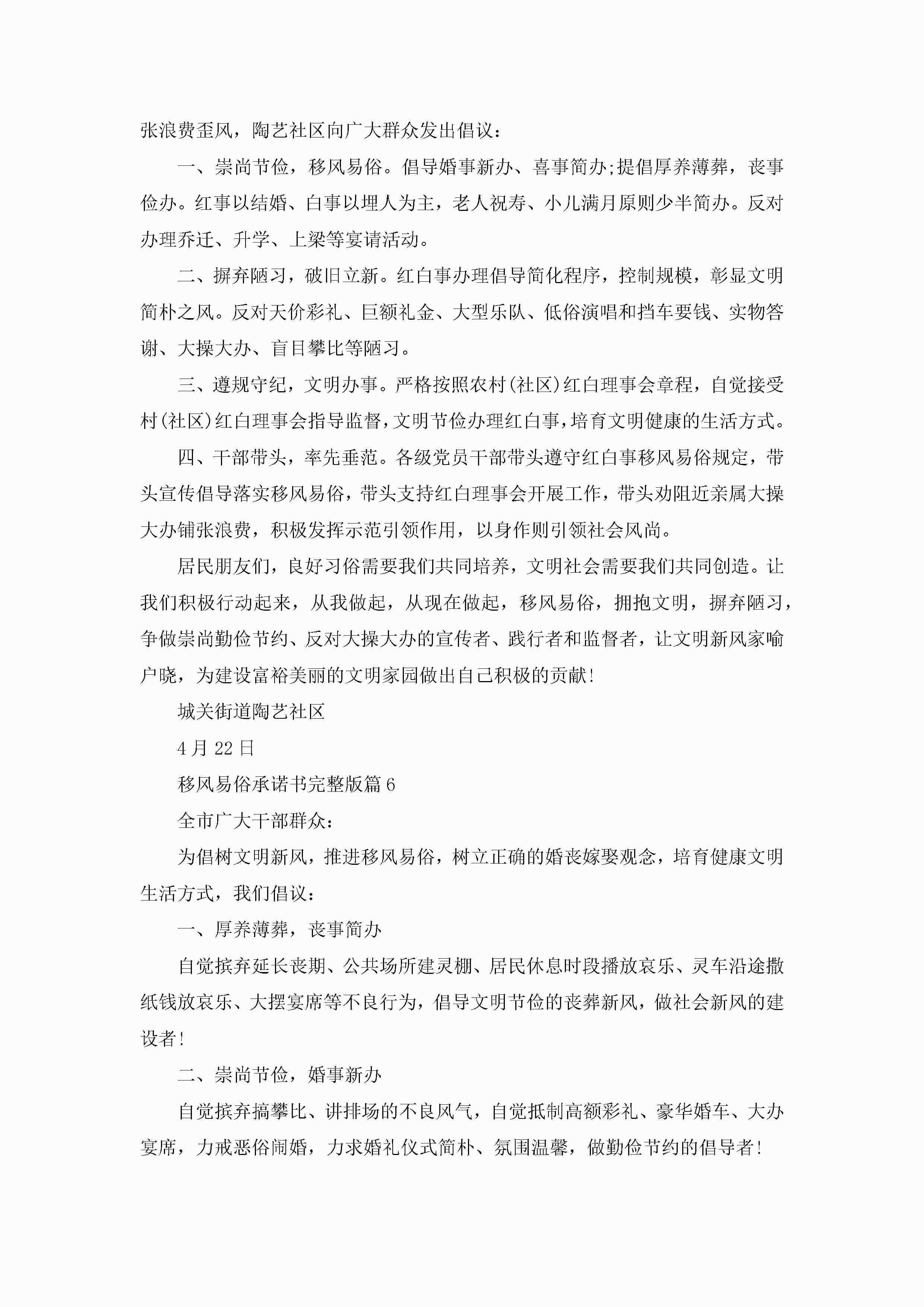 移风易俗承诺书完整版六篇jugei3月22日 16:23发布关注275 移风易俗承诺书完整版六篇此内容为付费资源,请付费后查看¥10.9 单篇文档限时特惠¥15个人会员开通企业会员开通立即下载无需登陆!可直接快捷下载单个模板付费资源© 版权声明THE ENDWord模板# 实用文档# 实用模板# 信函模板# 承诺书# 移风易俗承诺书完整版 如有问题,可点击最底部“联系我们”联系客服 分享QQ空间微博QQ好友海报分享复制链接收藏