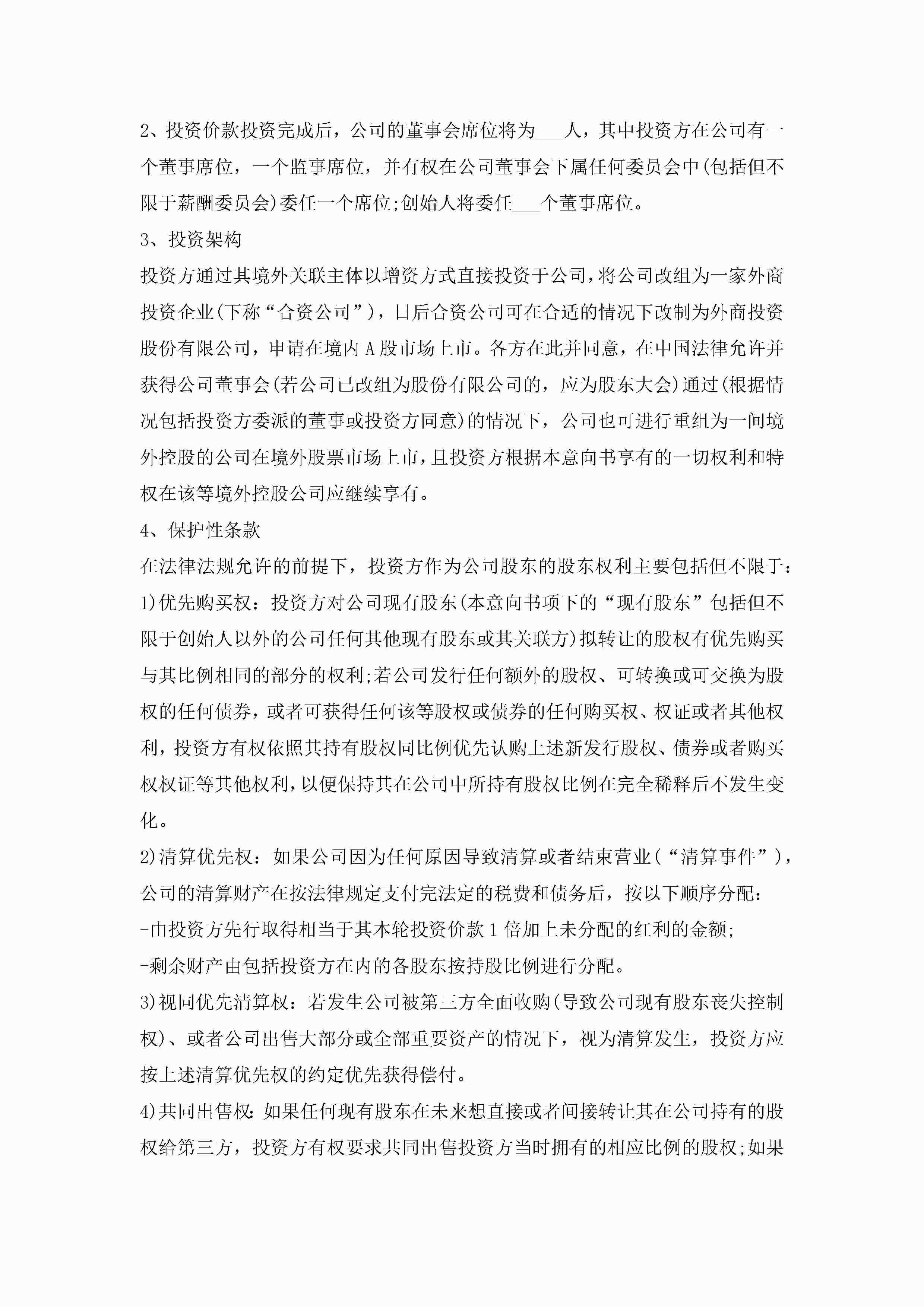 项目投资意向书模板5篇jugei3月22日 16:23发布关注221 项目投资意向书模板5篇此内容为付费资源,请付费后查看¥10.9 单篇文档限时特惠¥15个人会员开通企业会员开通立即下载无需登陆!可直接快捷下载单个模板付费资源© 版权声明THE ENDWord模板# 实用文档# 实用模板# 信函模板# 意向书 如有问题,可点击最底部“联系我们”联系客服 分享QQ空间微博QQ好友海报分享复制链接收藏