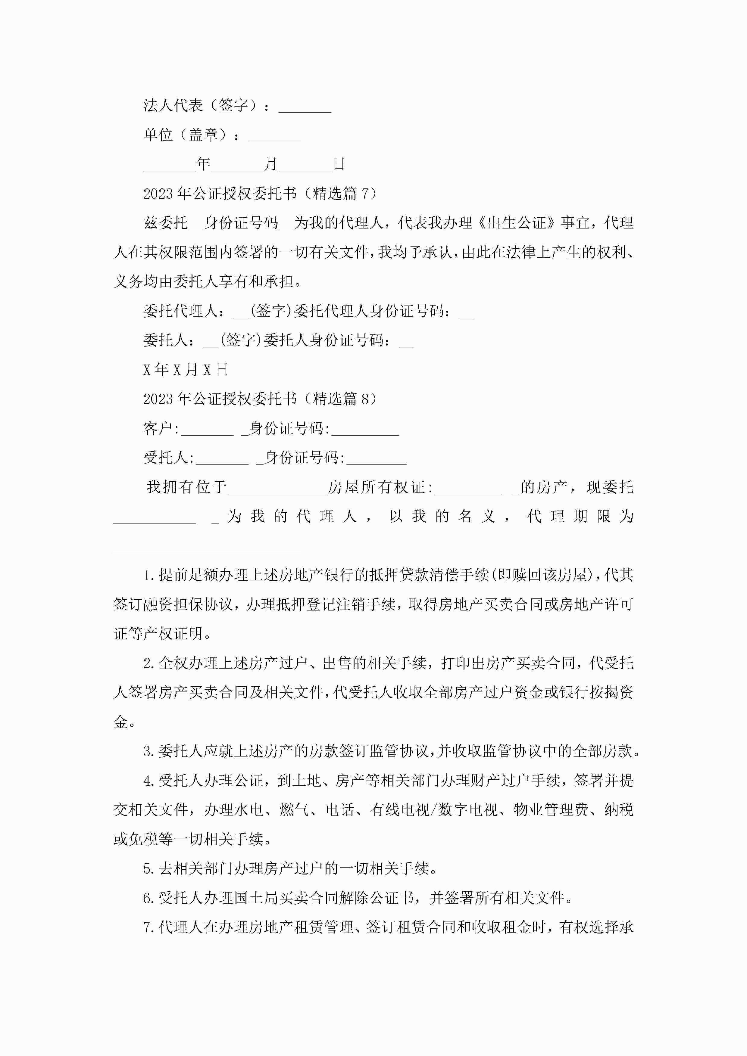 2023年公证授权委托书(精选8篇)jugei3月22日 16:23发布关注211 2023年公证授权委托书(精选8篇)此内容为付费资源,请付费后查看¥10.9 单篇文档限时特惠¥15个人会员开通企业会员开通立即下载无需登陆!可直接快捷下载单个模板付费资源© 版权声明THE ENDWord模板# 实用文档# 实用模板# 信函模板# 委托书 如有问题,可点击最底部“联系我们”联系客服 分享QQ空间微博QQ好友海报分享复制链接收藏