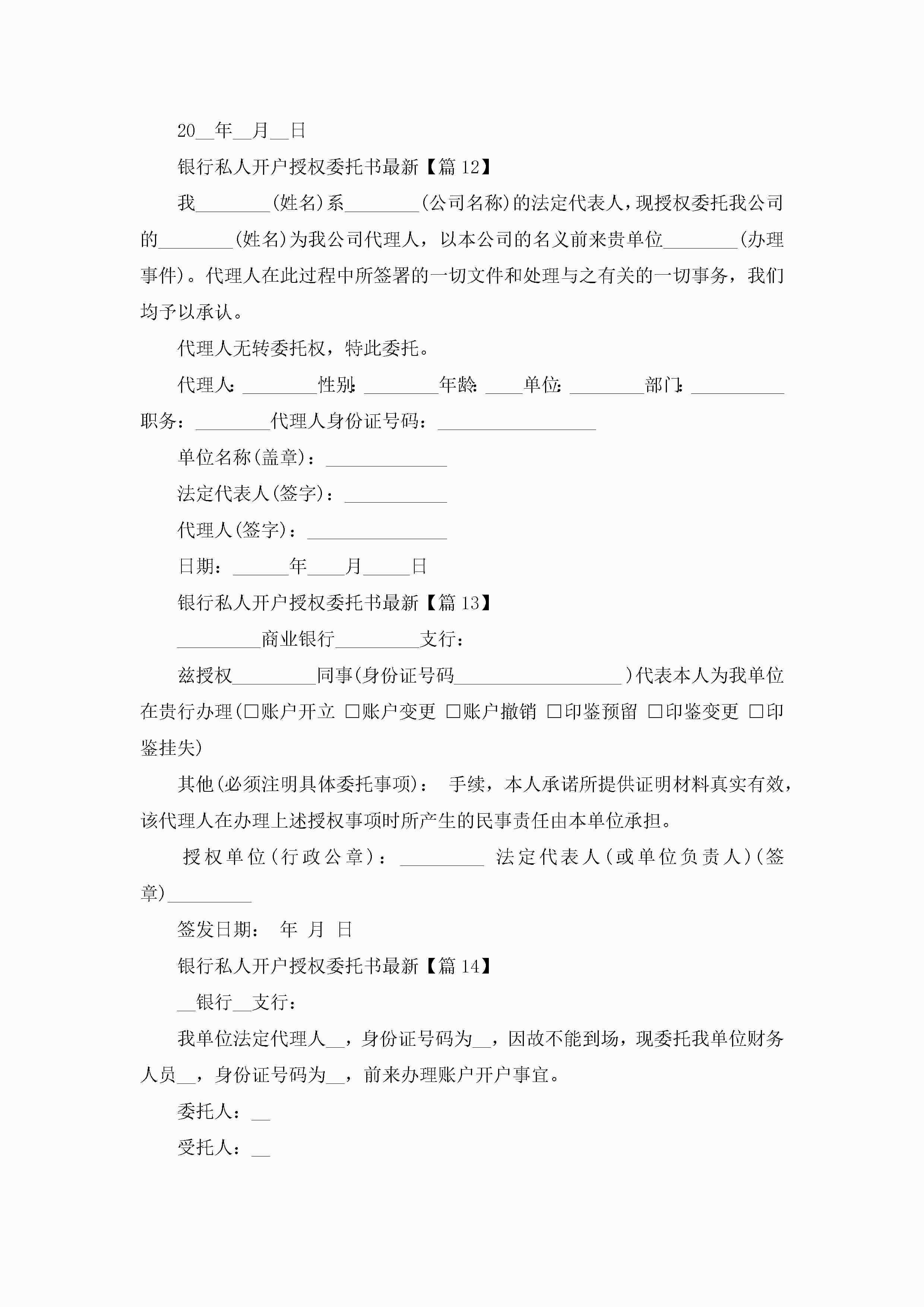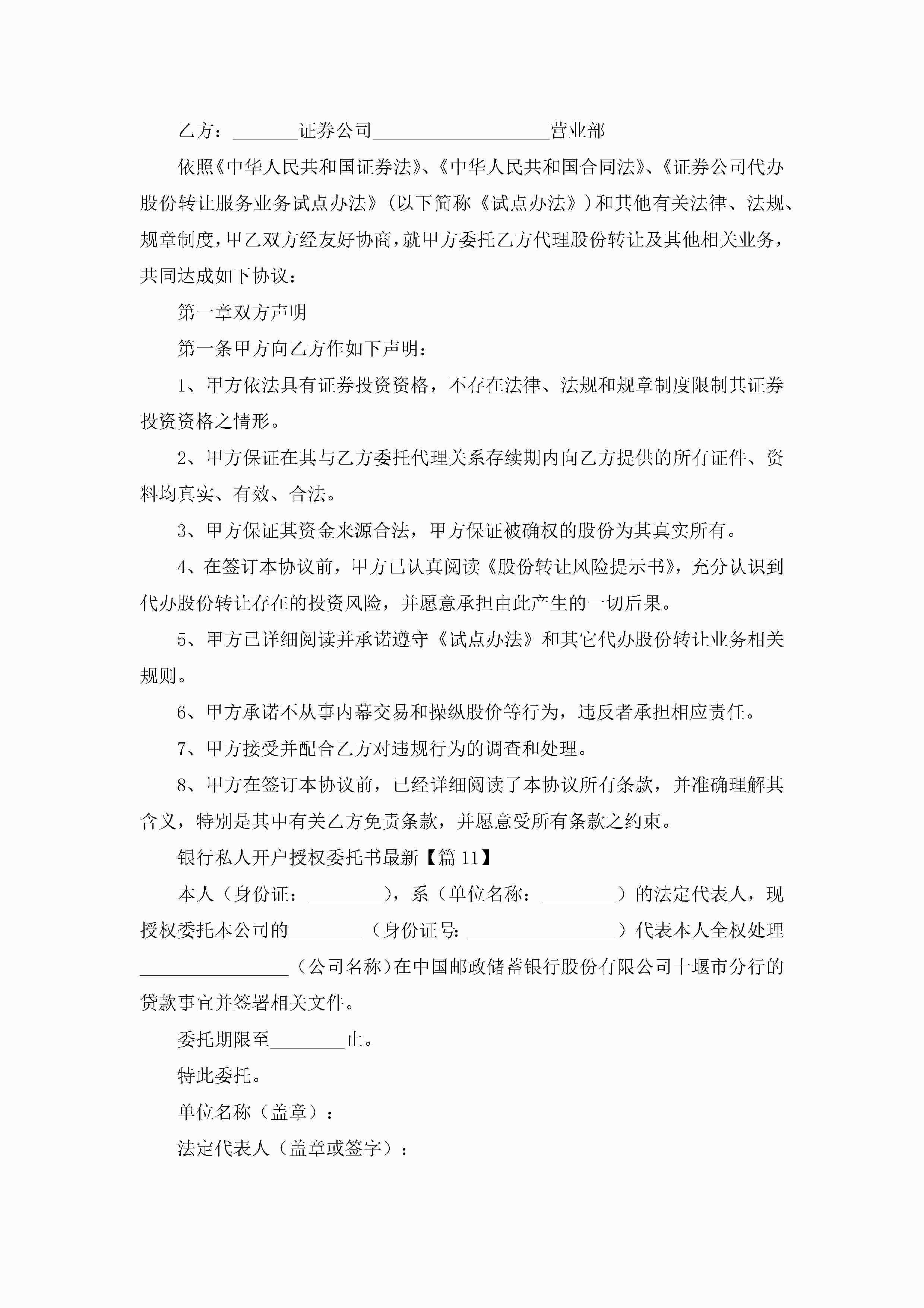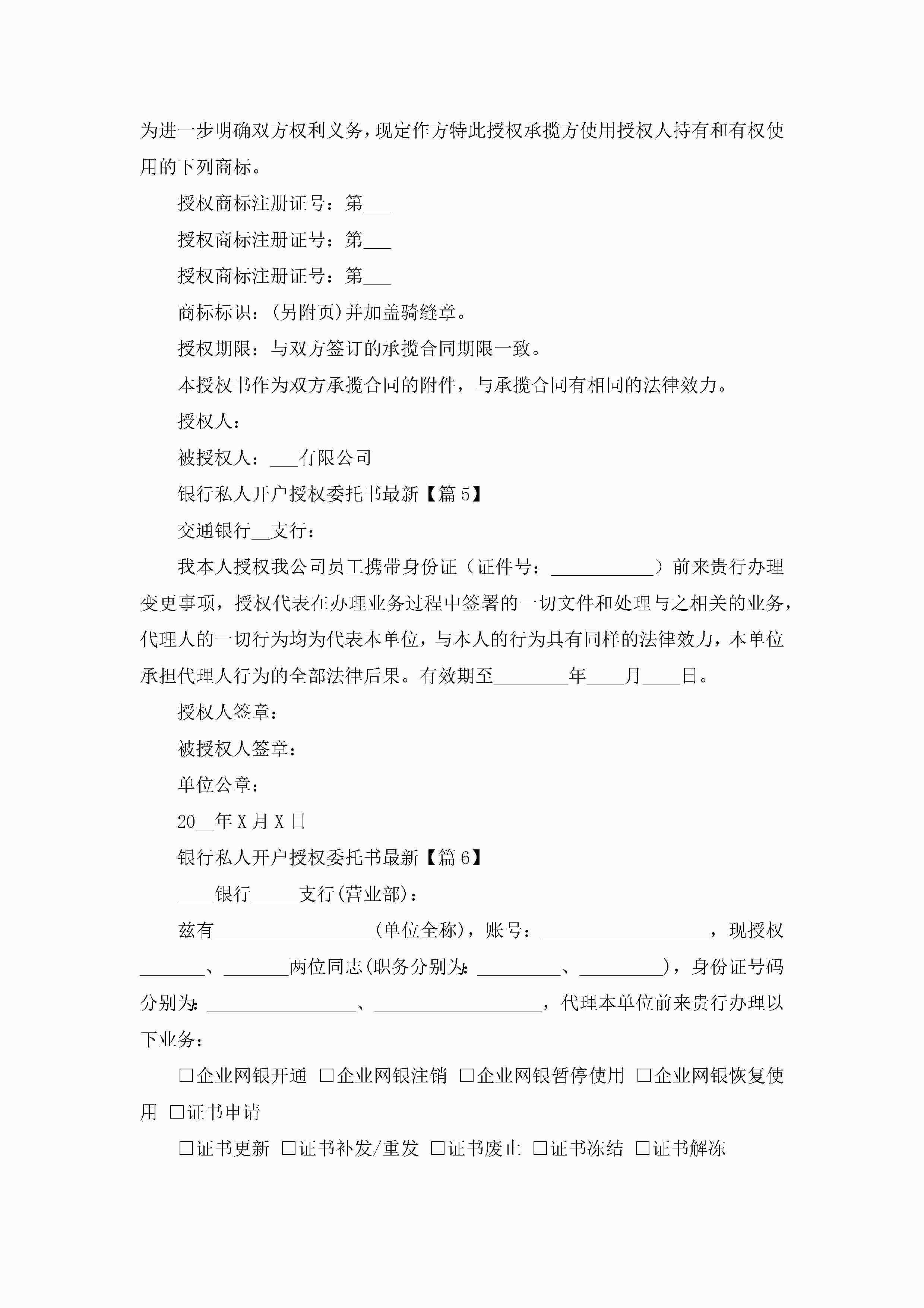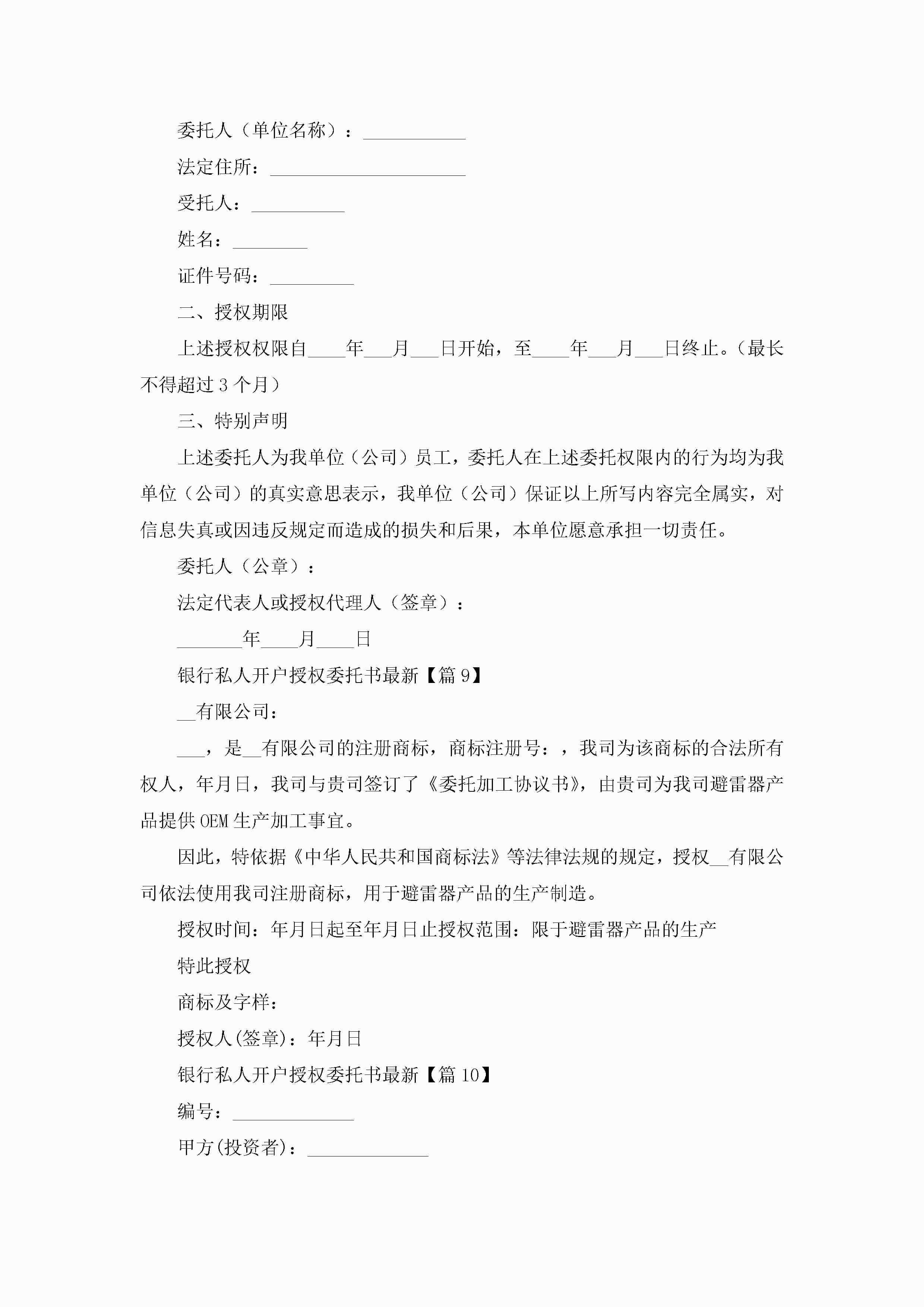银行私人开户授权委托书最新(精选15篇)jugei3月22日 16:23发布关注347 银行私人开户授权委托书最新(精选15篇)此内容为付费资源,请付费后查看¥10.9 单篇文档限时特惠¥15个人会员开通企业会员开通立即下载无需登陆!可直接快捷下载单个模板付费资源© 版权声明THE ENDWord模板# 实用文档# 实用模板# 信函模板# 委托书 如有问题,可点击最底部“联系我们”联系客服 分享QQ空间微博QQ好友海报分享复制链接收藏