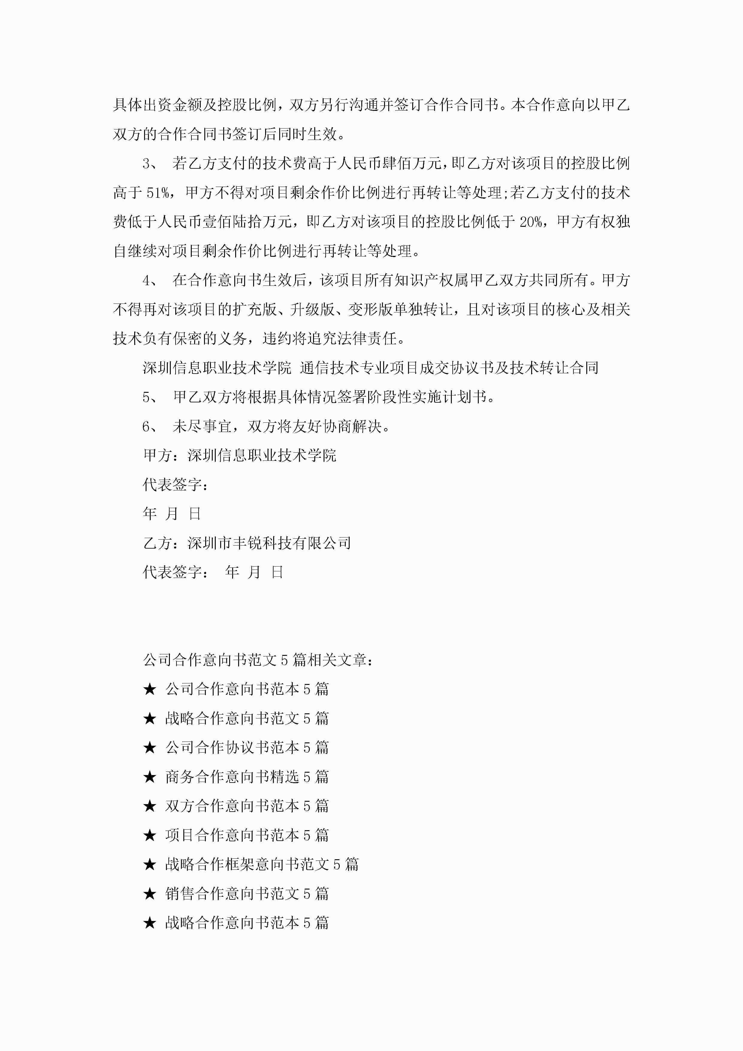 关于公司合作意向书范文5篇jugei3月22日 16:23发布关注256 关于公司合作意向书范文5篇此内容为付费资源,请付费后查看¥10.9 单篇文档限时特惠¥15个人会员开通企业会员开通立即下载无需登陆!可直接快捷下载单个模板付费资源© 版权声明THE ENDWord模板# 实用文档# 实用模板# 信函模板# 意向书 如有问题,可点击最底部“联系我们”联系客服 分享QQ空间微博QQ好友海报分享复制链接收藏