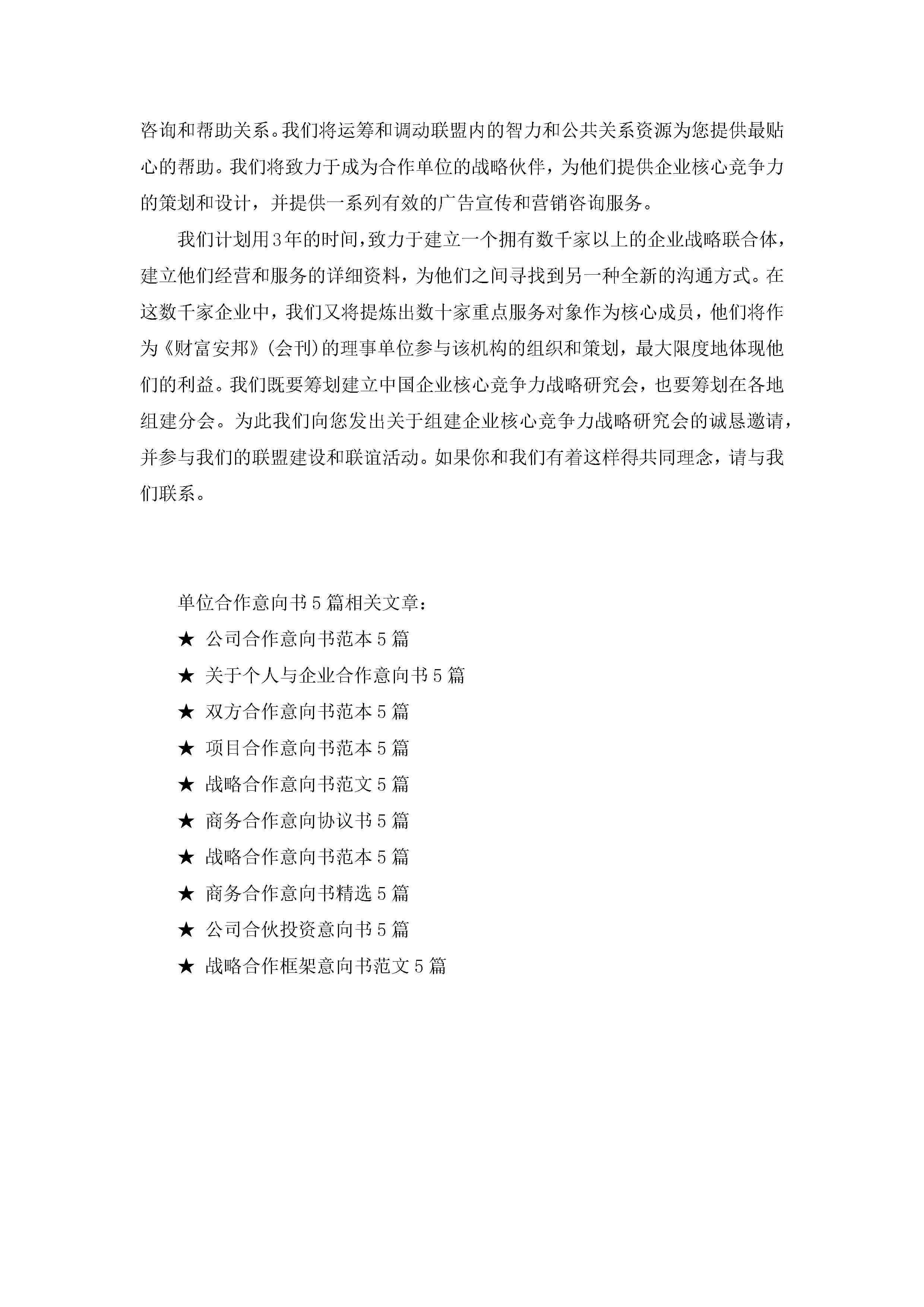 关于单位合作意向书5篇jugei3月22日 16:23发布关注299 关于单位合作意向书5篇此内容为付费资源,请付费后查看¥10.9 单篇文档限时特惠¥15个人会员开通企业会员开通立即下载无需登陆!可直接快捷下载单个模板付费资源© 版权声明THE ENDWord模板# 实用文档# 实用模板# 信函模板# 意向书 如有问题,可点击最底部“联系我们”联系客服 分享QQ空间微博QQ好友海报分享复制链接收藏