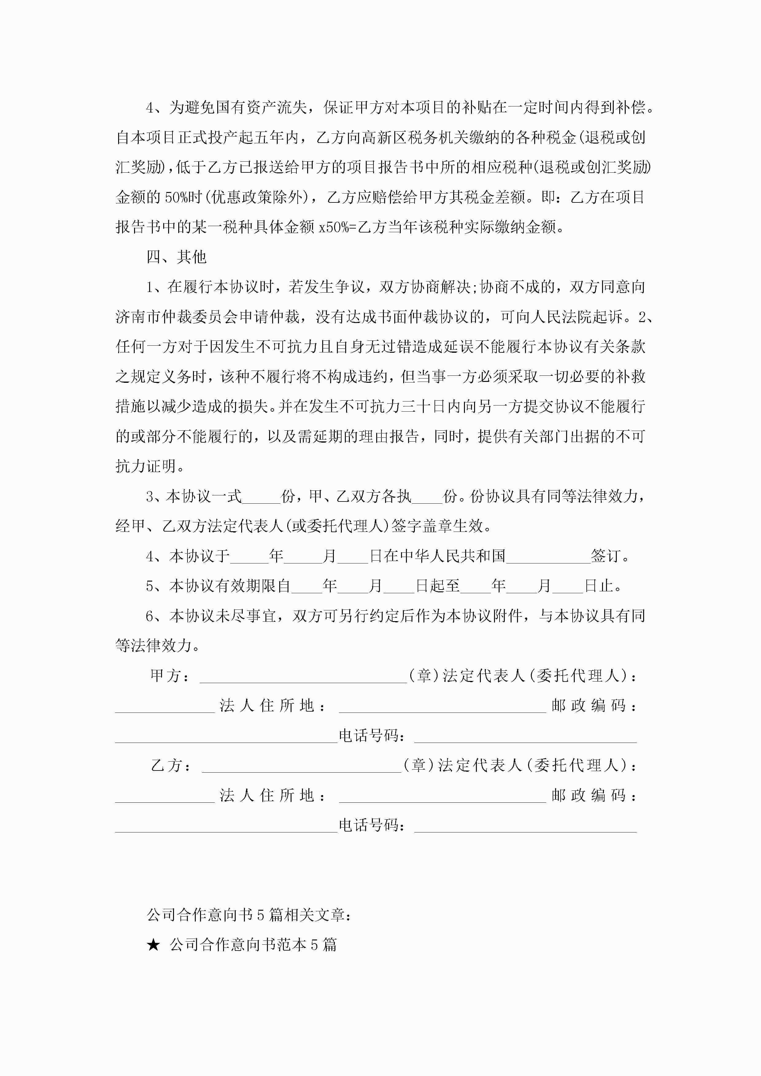 最新公司合作意向书5篇jugei3月22日 16:23发布关注219 最新公司合作意向书5篇此内容为付费资源,请付费后查看¥10.9 单篇文档限时特惠¥15个人会员开通企业会员开通立即下载无需登陆!可直接快捷下载单个模板付费资源© 版权声明THE ENDWord模板# 实用文档# 实用模板# 信函模板# 意向书 如有问题,可点击最底部“联系我们”联系客服 分享QQ空间微博QQ好友海报分享复制链接收藏