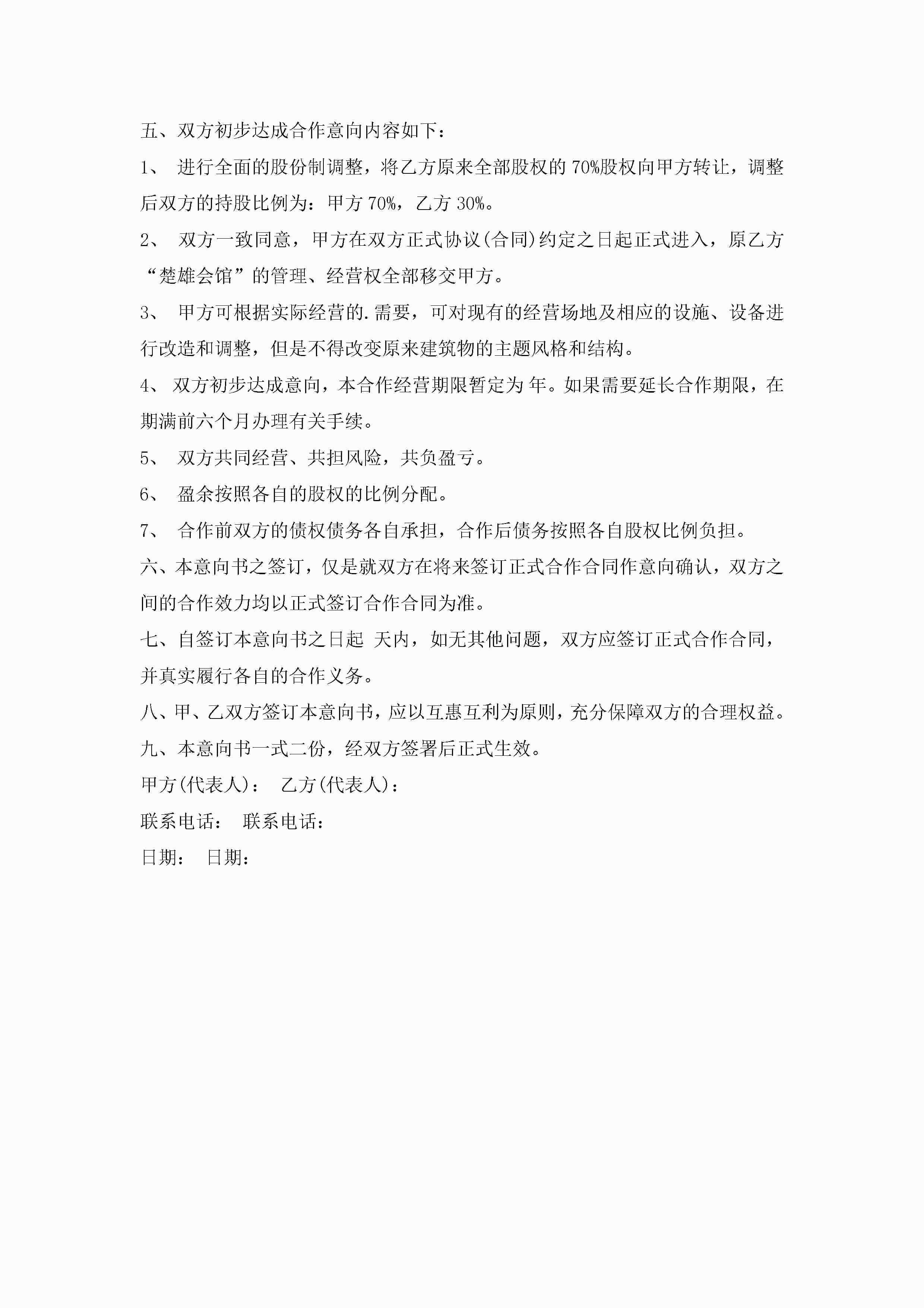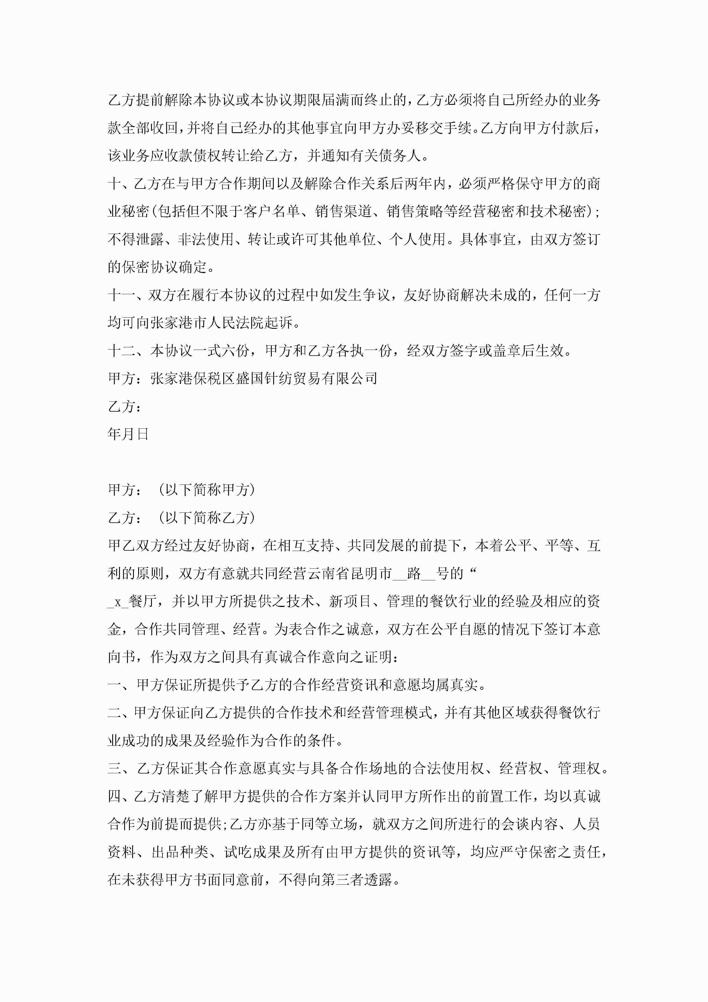 销售合作意向书范文5篇jugei3月22日 16:23发布关注224 销售合作意向书范文5篇此内容为付费资源,请付费后查看¥10.9 单篇文档限时特惠¥15个人会员开通企业会员开通立即下载无需登陆!可直接快捷下载单个模板付费资源© 版权声明THE ENDWord模板# 实用文档# 实用模板# 信函模板# 意向书 如有问题,可点击最底部“联系我们”联系客服 分享QQ空间微博QQ好友海报分享复制链接收藏