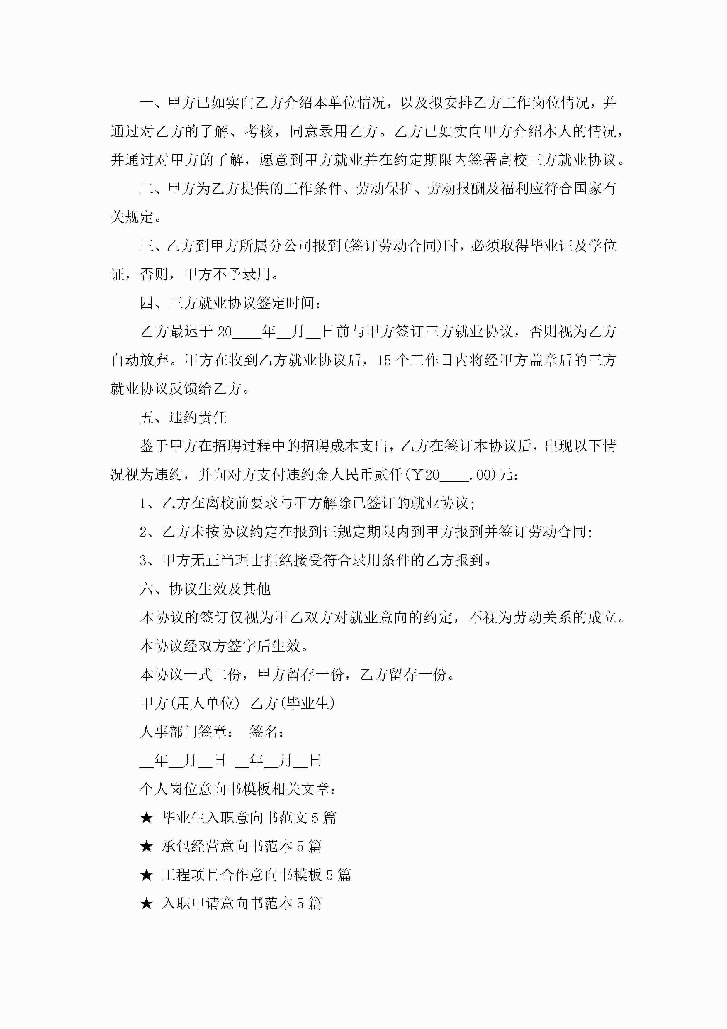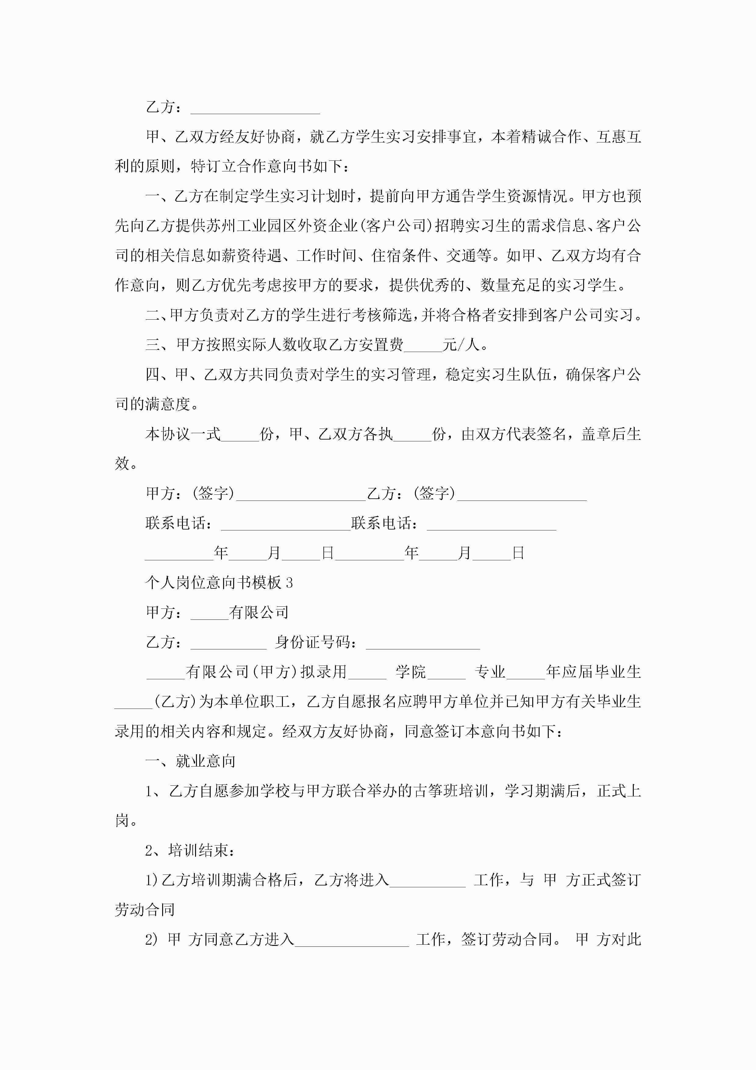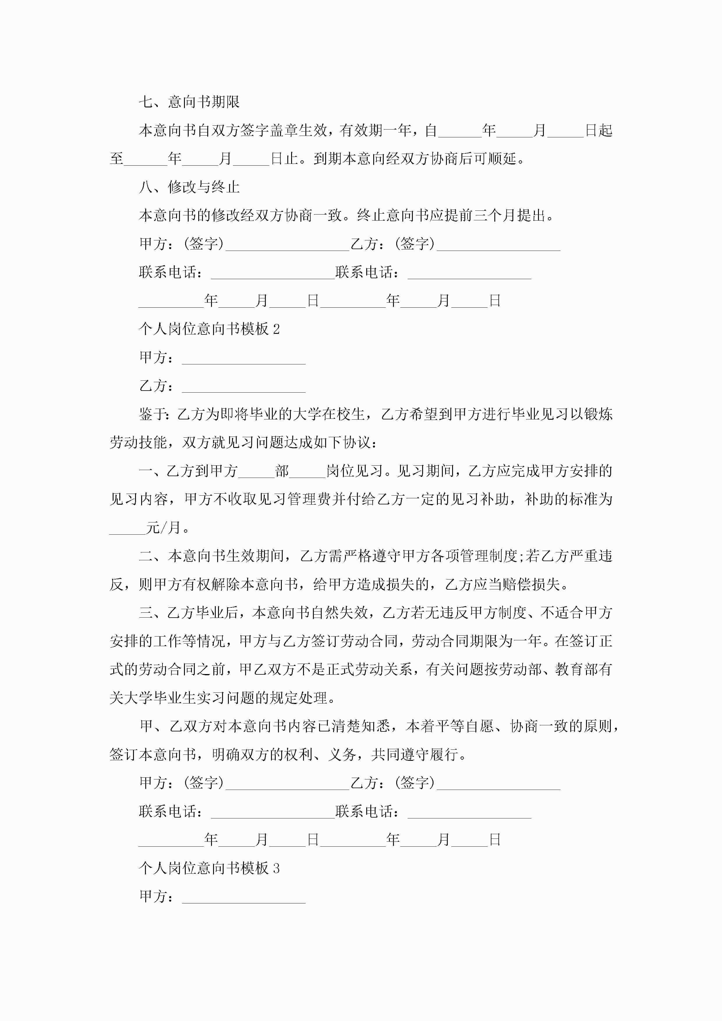 个人岗位意向书范本模板jugei3月22日 16:23发布关注221 个人岗位意向书范本模板此内容为付费资源,请付费后查看¥10.9 单篇文档限时特惠¥15个人会员开通企业会员开通立即下载无需登陆!可直接快捷下载单个模板付费资源© 版权声明THE ENDWord模板# 实用文档# 实用模板# 信函模板# 意向书 如有问题,可点击最底部“联系我们”联系客服 分享QQ空间微博QQ好友海报分享复制链接收藏