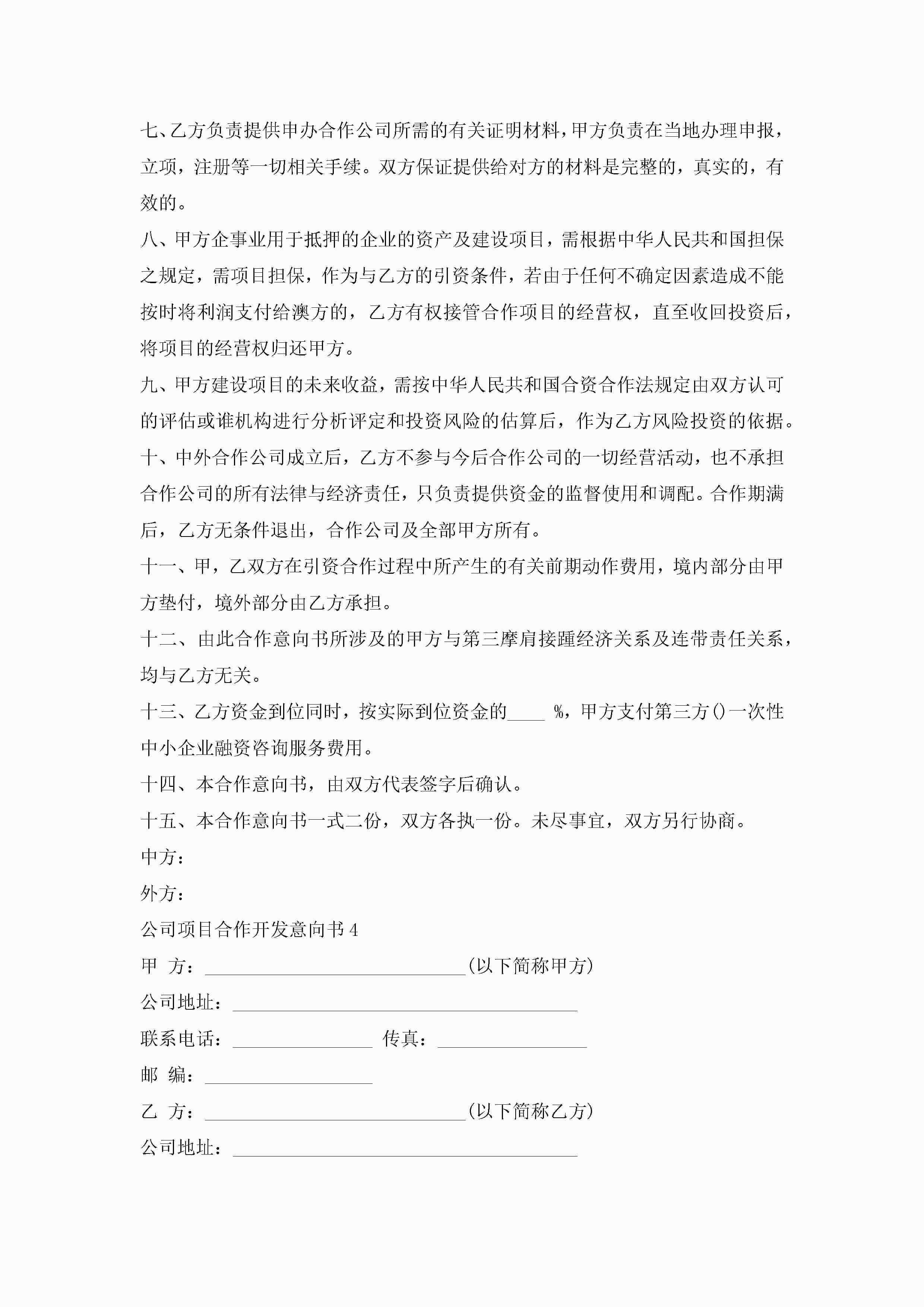 关于公司项目合作开发意向书5篇jugei3月22日 16:23发布关注231 关于公司项目合作开发意向书5篇此内容为付费资源,请付费后查看¥10.9 单篇文档限时特惠¥15个人会员开通企业会员开通立即下载无需登陆!可直接快捷下载单个模板付费资源© 版权声明THE ENDWord模板# 实用文档# 实用模板# 信函模板# 意向书 如有问题,可点击最底部“联系我们”联系客服 分享QQ空间微博QQ好友海报分享复制链接收藏