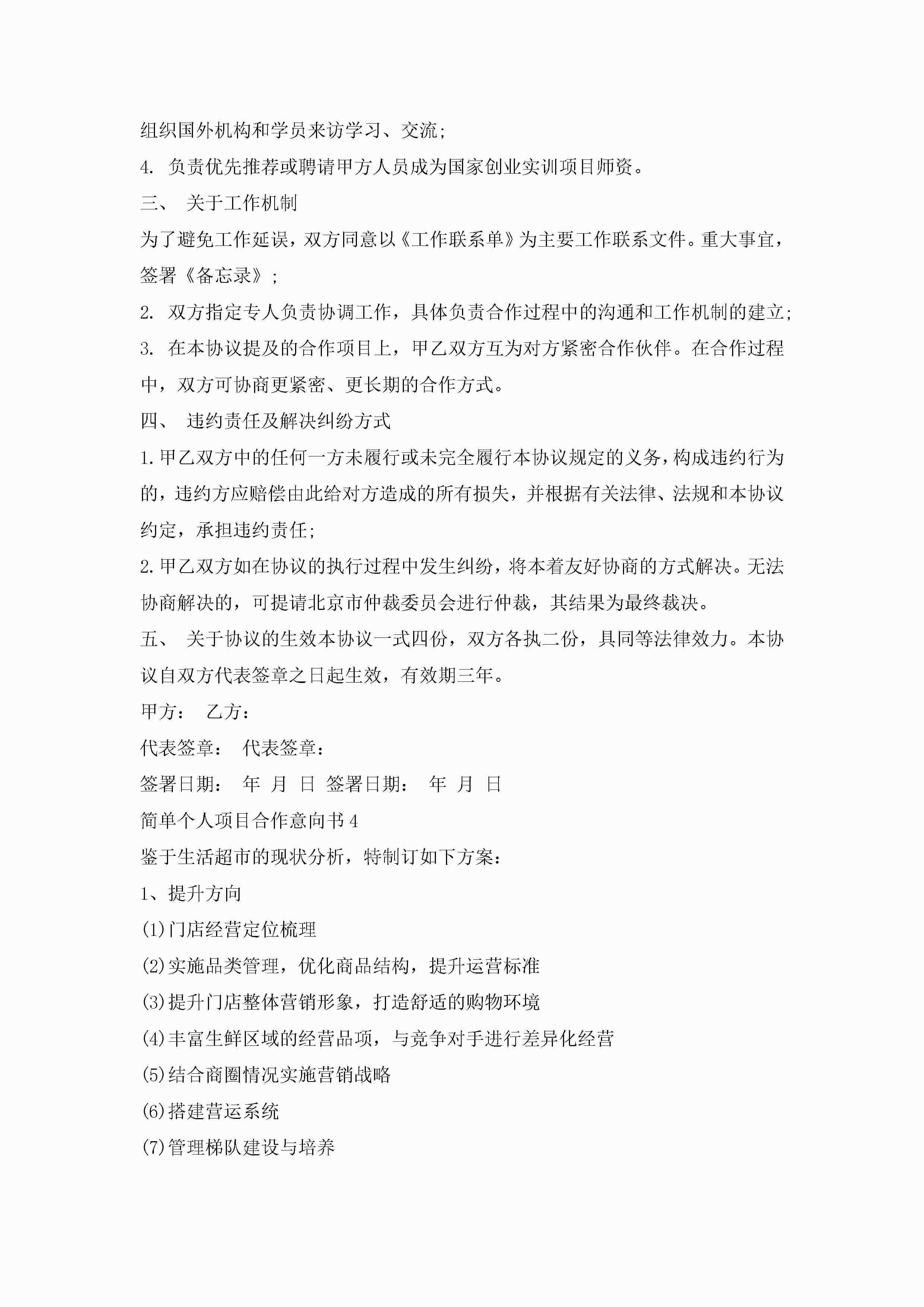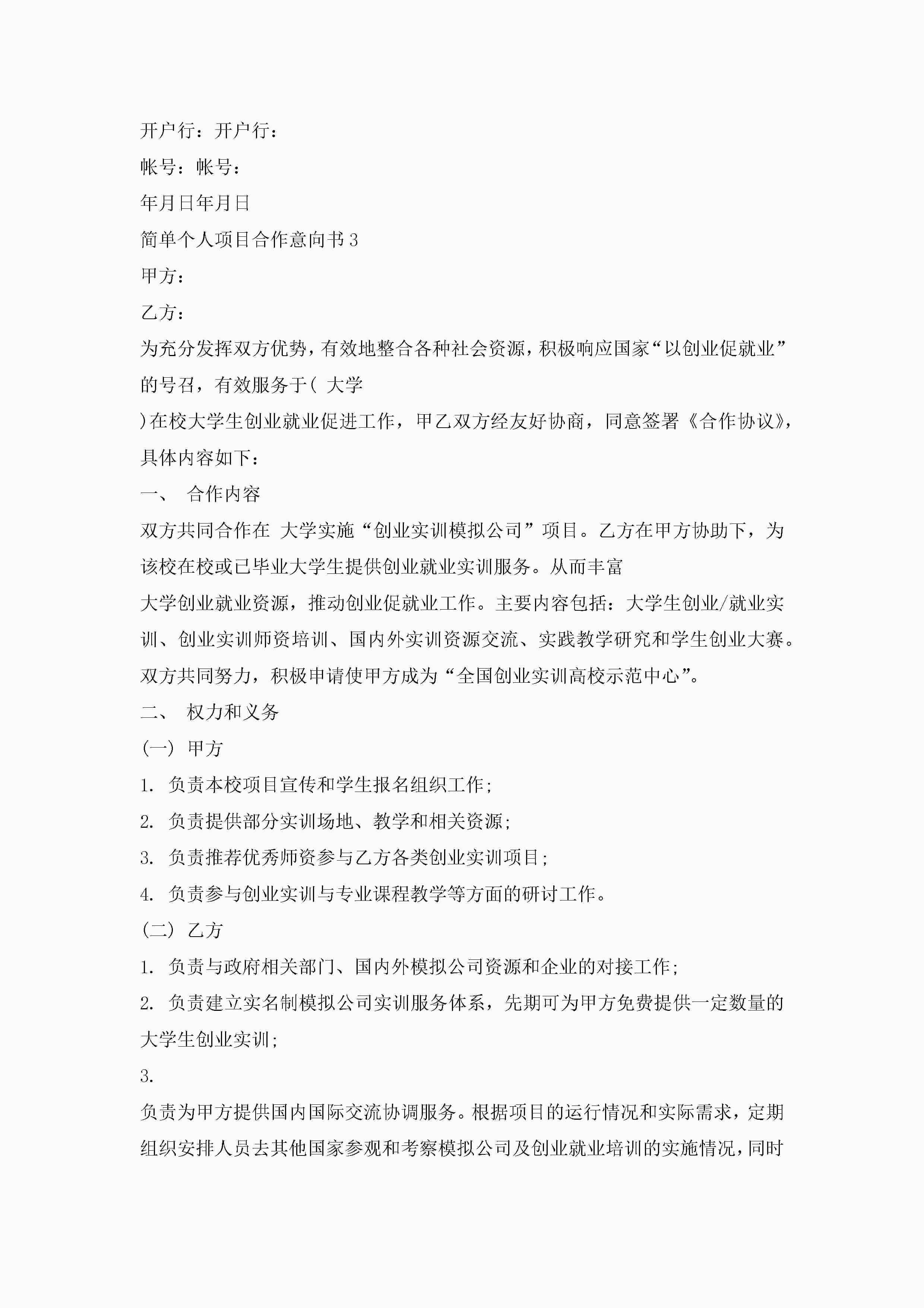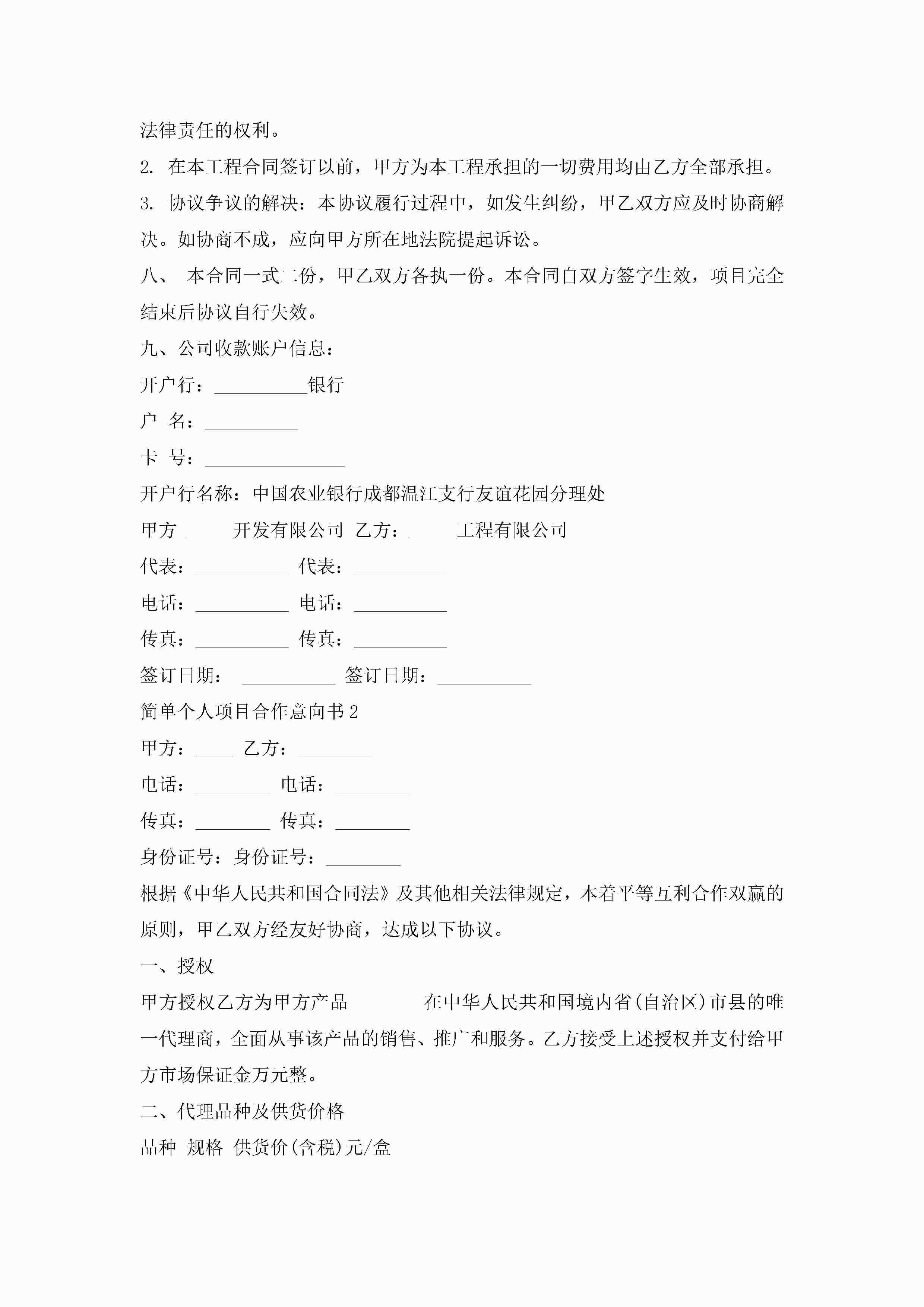 简单个人项目合作意向书5篇jugei3月22日 16:23发布关注207 简单个人项目合作意向书5篇此内容为付费资源,请付费后查看¥10.9 单篇文档限时特惠¥15个人会员开通企业会员开通立即下载无需登陆!可直接快捷下载单个模板付费资源© 版权声明THE ENDWord模板# 实用文档# 实用模板# 信函模板# 意向书 如有问题,可点击最底部“联系我们”联系客服 分享QQ空间微博QQ好友海报分享复制链接收藏