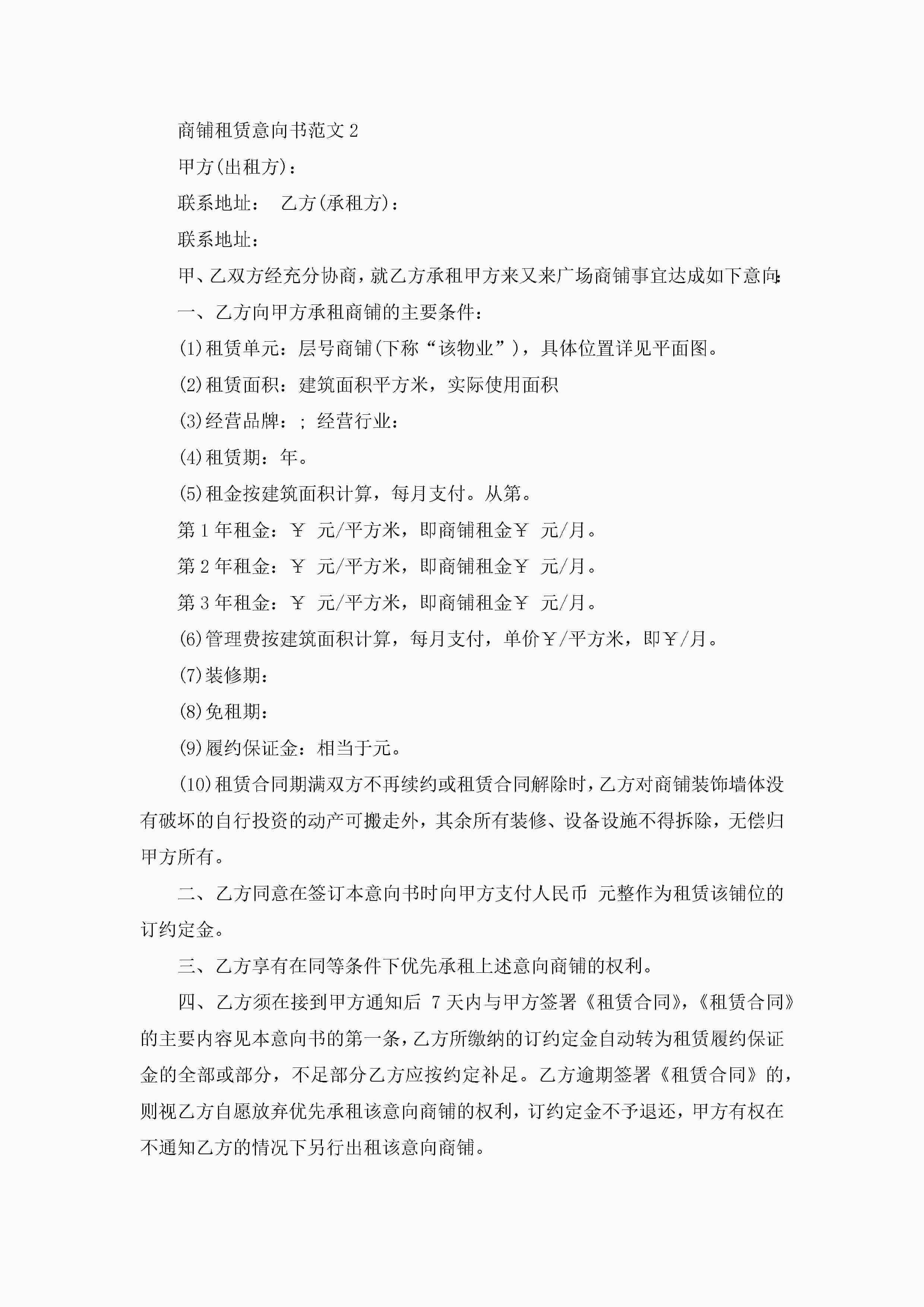 商铺租赁意向书范文5篇jugei3月22日 16:23发布关注204 商铺租赁意向书范文5篇此内容为付费资源,请付费后查看¥10.9 单篇文档限时特惠¥15个人会员开通企业会员开通立即下载无需登陆!可直接快捷下载单个模板付费资源© 版权声明THE ENDWord模板# 实用文档# 实用模板# 信函模板# 意向书 如有问题,可点击最底部“联系我们”联系客服 分享QQ空间微博QQ好友海报分享复制链接收藏