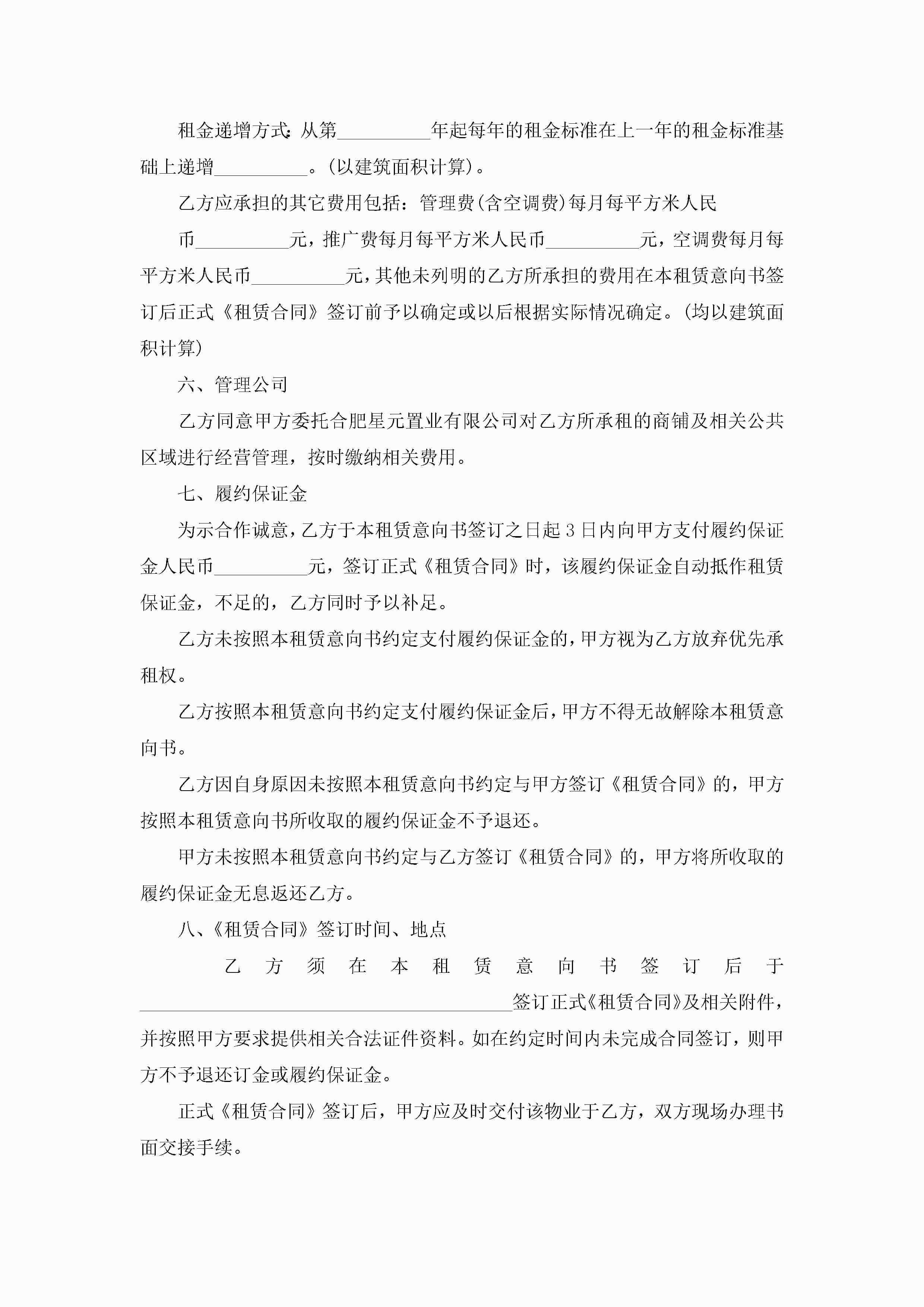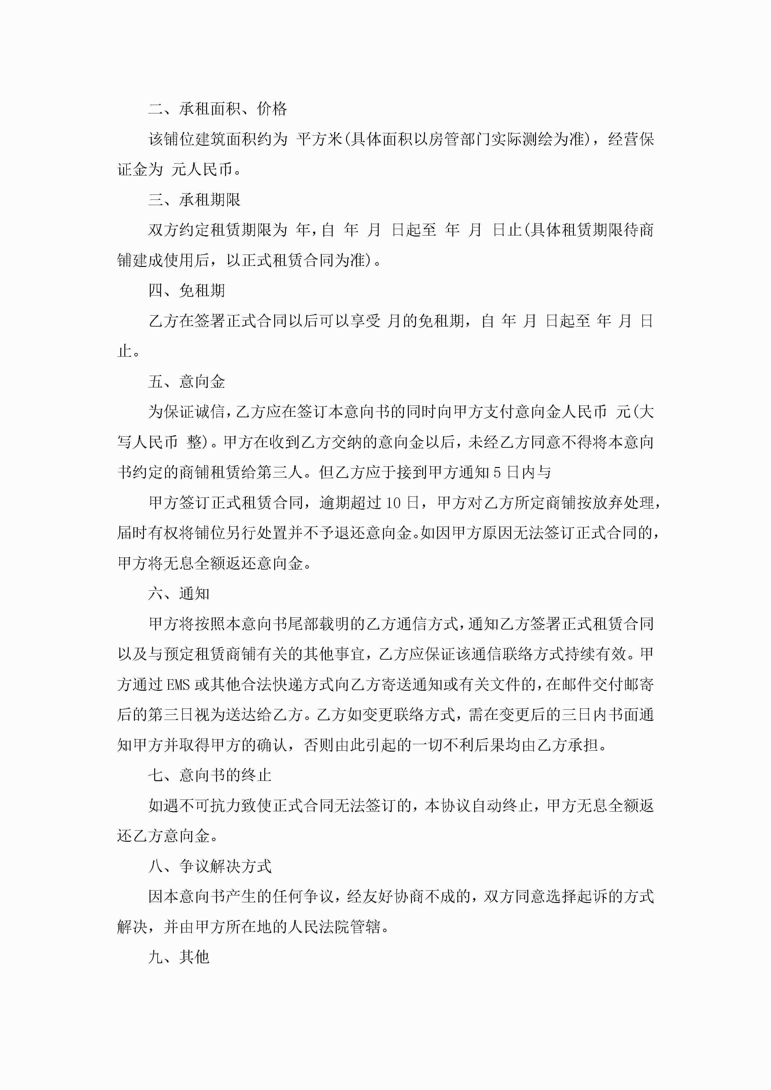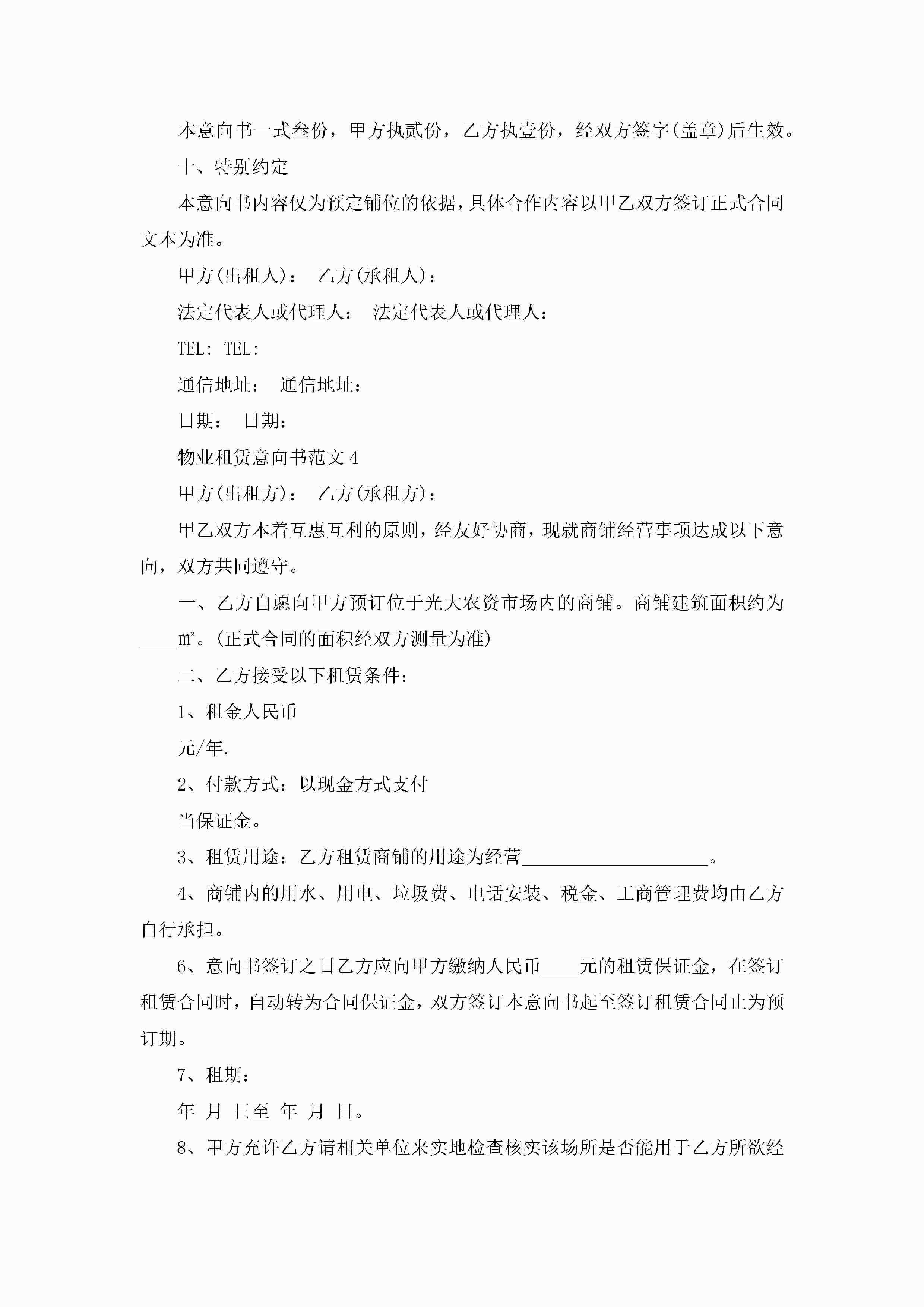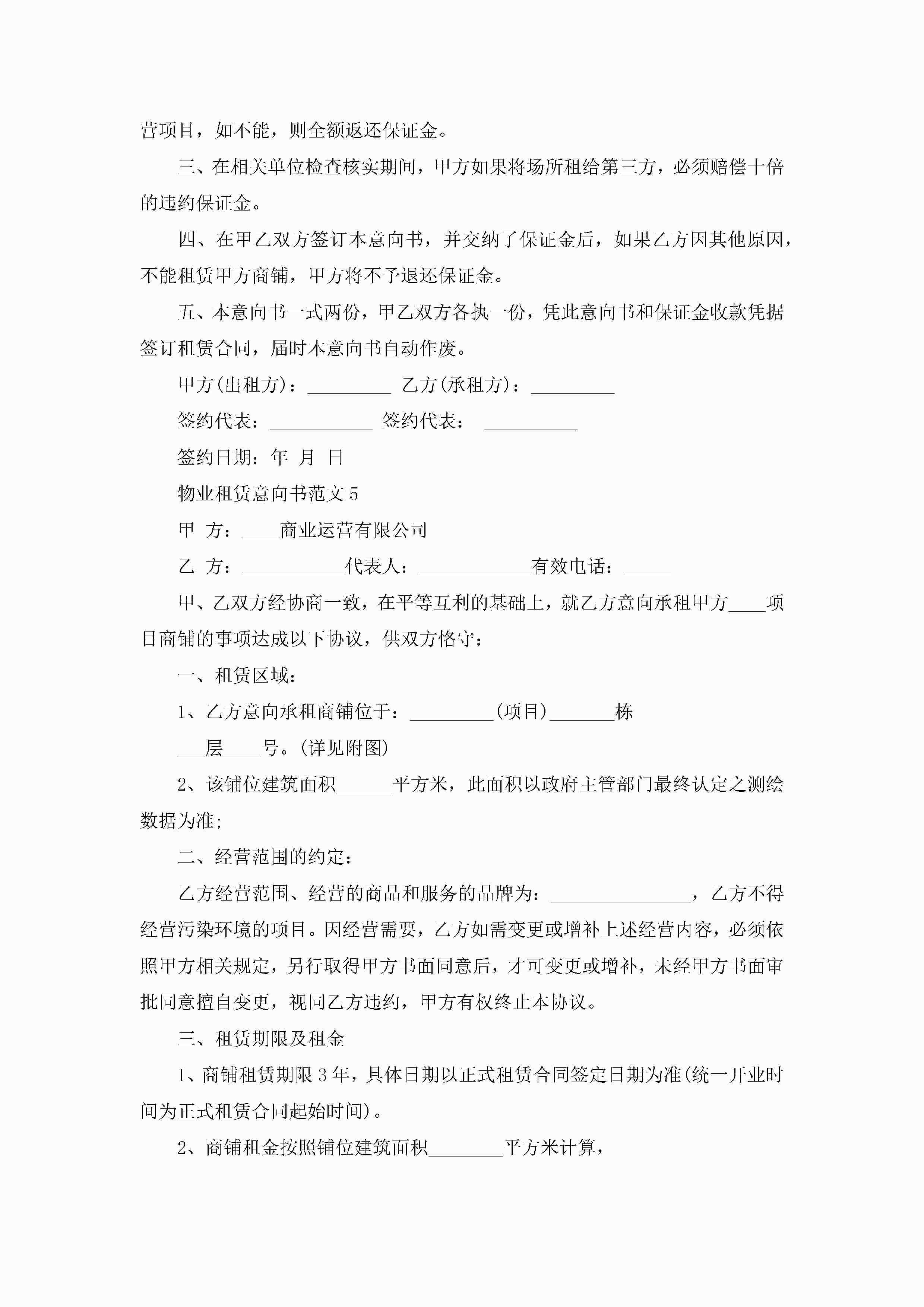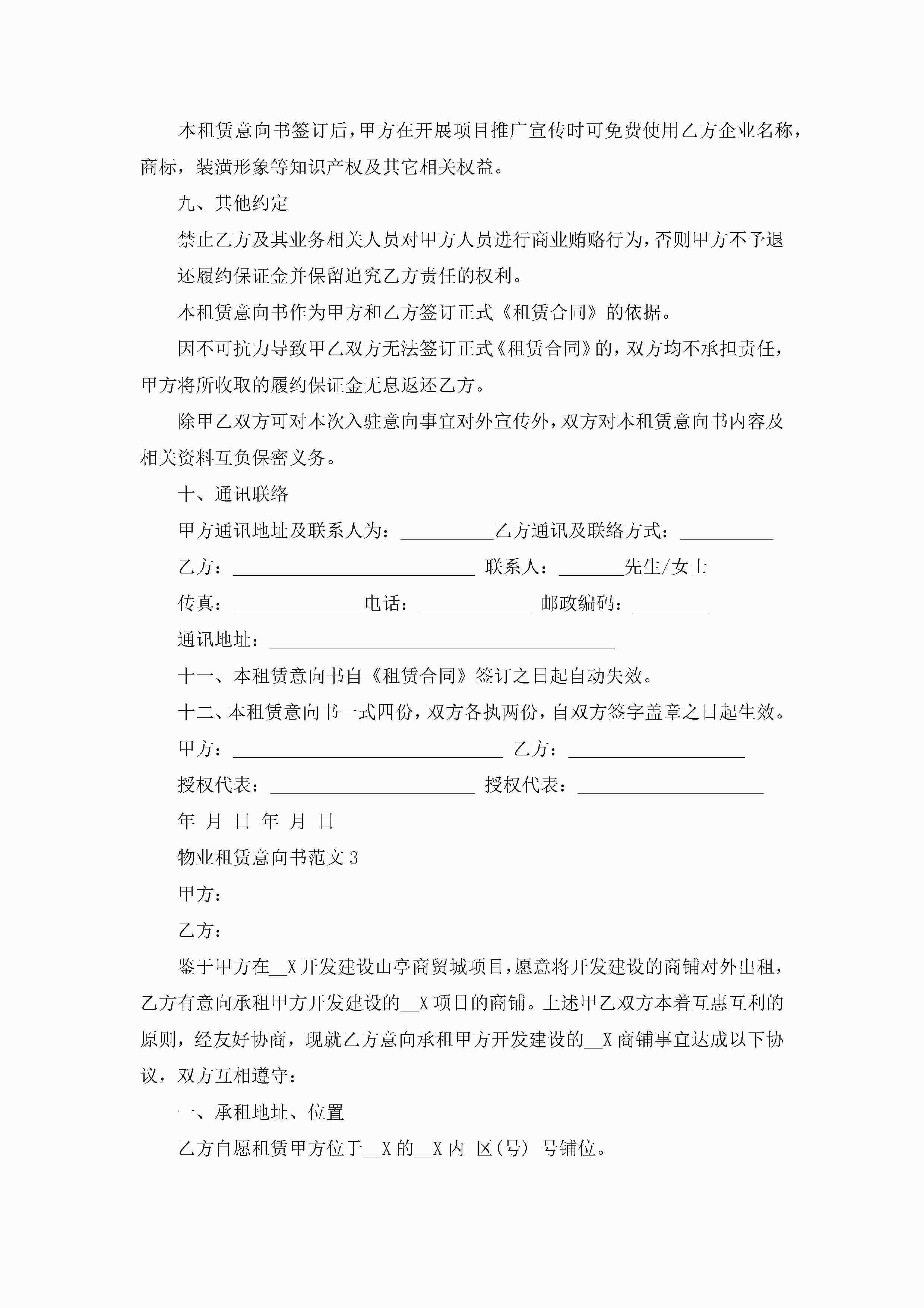 最新物业租赁意向书范文5篇jugei3月22日 16:23发布关注446 最新物业租赁意向书范文5篇此内容为付费资源,请付费后查看¥10.9 单篇文档限时特惠¥15个人会员开通企业会员开通立即下载无需登陆!可直接快捷下载单个模板付费资源© 版权声明THE ENDWord模板# 实用文档# 实用模板# 信函模板# 意向书 如有问题,可点击最底部“联系我们”联系客服 分享QQ空间微博QQ好友海报分享复制链接收藏